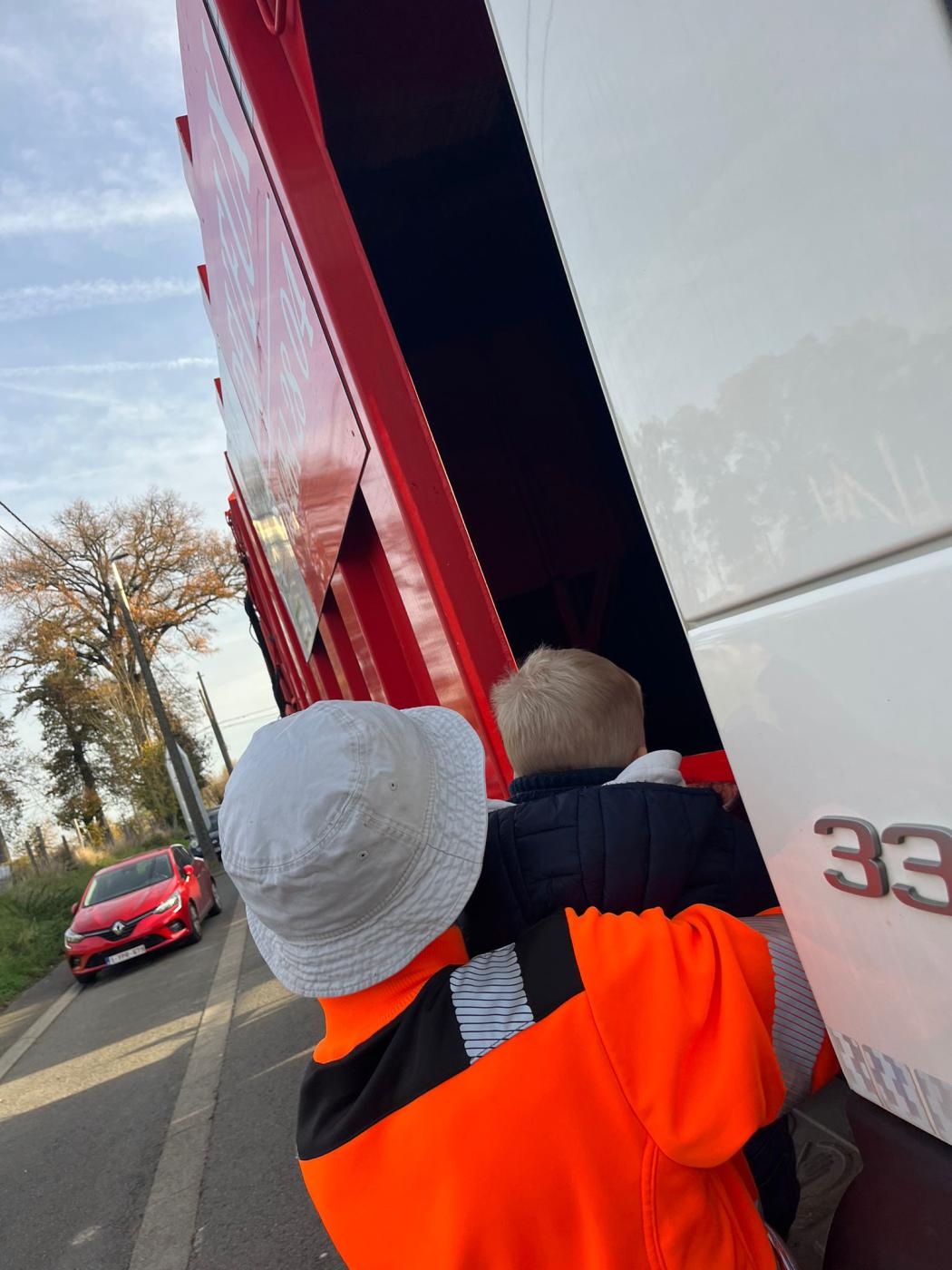 Ce matin, nous avons eu la chance de rencontrer les éboueurs qui nous ont consacré un peu de leur temps pour nous expliquer leur métier ainsi que le fonctionnement du camion