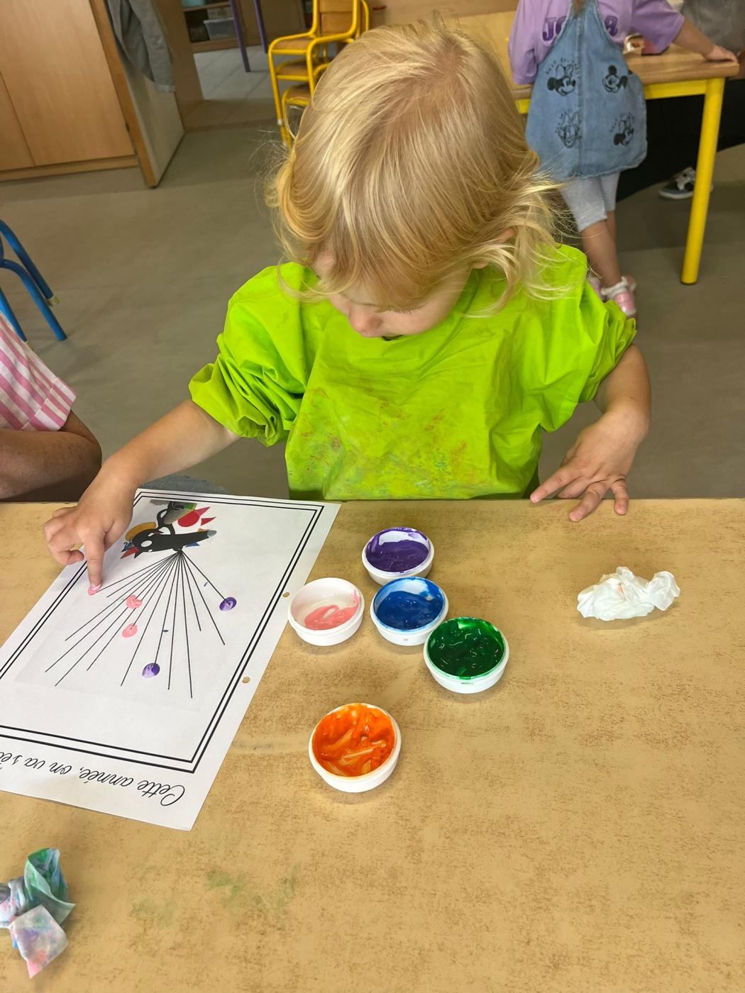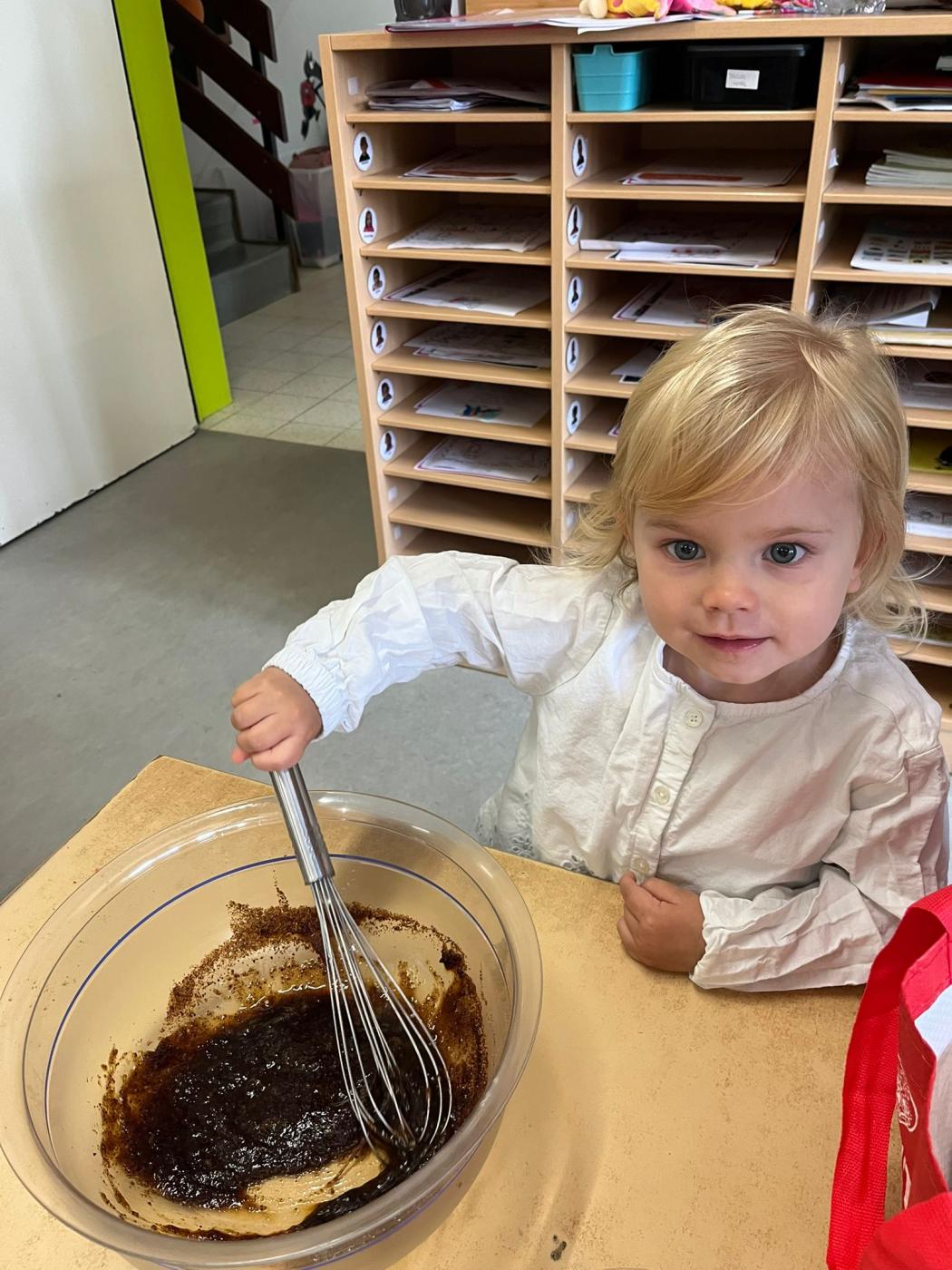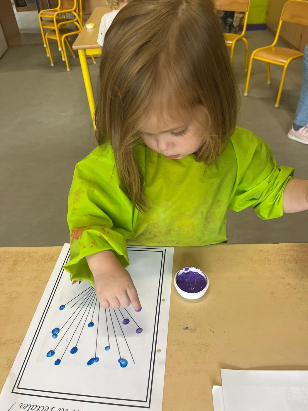 Ateliers de motricité fine, jeu de classement et de dénombrement, vocabulaire sur le thème de la rentrée, peinture libre, réalisation des étiquettes et enfin, les anniversaires de Lars, Eden, et Celia autour de cookies faits maison.