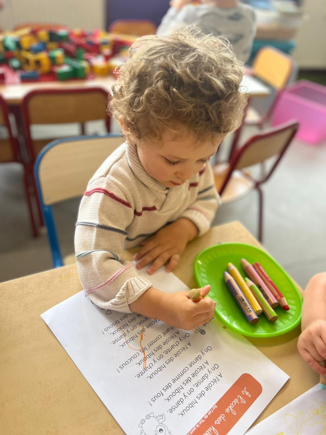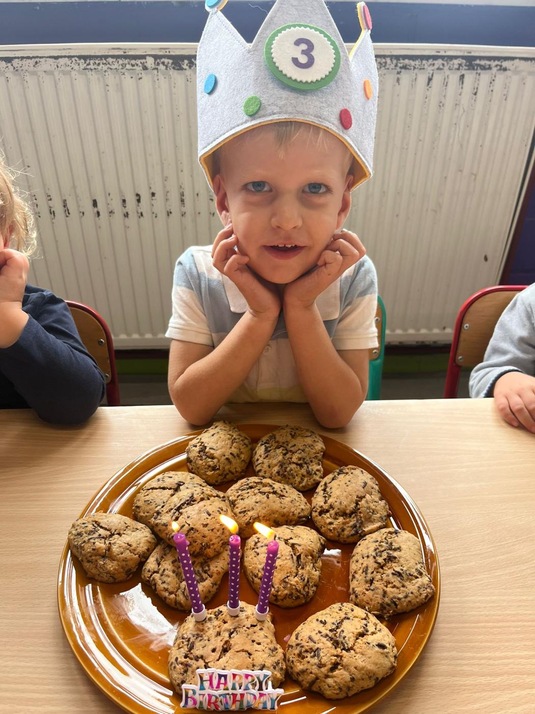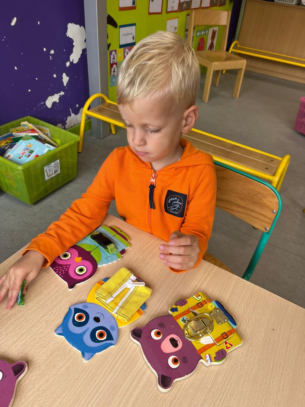 Ateliers de motricité fine, jeu de classement et de dénombrement, vocabulaire sur le thème de la rentrée, peinture libre, réalisation des étiquettes et enfin, les anniversaires de Lars, Eden, et Celia autour de cookies faits maison.