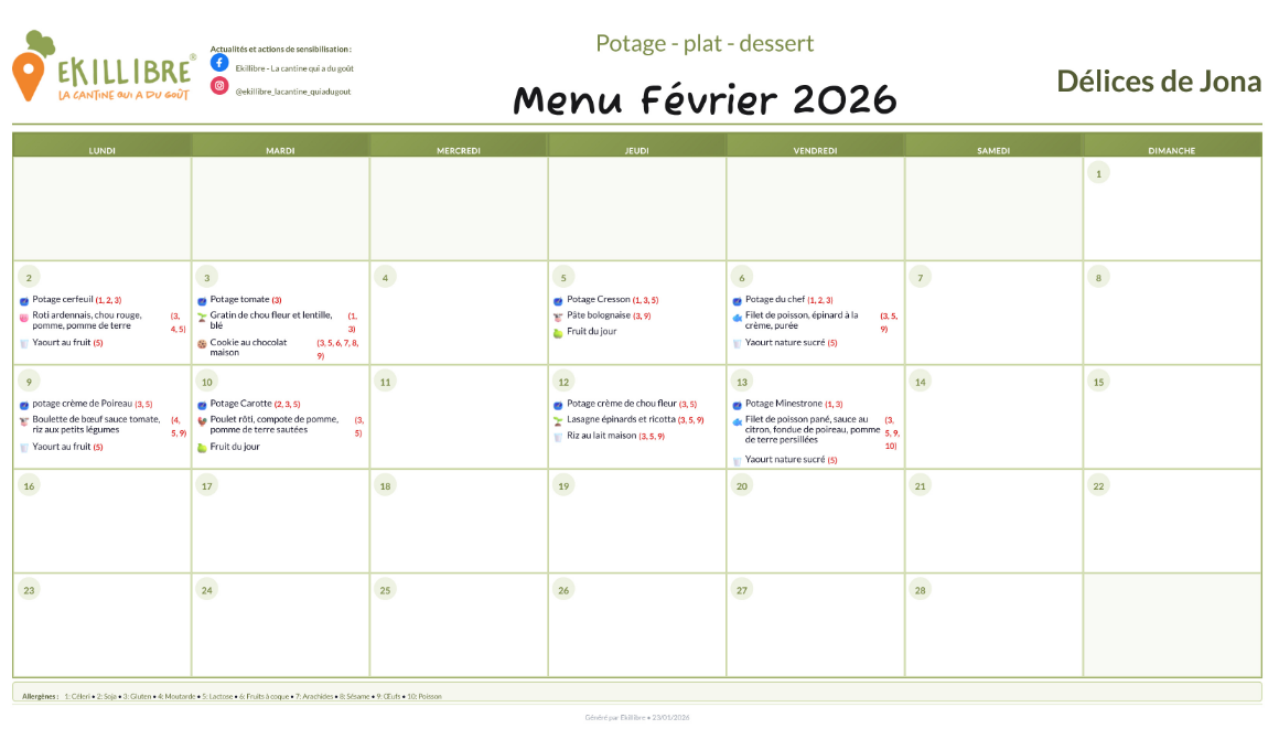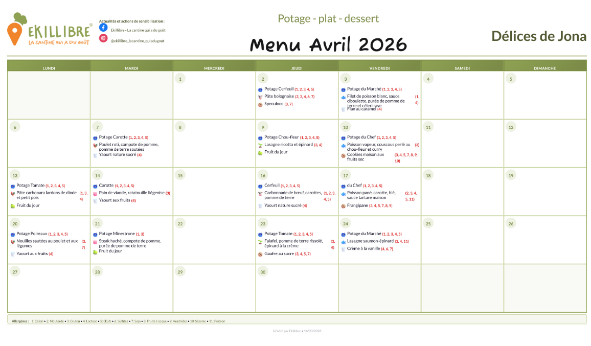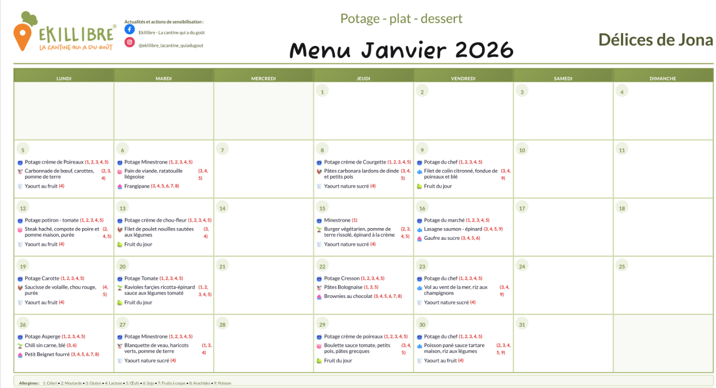 Pour la réservation des repas, nous utilisons une plateforme it-school. Vous pouvez trouver le lien dans l'espace parents. La commande des repas et potages se réservent mensuellement.