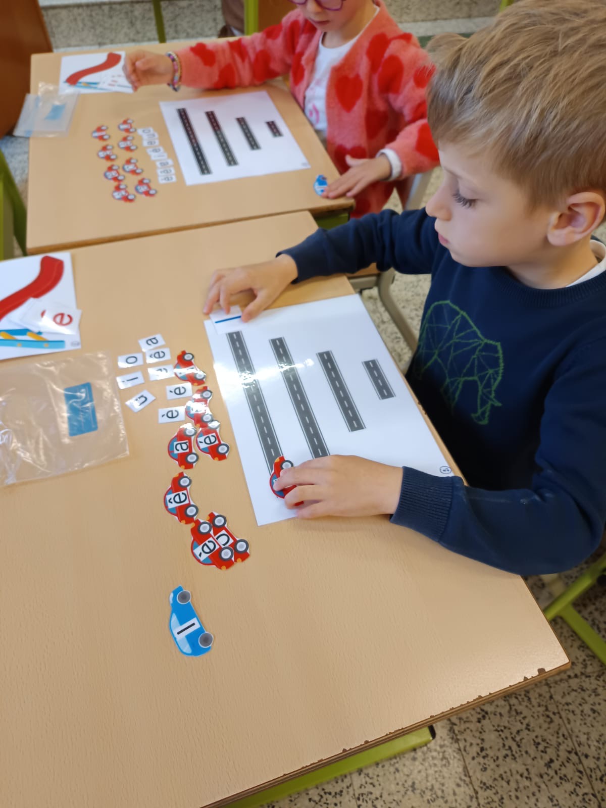 Met de methode van de glijbanen en de kleine autootjes vormen en bouwen wij vlot lettergrepen!