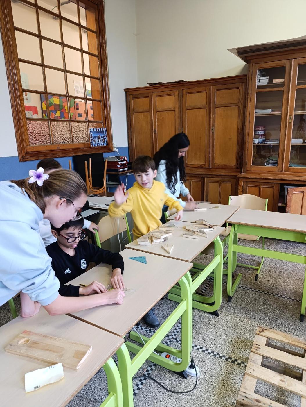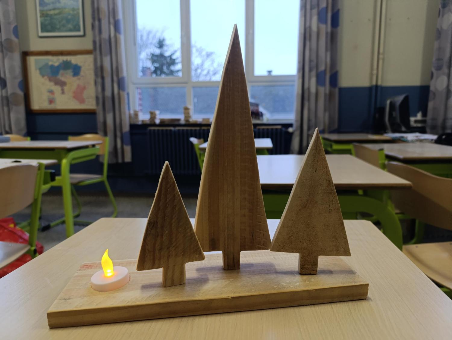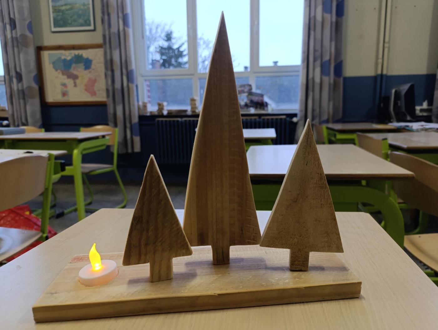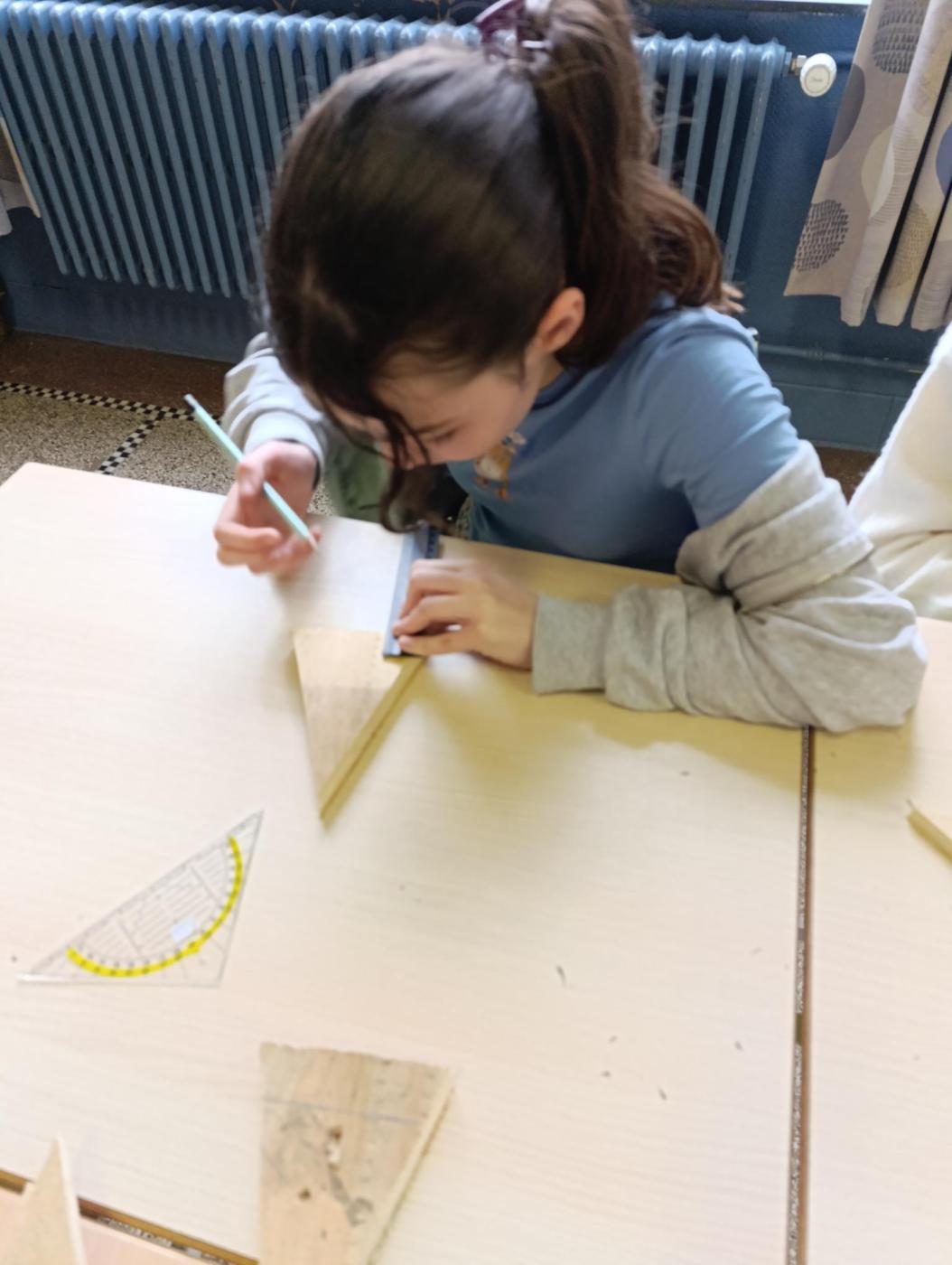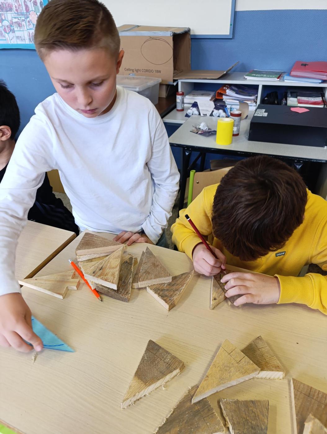 Faisant preuve d'une grande concentration et d'une belle maîtrise à l'instar de tous les élèves de l'école, les enfants de la classe de P6 préparent un des bricolages pour le marché de Noël...