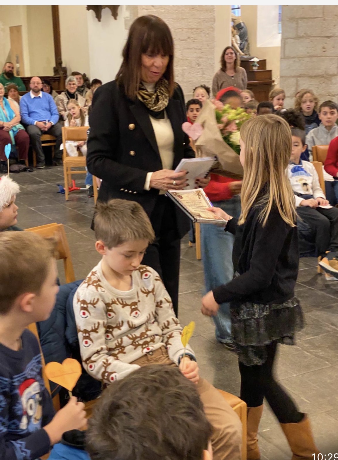 Nous la remercions pour tout ce qu'elle aura apporté à des générations d'enfants, d'élèves. Nous saluons sa bienveillance, sa rigueur et son envie de transmettre aux enfants la volonté d'apprendre dans le respect de toutes et tous!