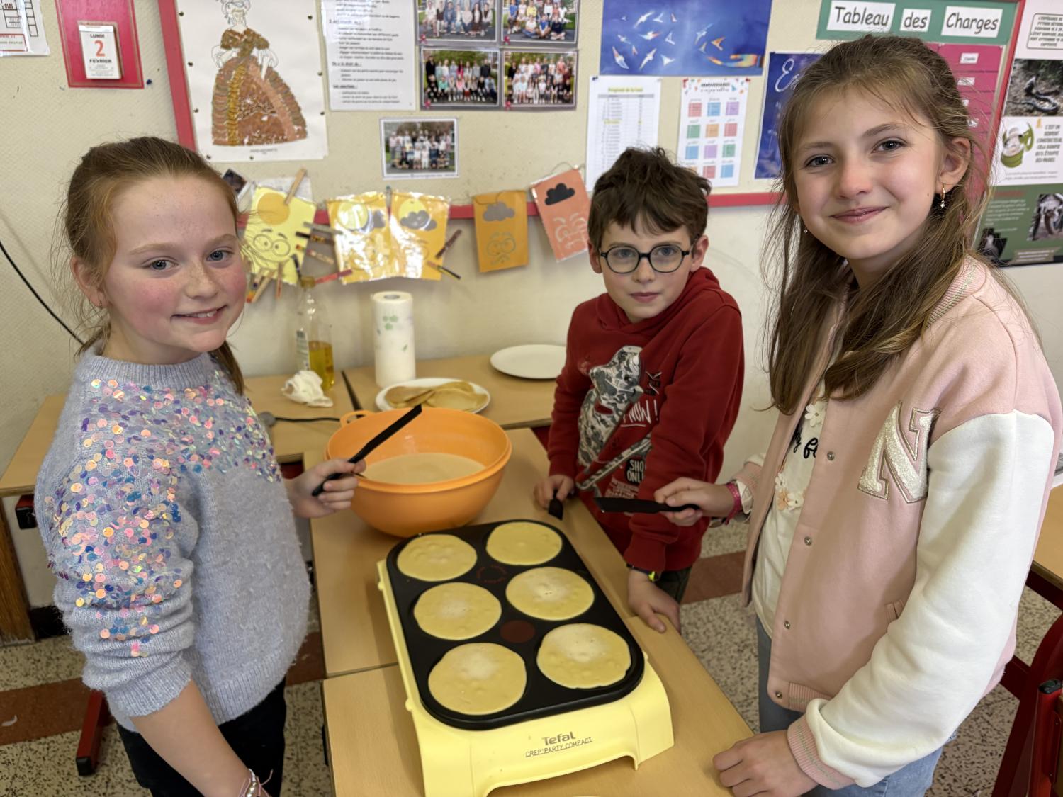 Ce lundi, les élèves de la classe de Mme Delvaux ont préparé de délicieuses crêpes! Chandeleur oblige!