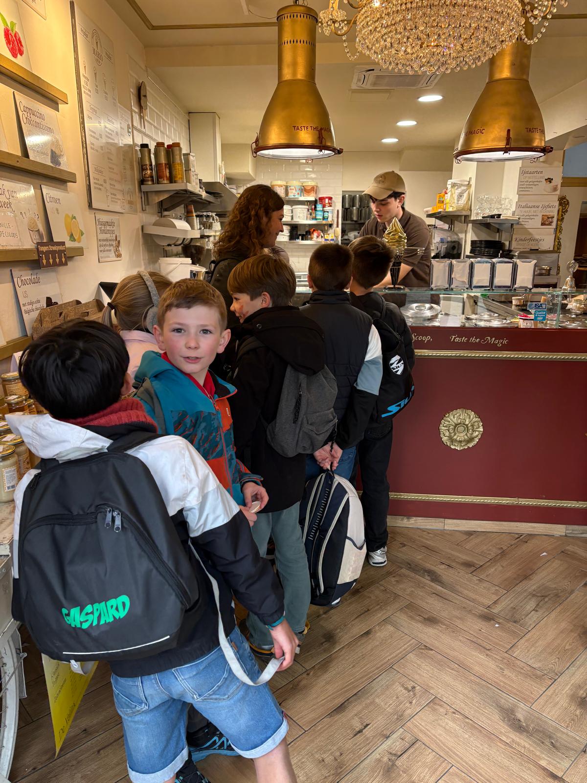 Ce jeudi 2 avril, la classe de P4I est partie à la découverte de la "vieille" ville de Tongres... Notre guide, connue de toutes et tous, nous a embarqués dans la vieille ville pour une petite leçon d'histoire: nombreuses observations de bâtiments anciens, très anciens, visite du béguinage, marche sur les remparts, de la tour de la basilique, du cloître... Nous avons également découvert les fabuleuses ressources du musée Gallo-romain avec au menu: séance d'habillage, explications sur la chasse, l'art de se chauffer et de ... cuisiner... Une top visite qui se sera achevée par une dégustation glacée et un moment de détente avec les copains!