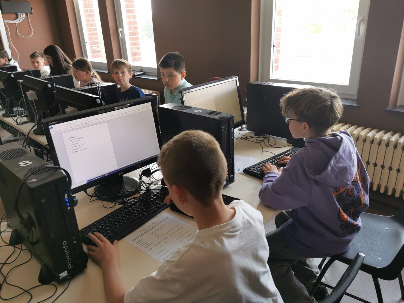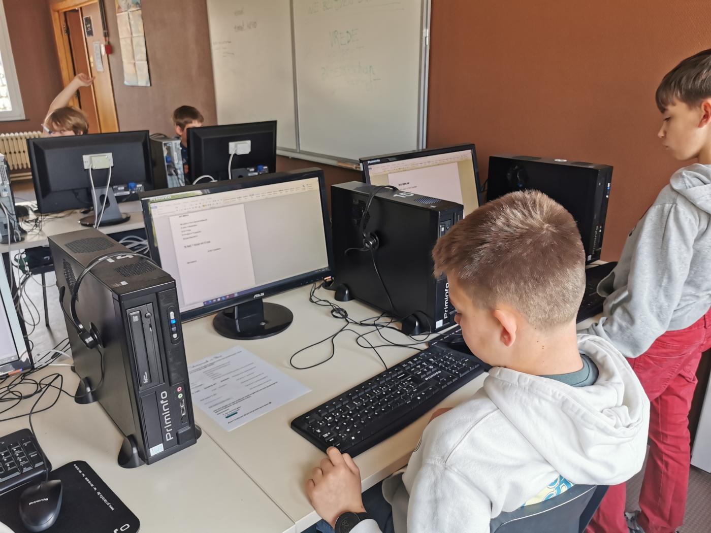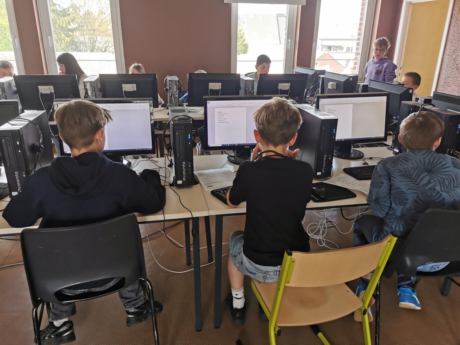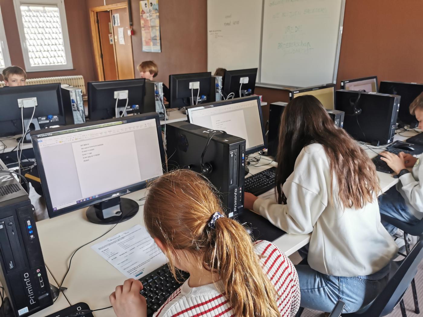 Les élèves du degré supérieur se familiarisent avec l'utilisation du clavier, la mise en page et le traitement de texte... Un gain de temps pour leur futur scolaire...