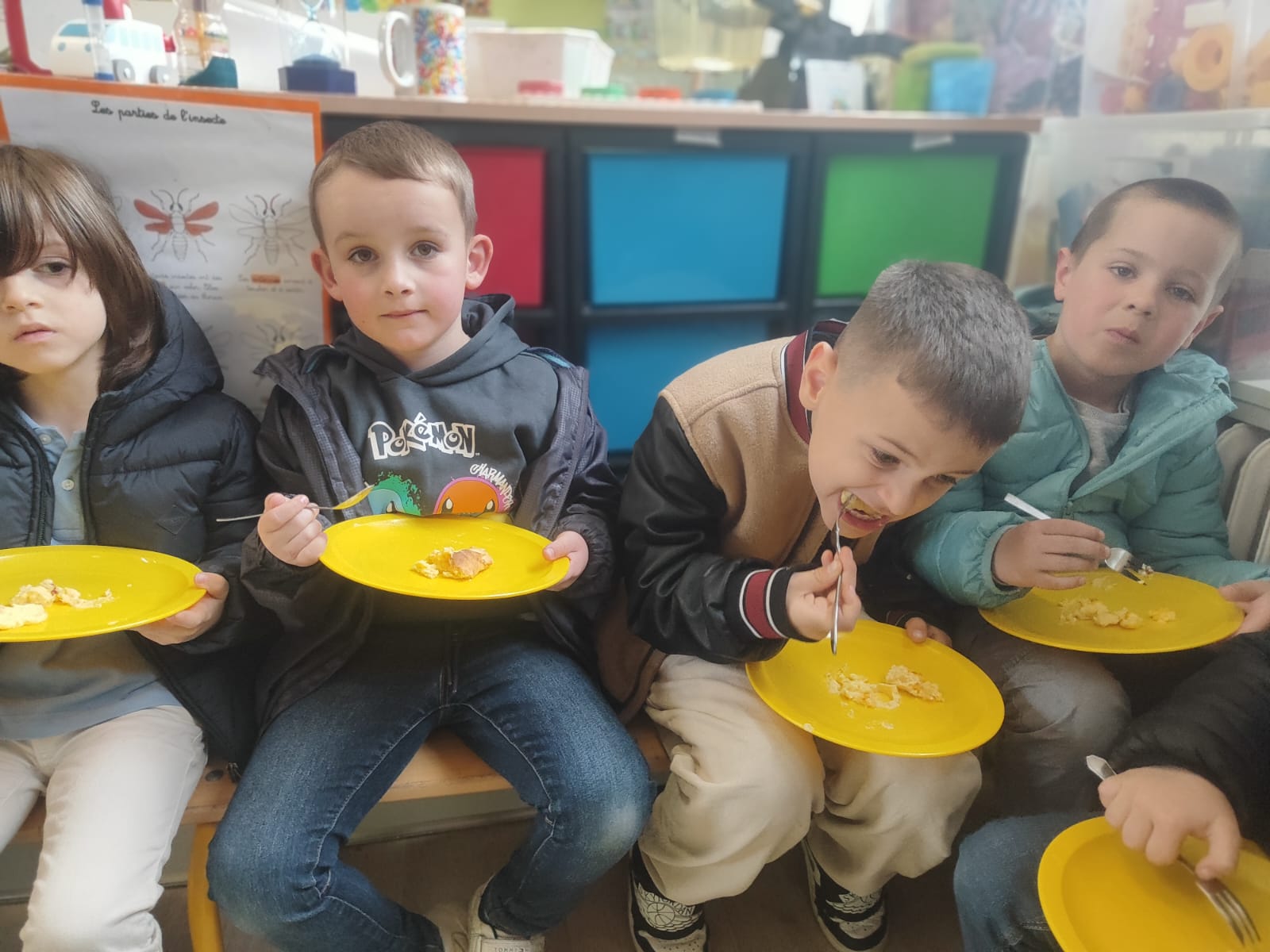 Anniversaire du Mois d'avril : Nita. Nous avons réalisé une tarte au citron , suite au spectacle sur les 5 sens qui en faisait référence.