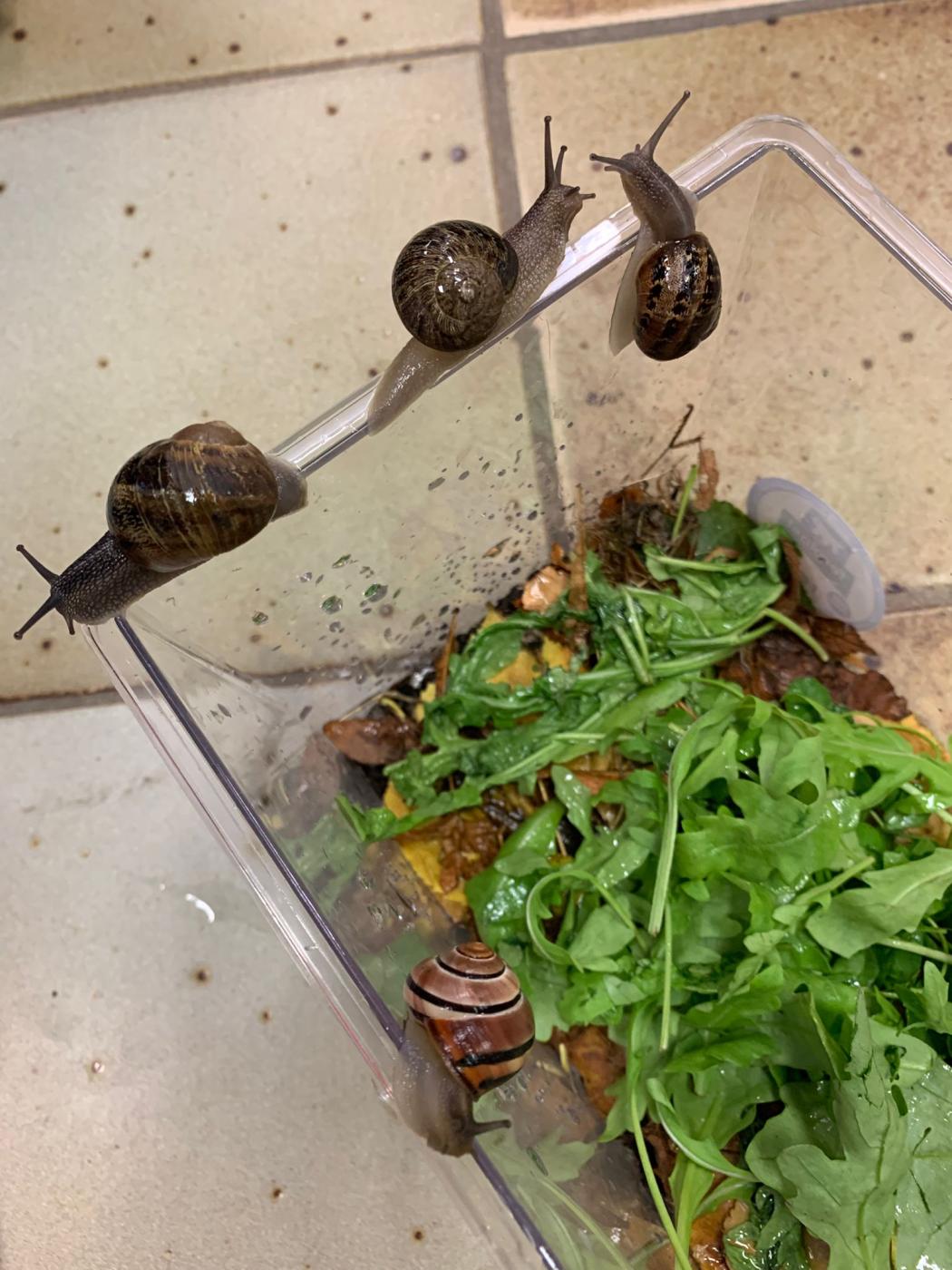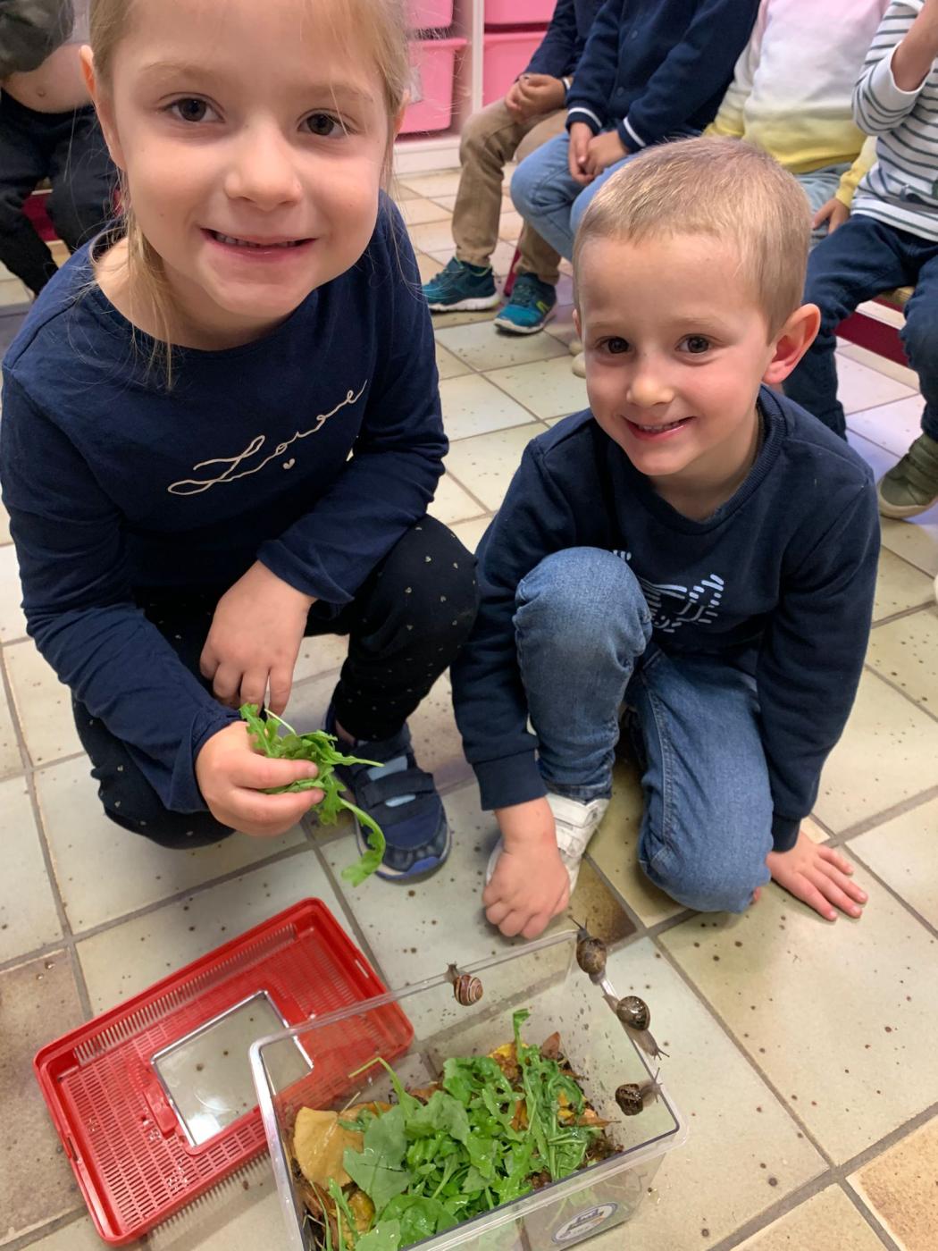 Début de notre projet sur les escargots : promenade dans le parc afin de récolter des feuilles et de la terre, réalisation de notre terrarium, observation et élevage de nos escargots et quelques activités deja réalisées…