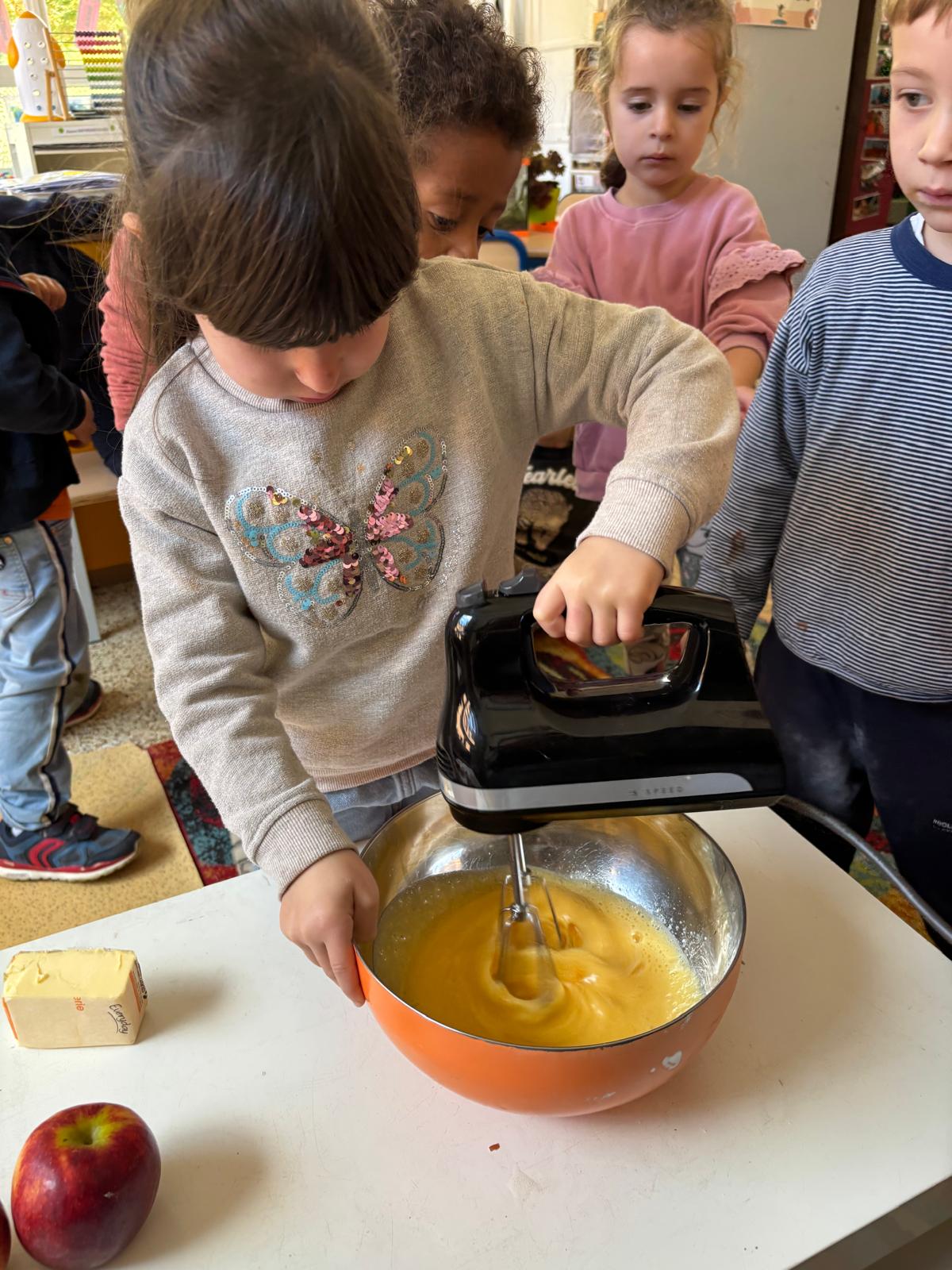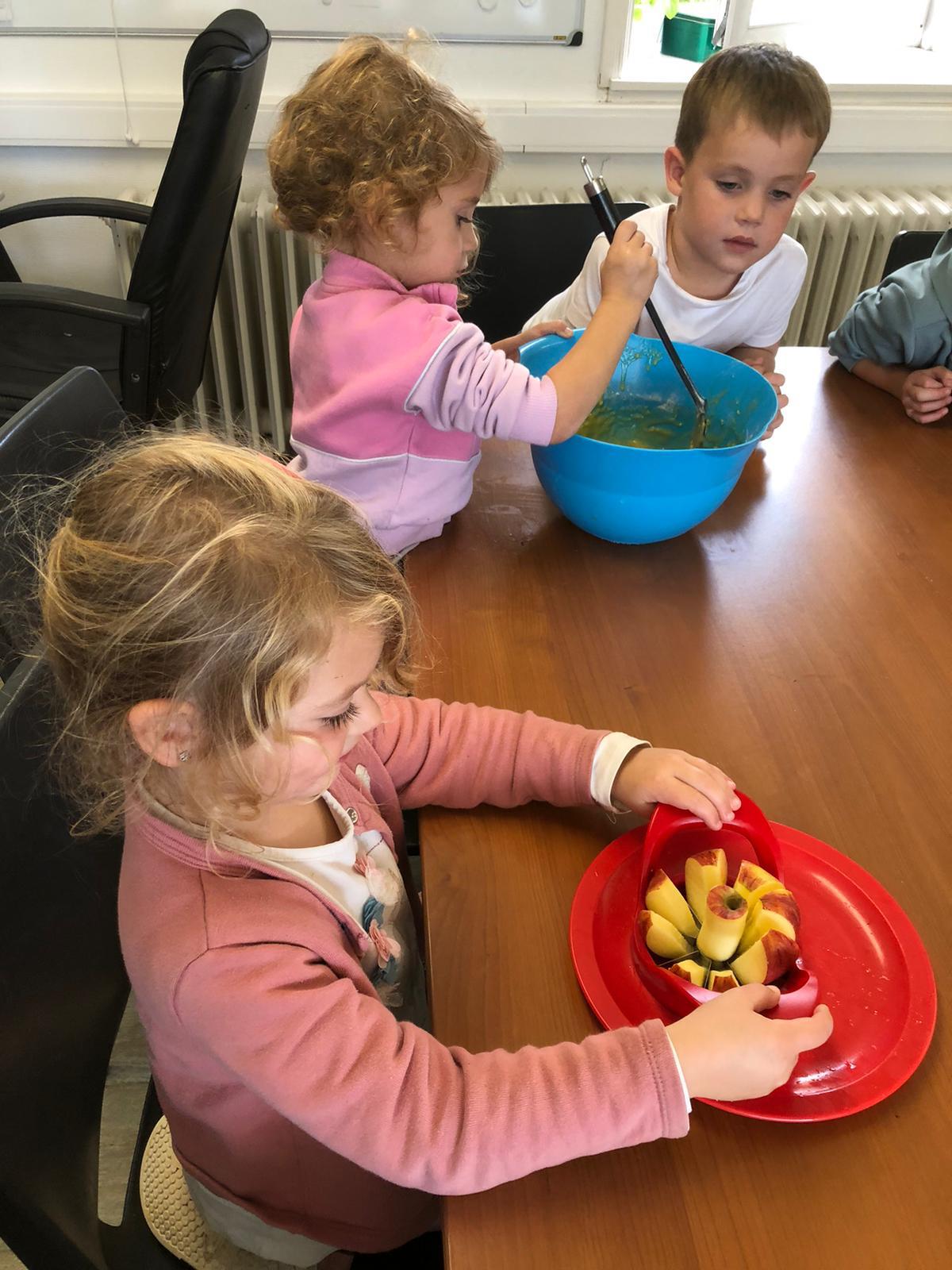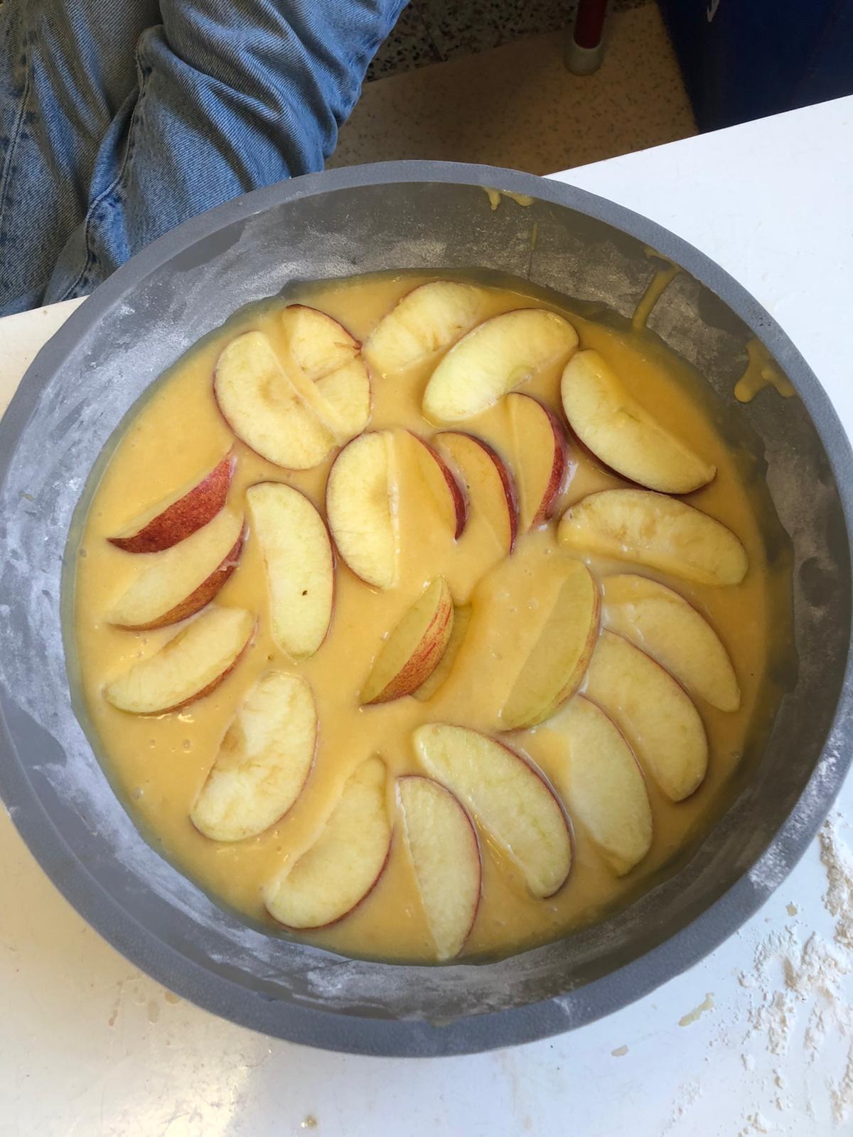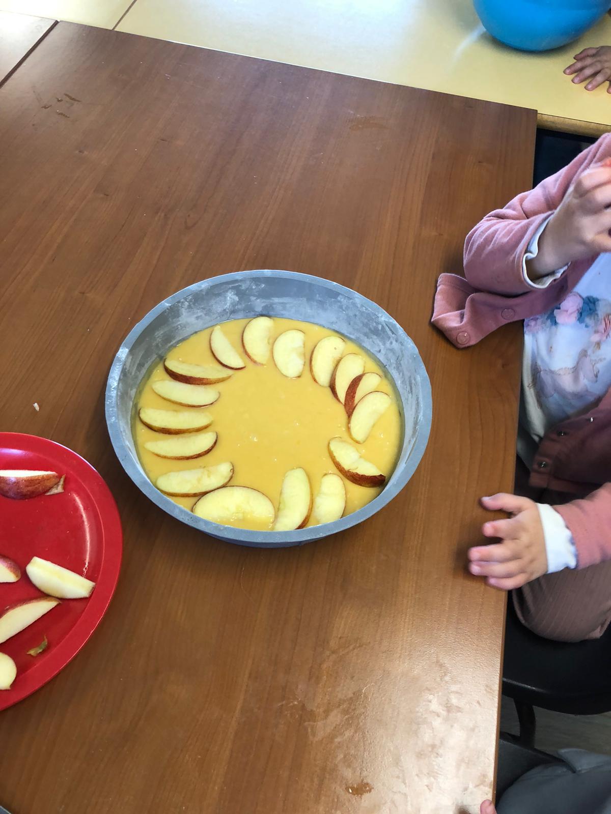 Pour l’anniversaire de Marie-Louise, Lena, Lina et Eva, nous avons préparé un délicieux cake aux pommes