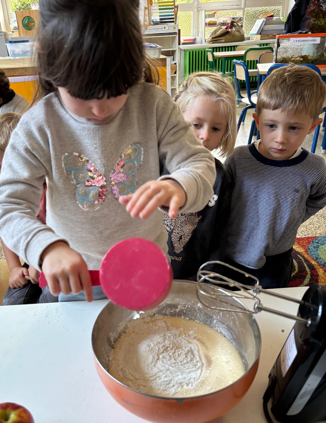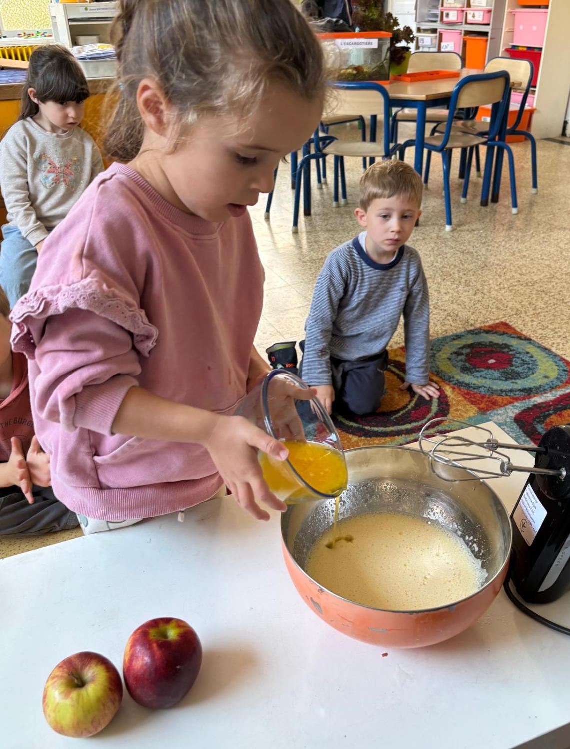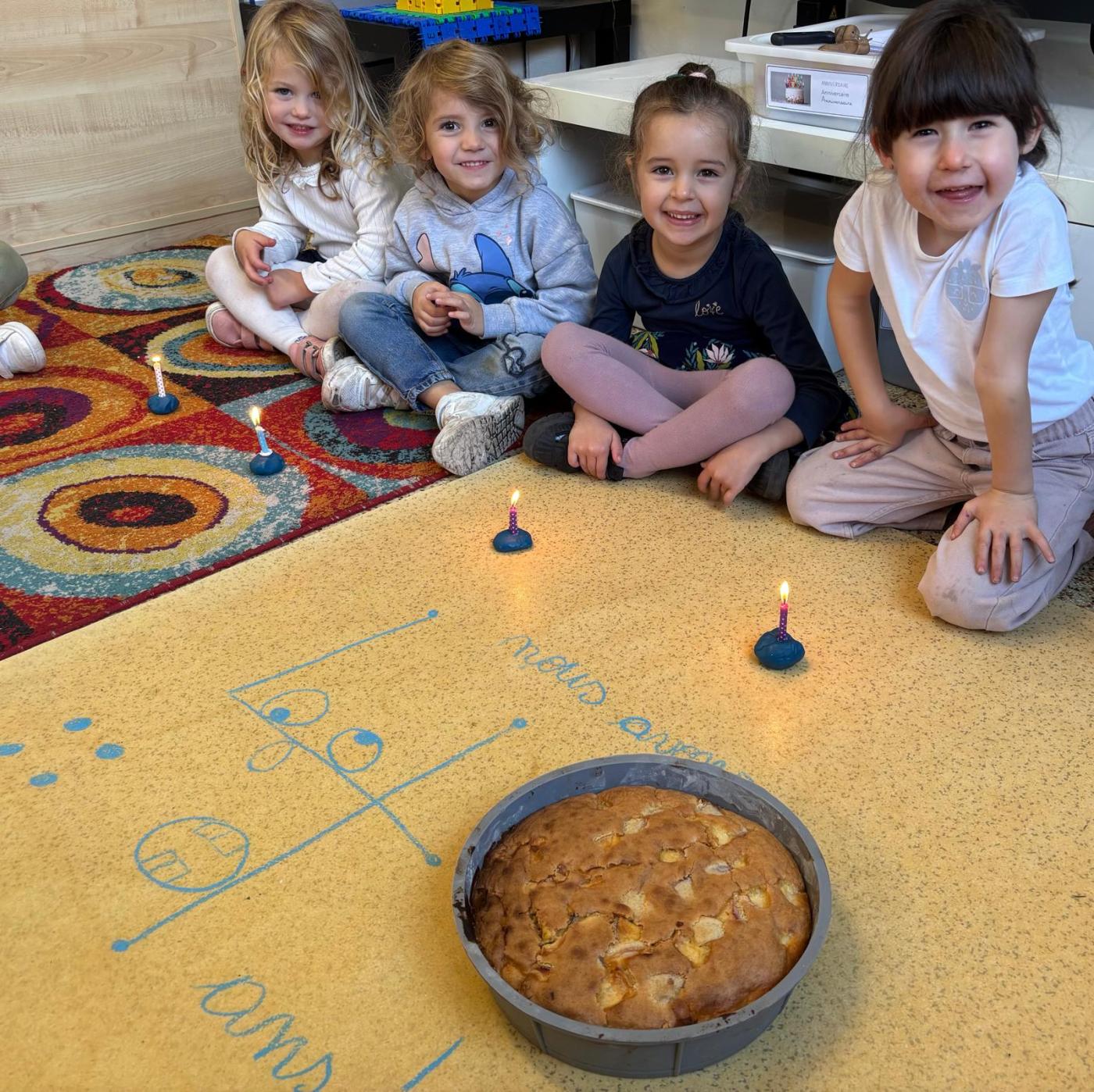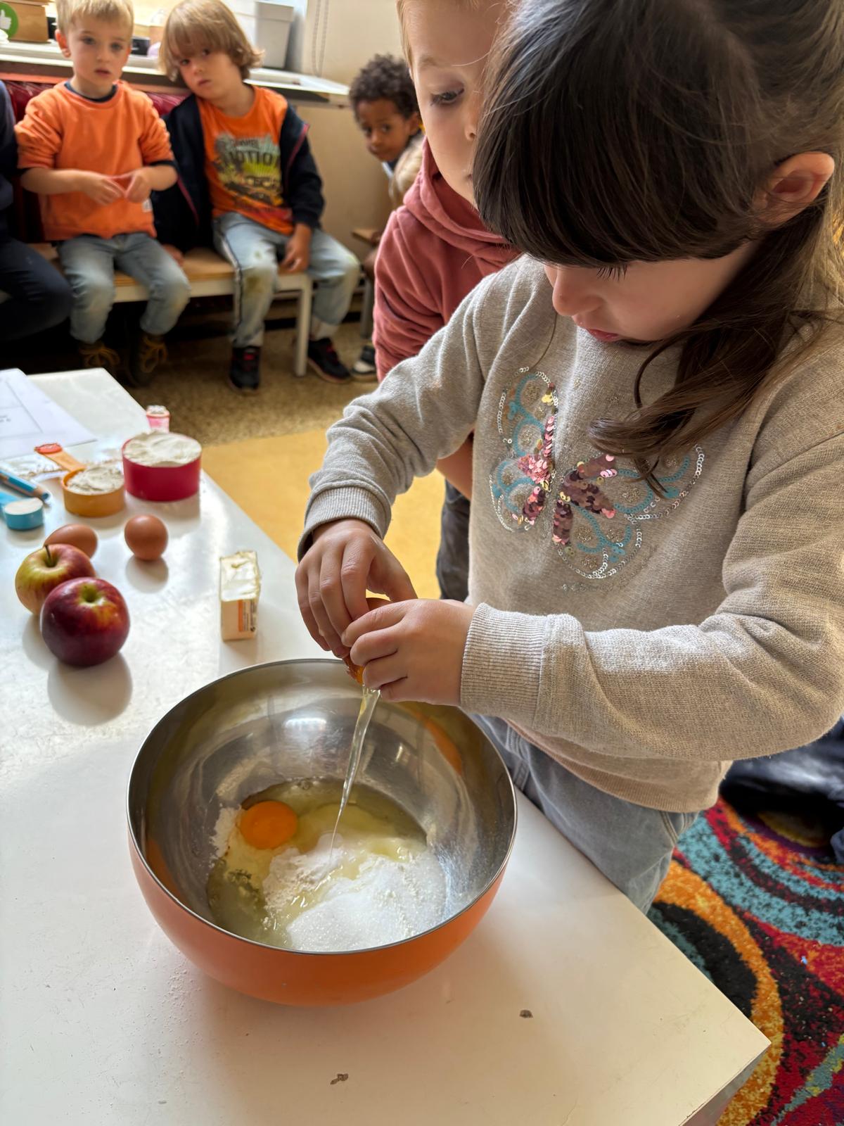 Pour l’anniversaire de Marie-Louise, Lena, Lina et Eva, nous avons préparé un délicieux cake aux pommes