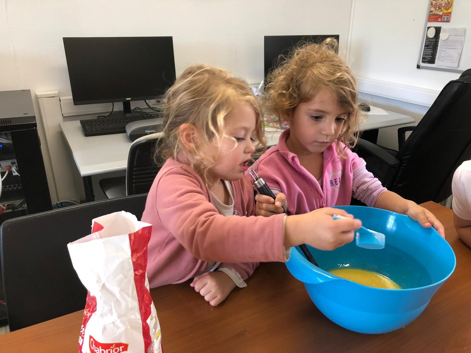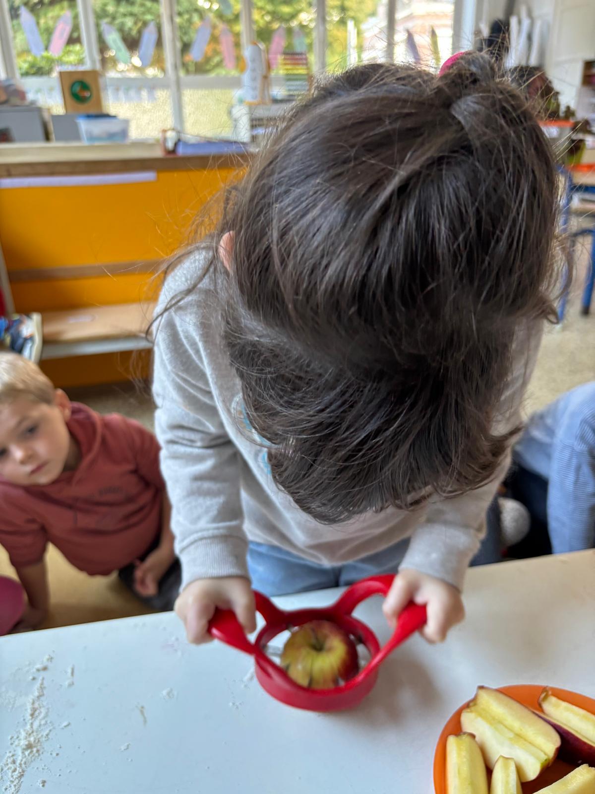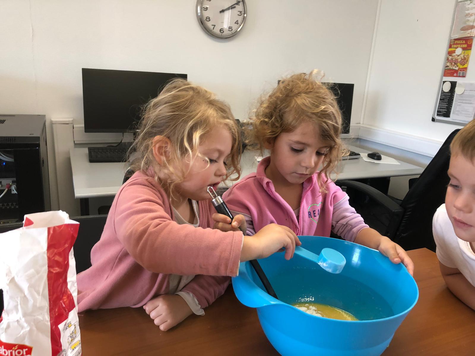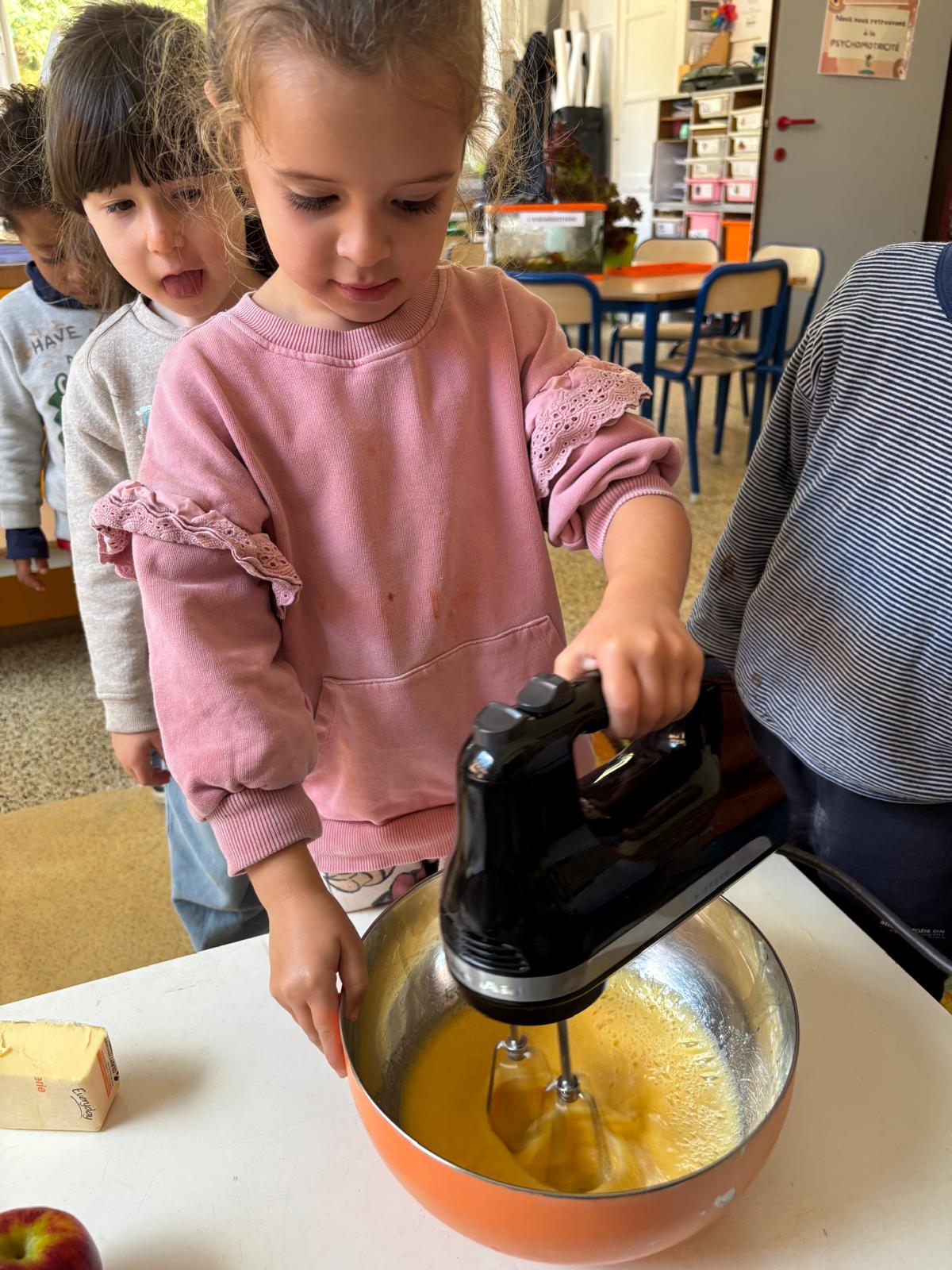 Pour l’anniversaire de Marie-Louise, Lena, Lina et Eva, nous avons préparé un délicieux cake aux pommes