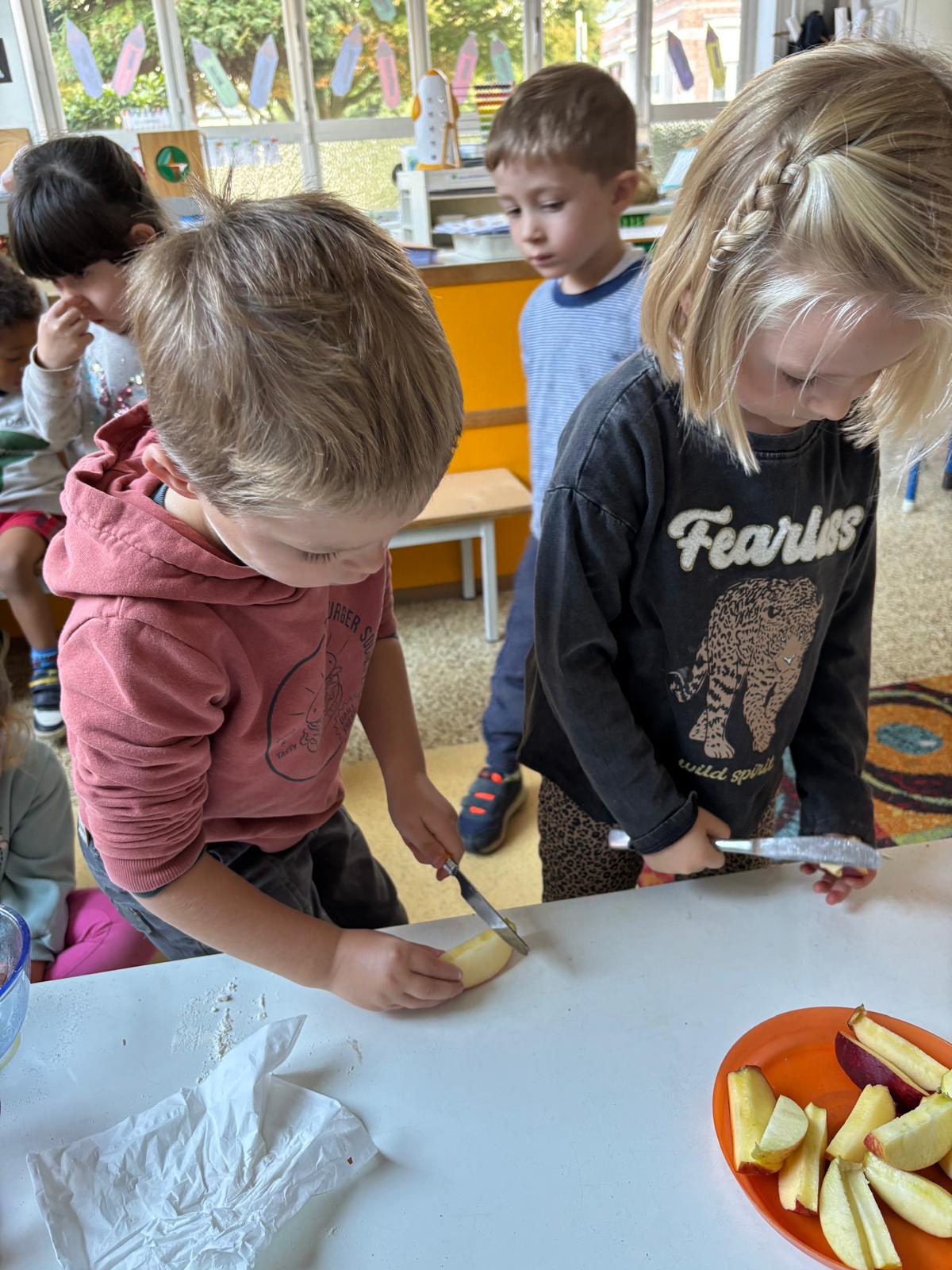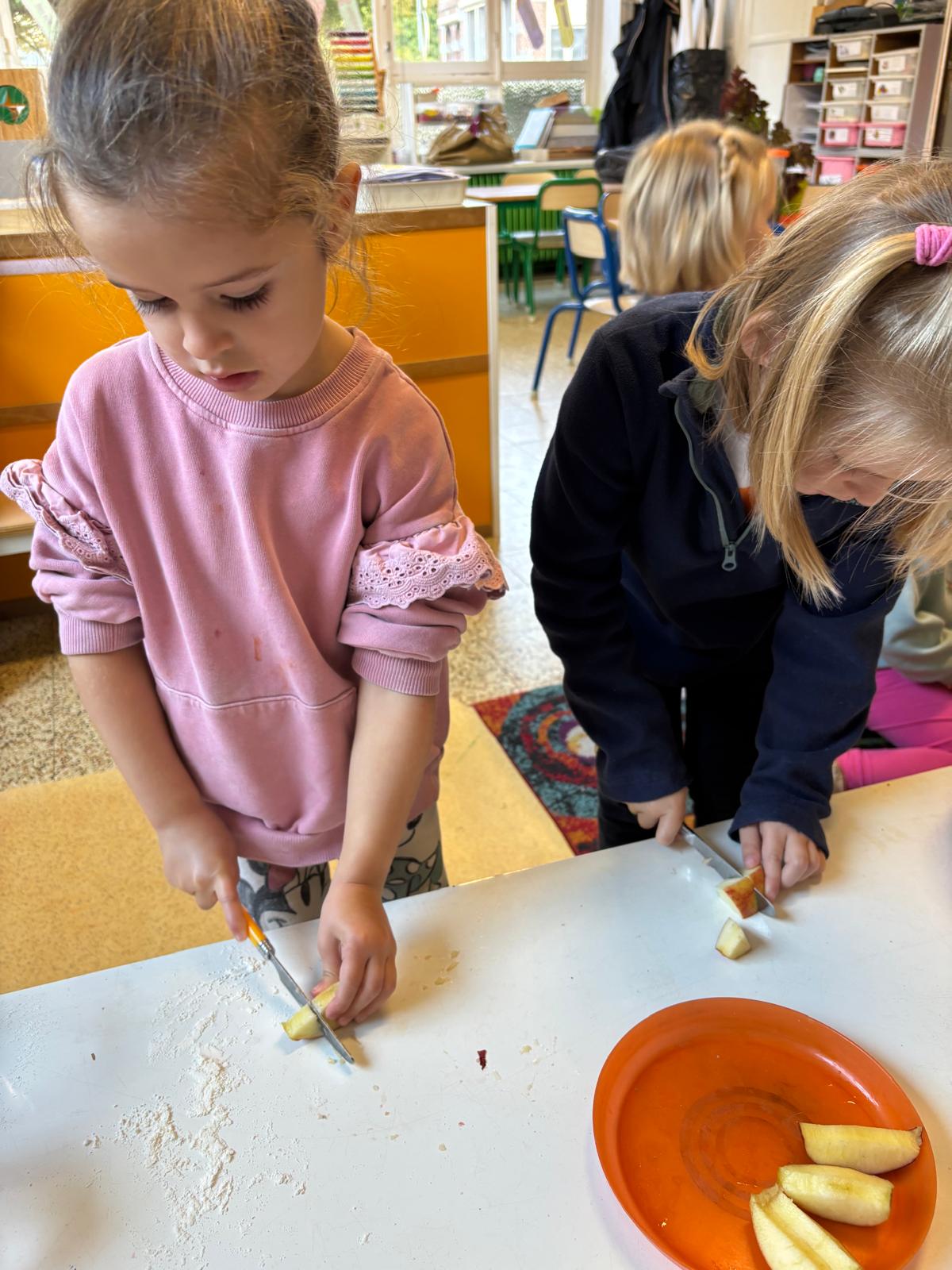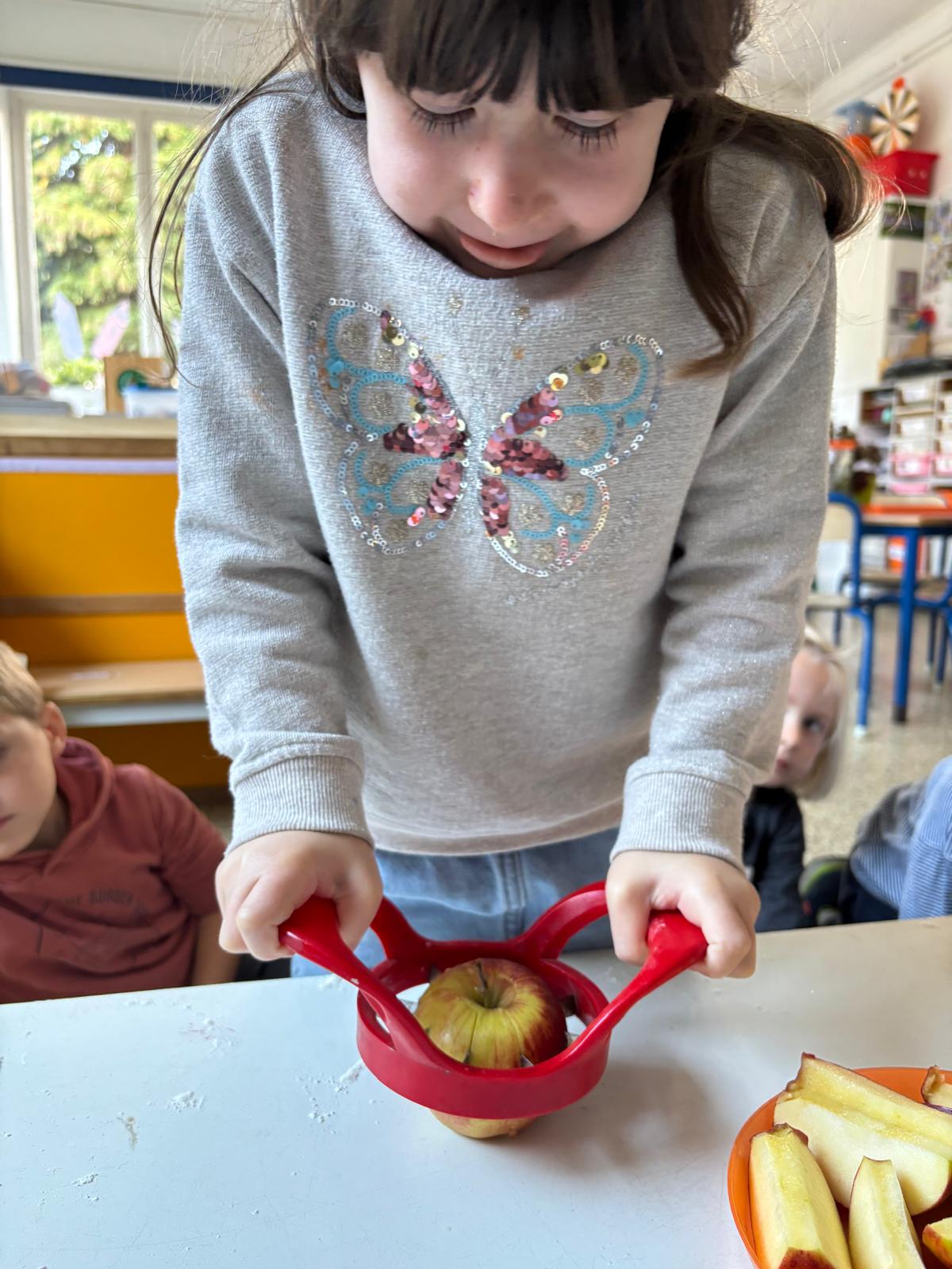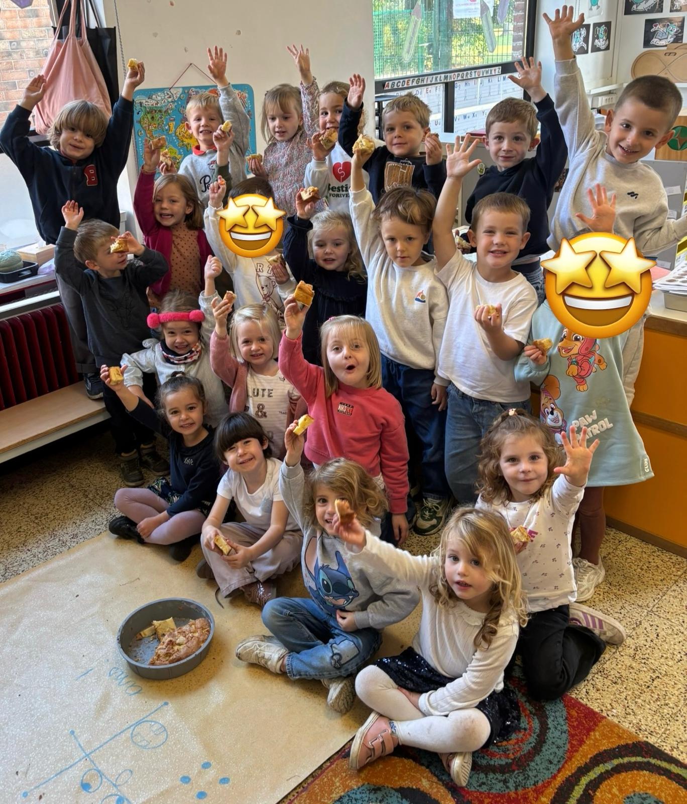 Pour l’anniversaire de Marie-Louise, Lena, Lina et Eva, nous avons préparé un délicieux cake aux pommes
