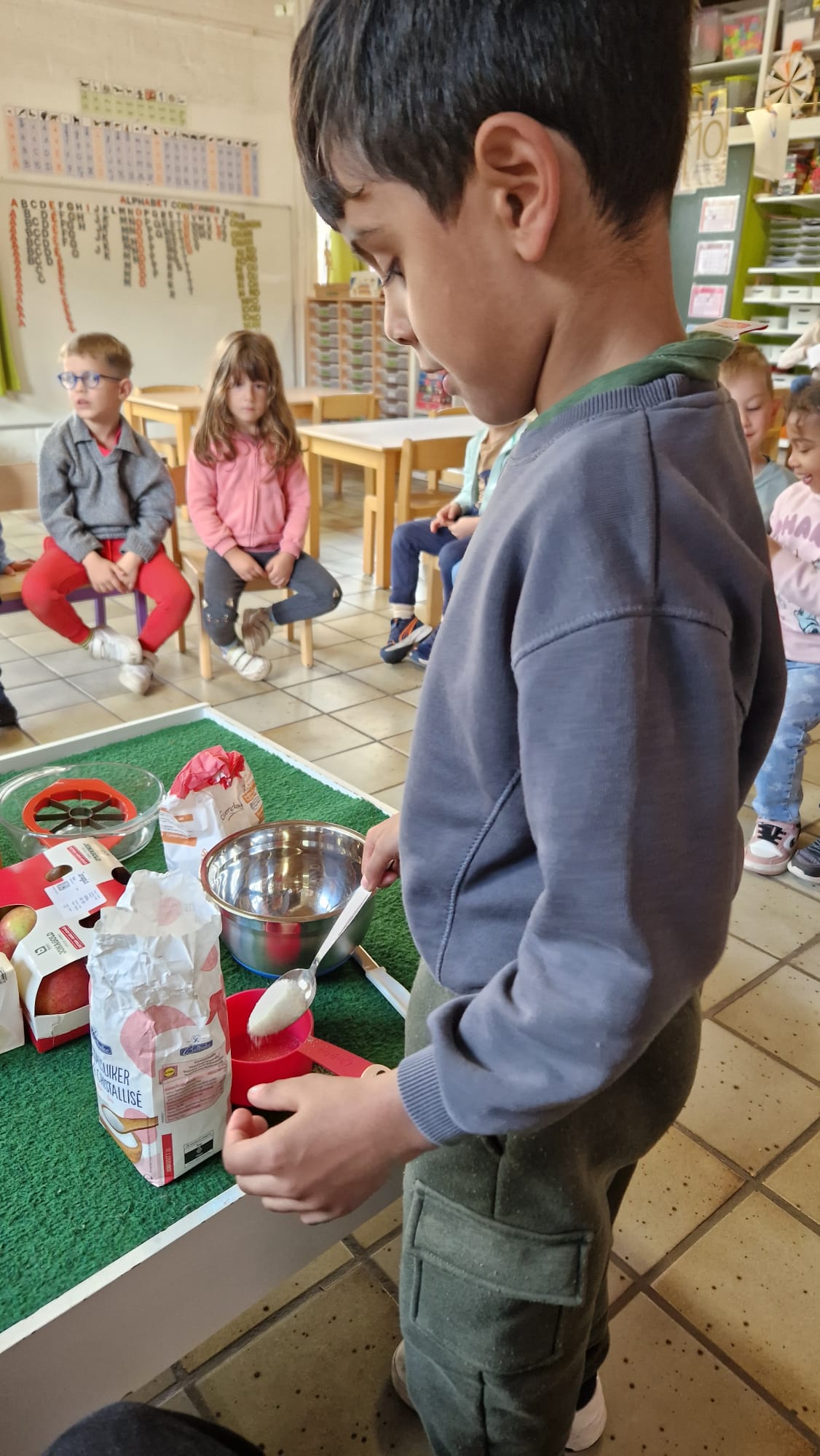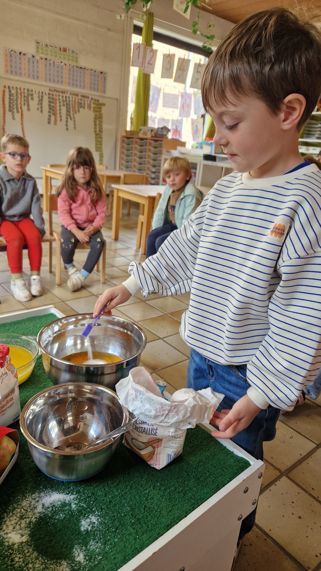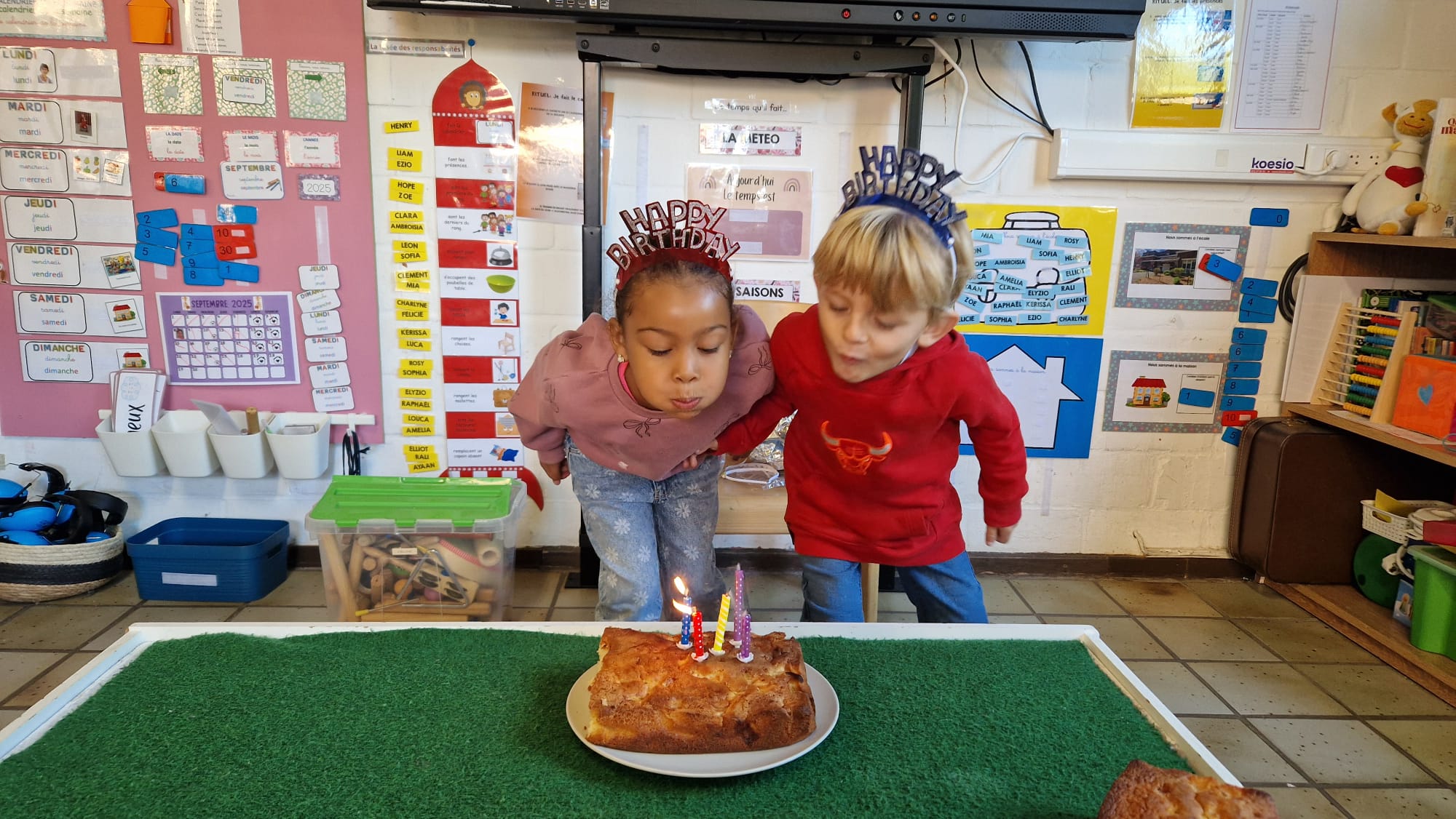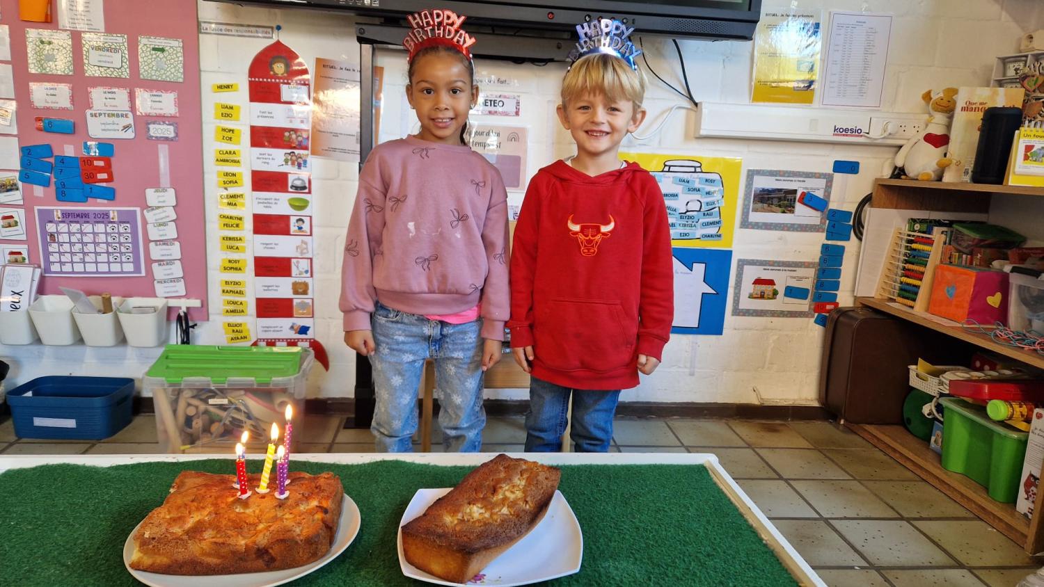 - Nous avons fêté les anniversaires des mois d'août et septembre. Pour l'occasion, nous avons réalisé un cake aux pommes. Joyeux anniversaire Raphaël et Kerissa!