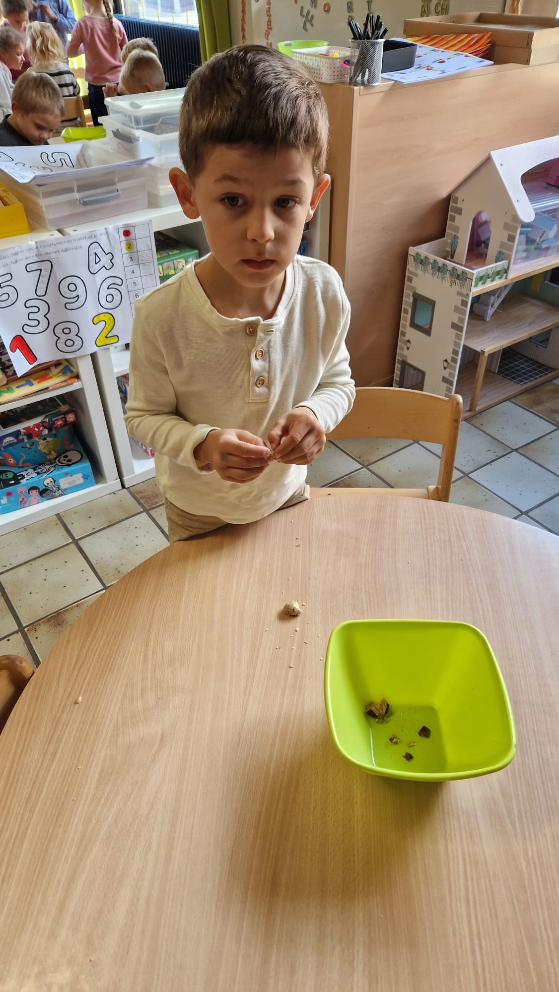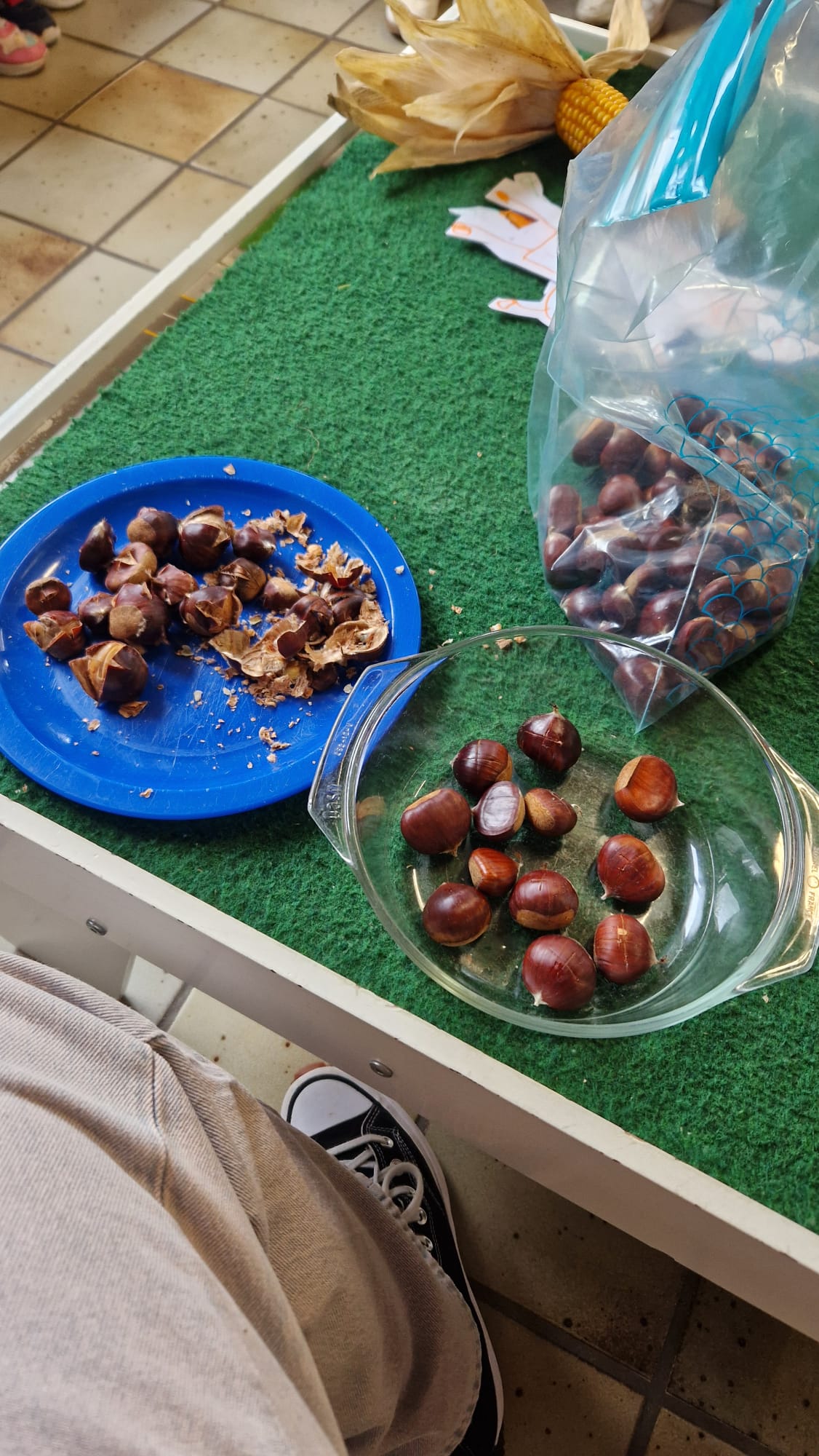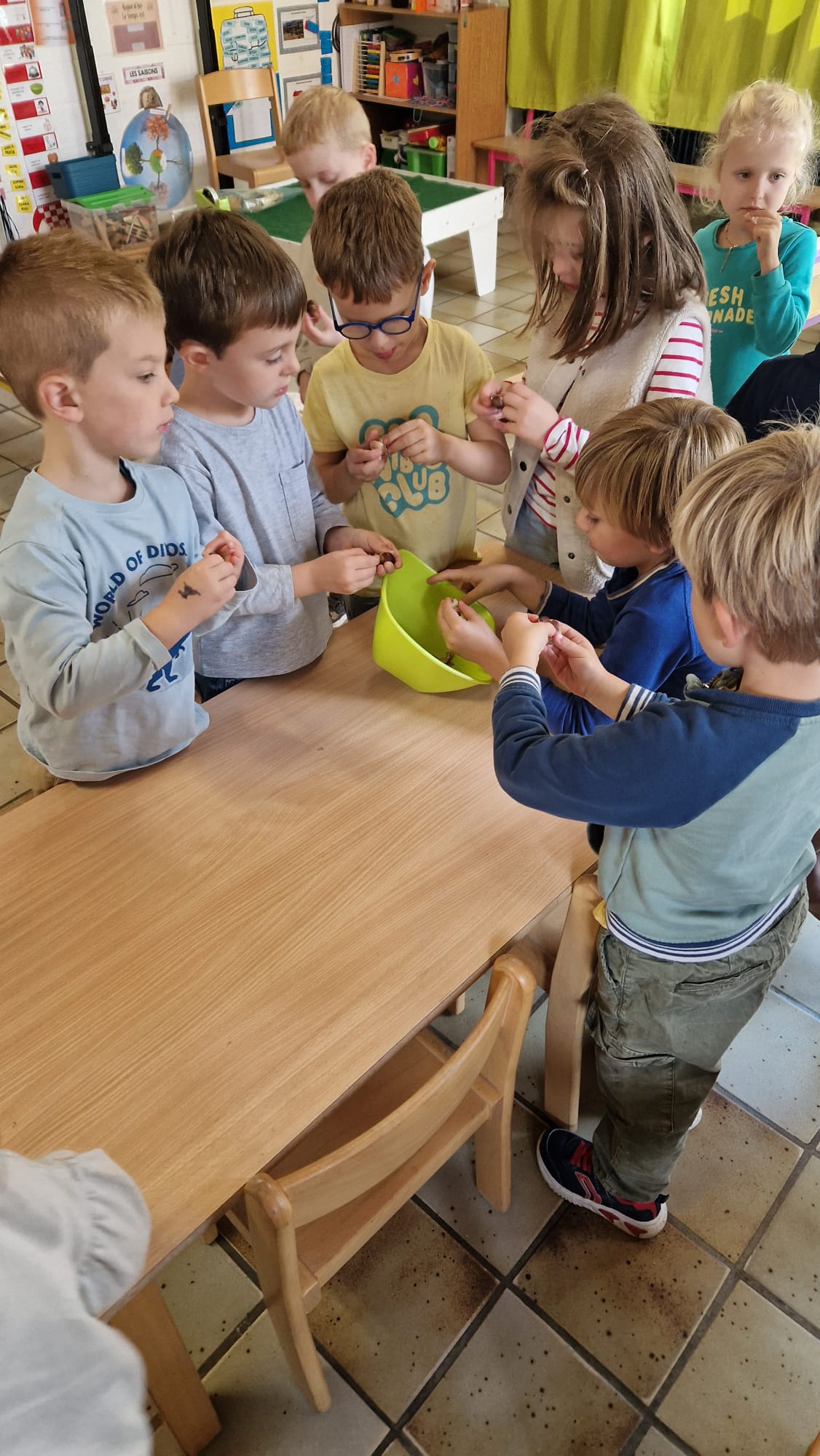 - Ce mardi, Louca nous a apporté des châtaignes. Nous avons appris à les différencier des marrons et à nommer leur arbre: le châtaignier.