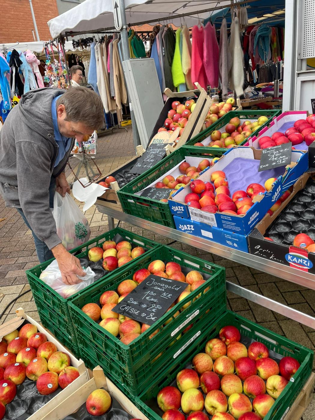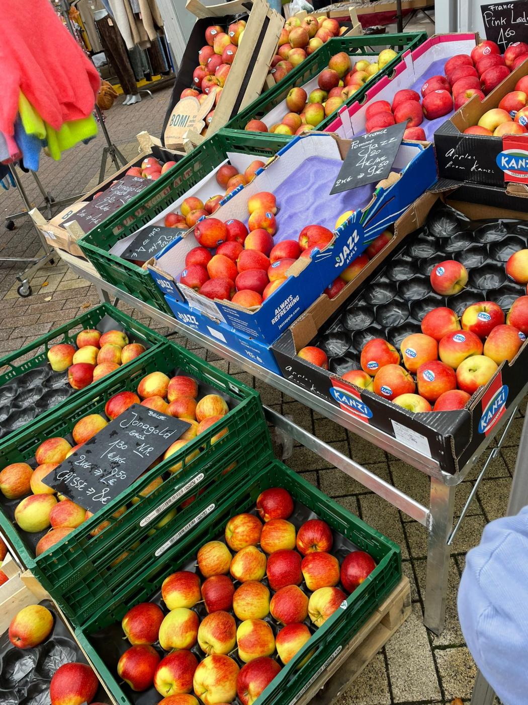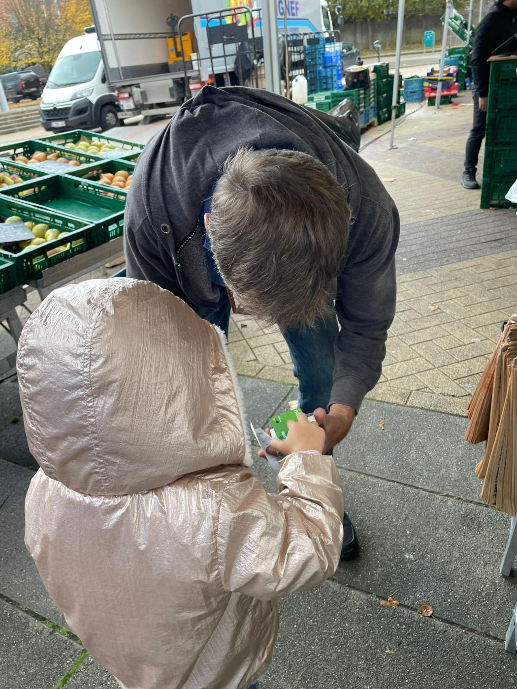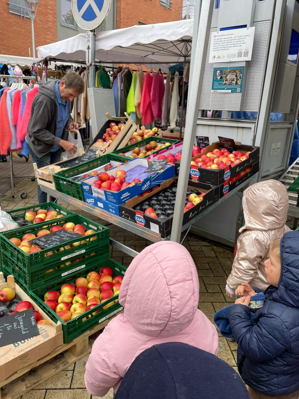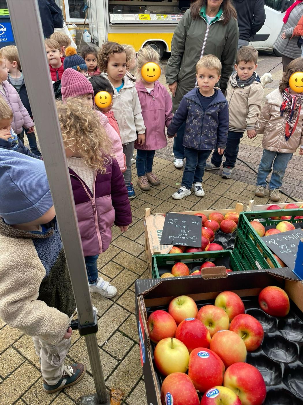 Ce lundi, nous sommes allés nous promener sur le marché pour acheter des pommes pour réaliser des muffins pour les anniversaires du mois. Nous avons également acheté des pommes bien juteuses pour essayer de faire du jus de pommes cette semaine avec Mme Valentine et Mme Manon.