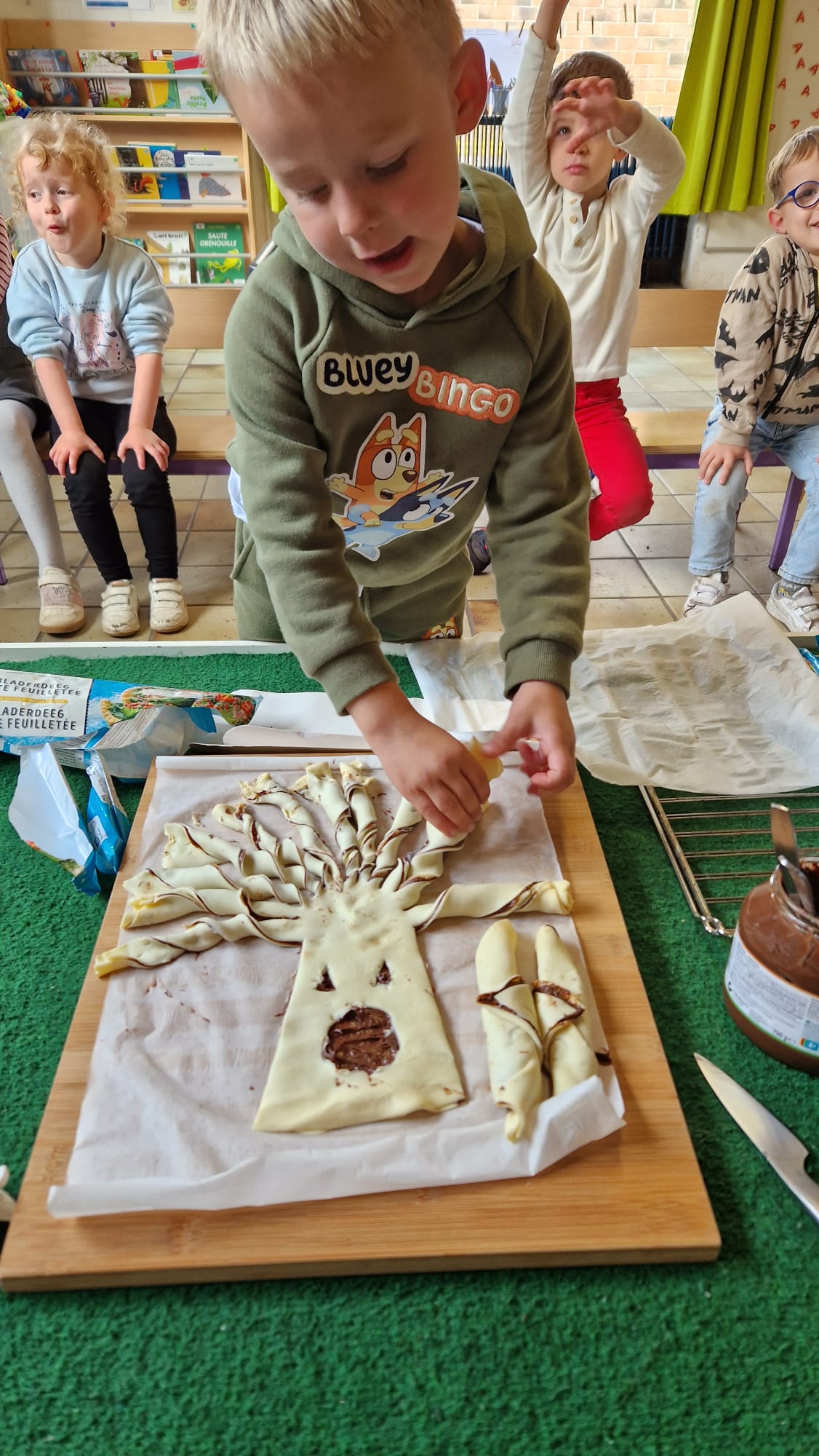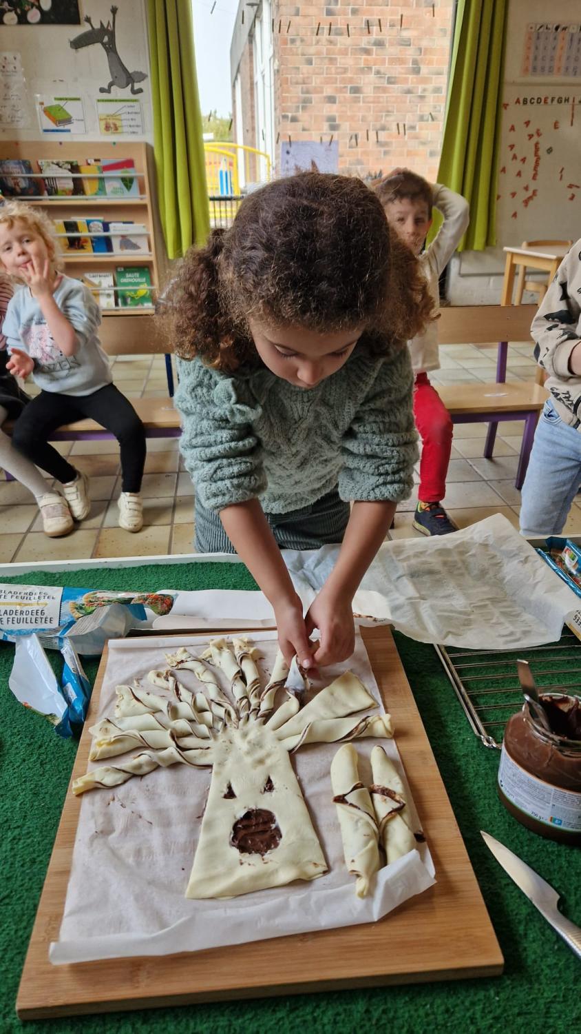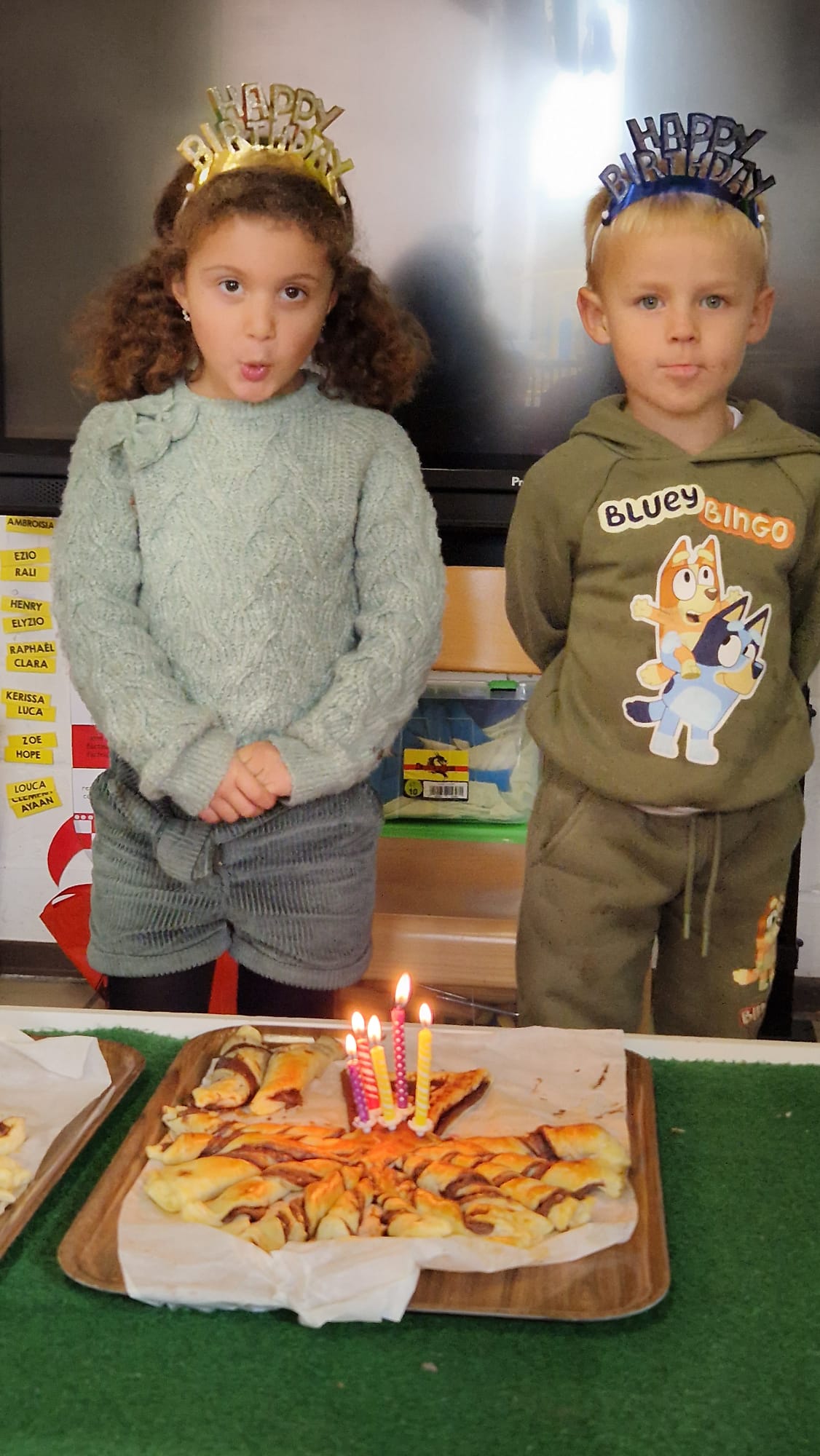 Nous avons fêté les anniversaires du mois d'octobre: Amelia et Elyzio. Nous avons réalisé un arbre fantôme.