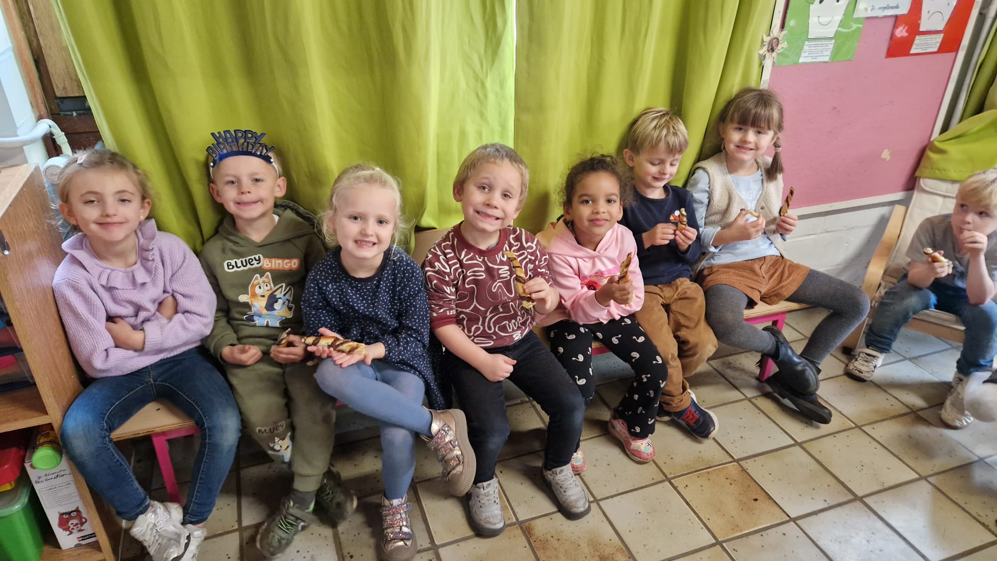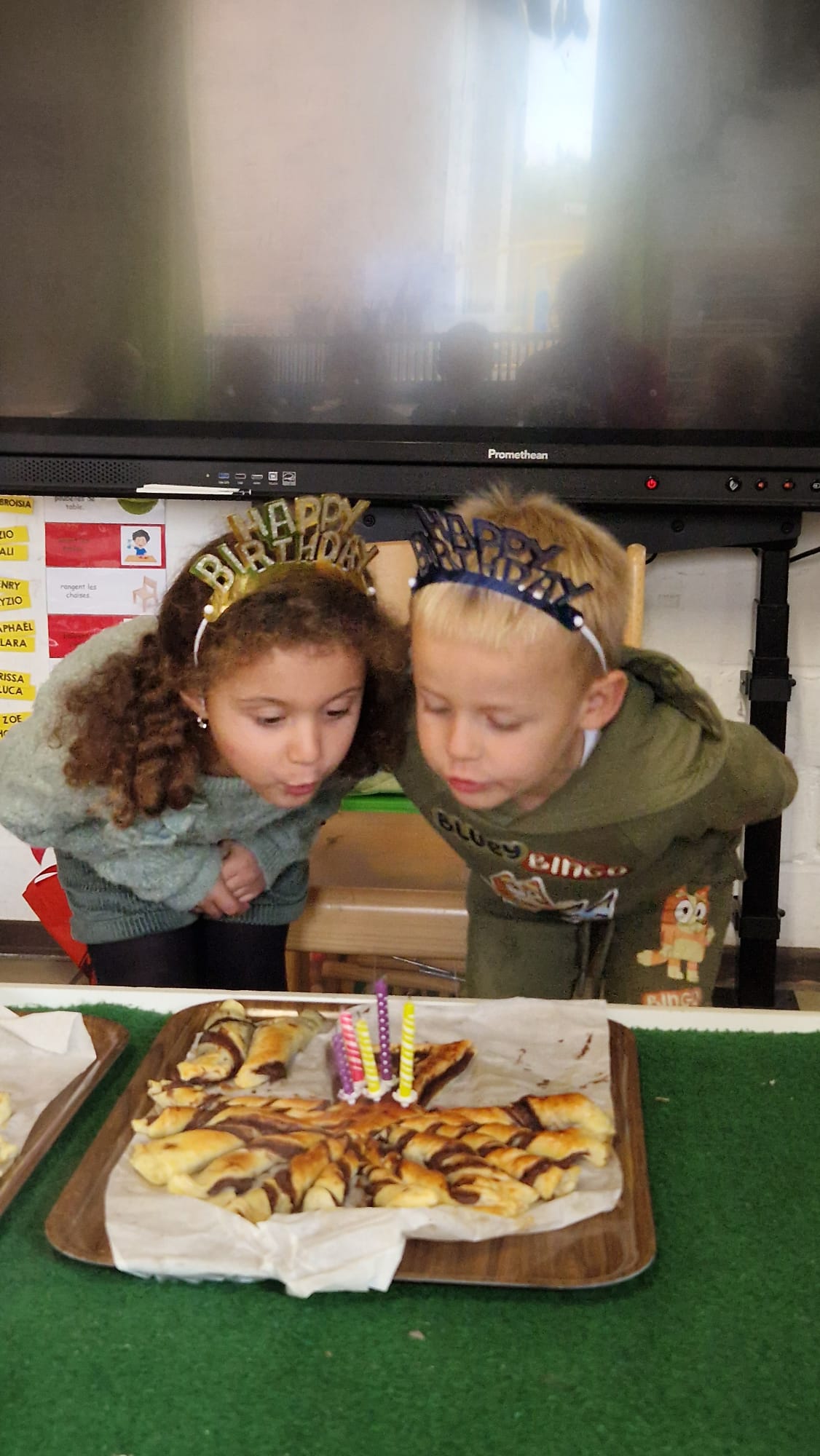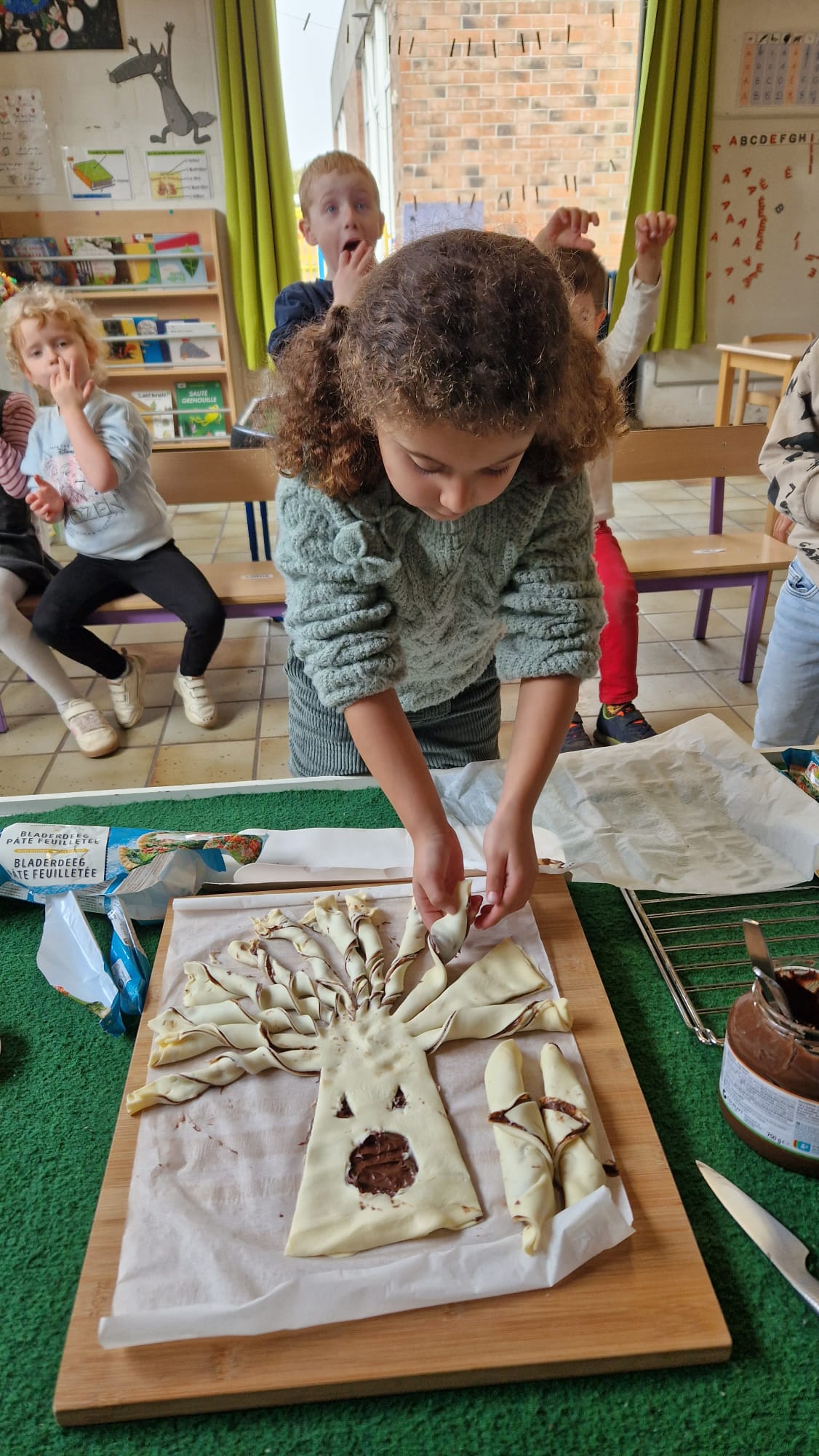 Nous avons fêté les anniversaires du mois d'octobre: Amelia et Elyzio. Nous avons réalisé un arbre fantôme.