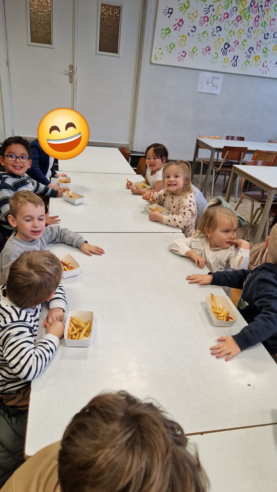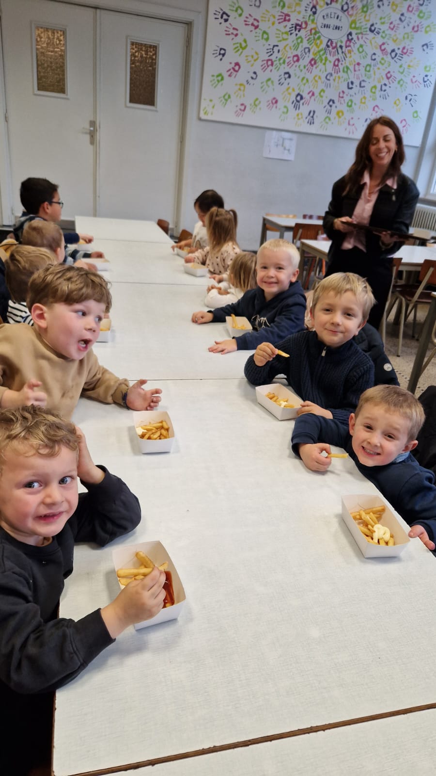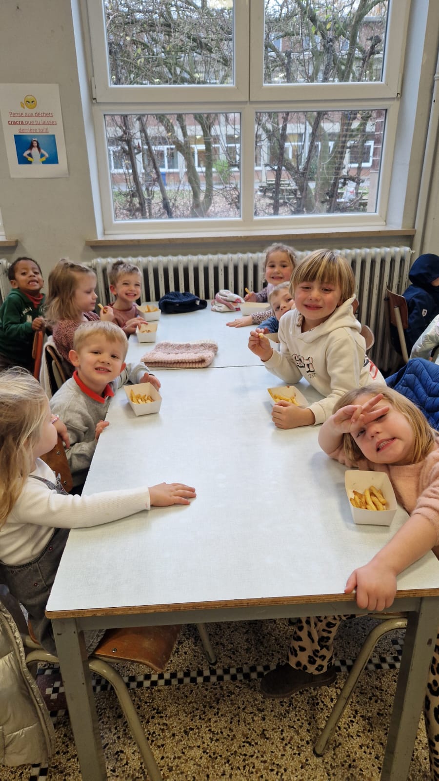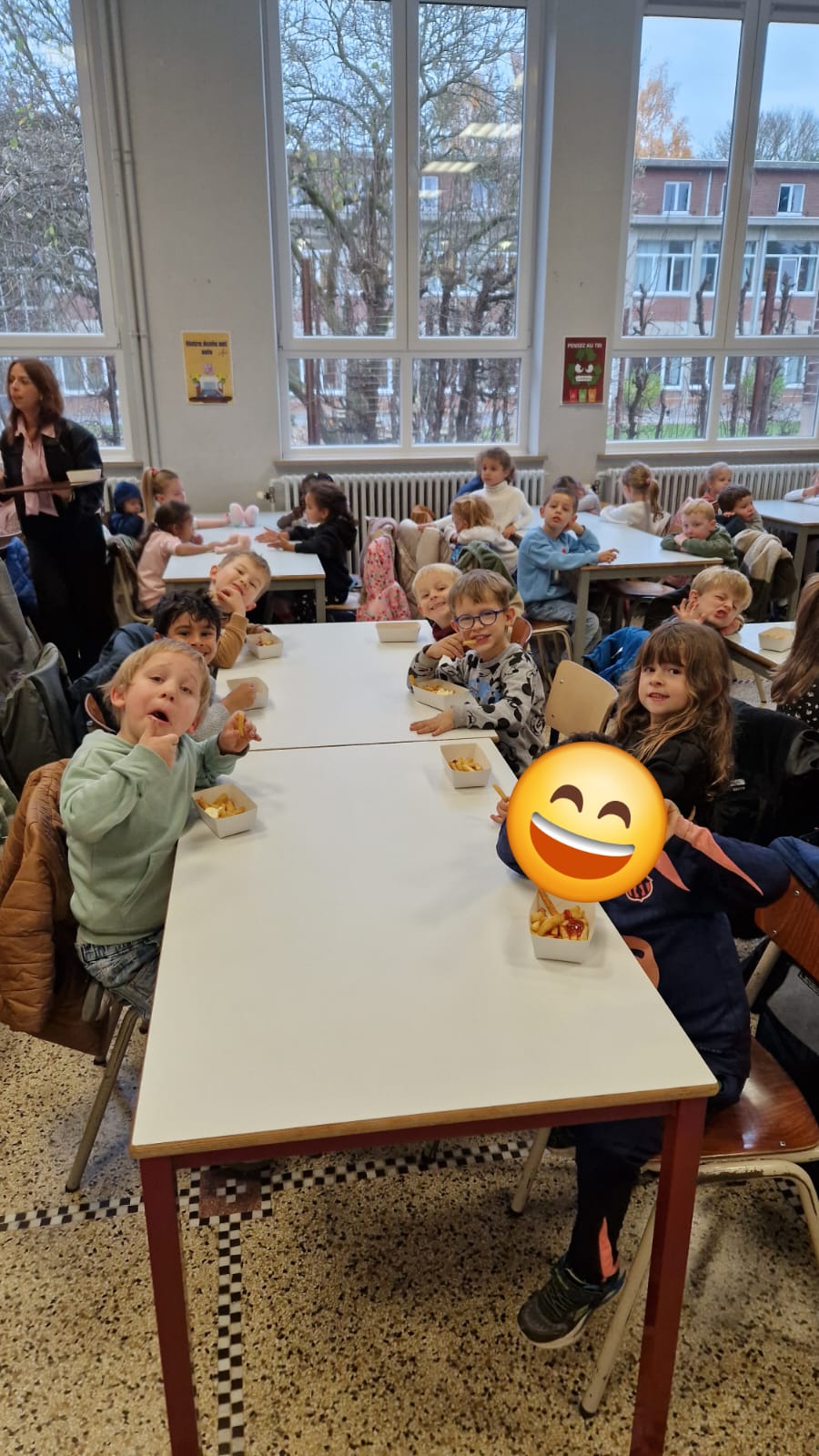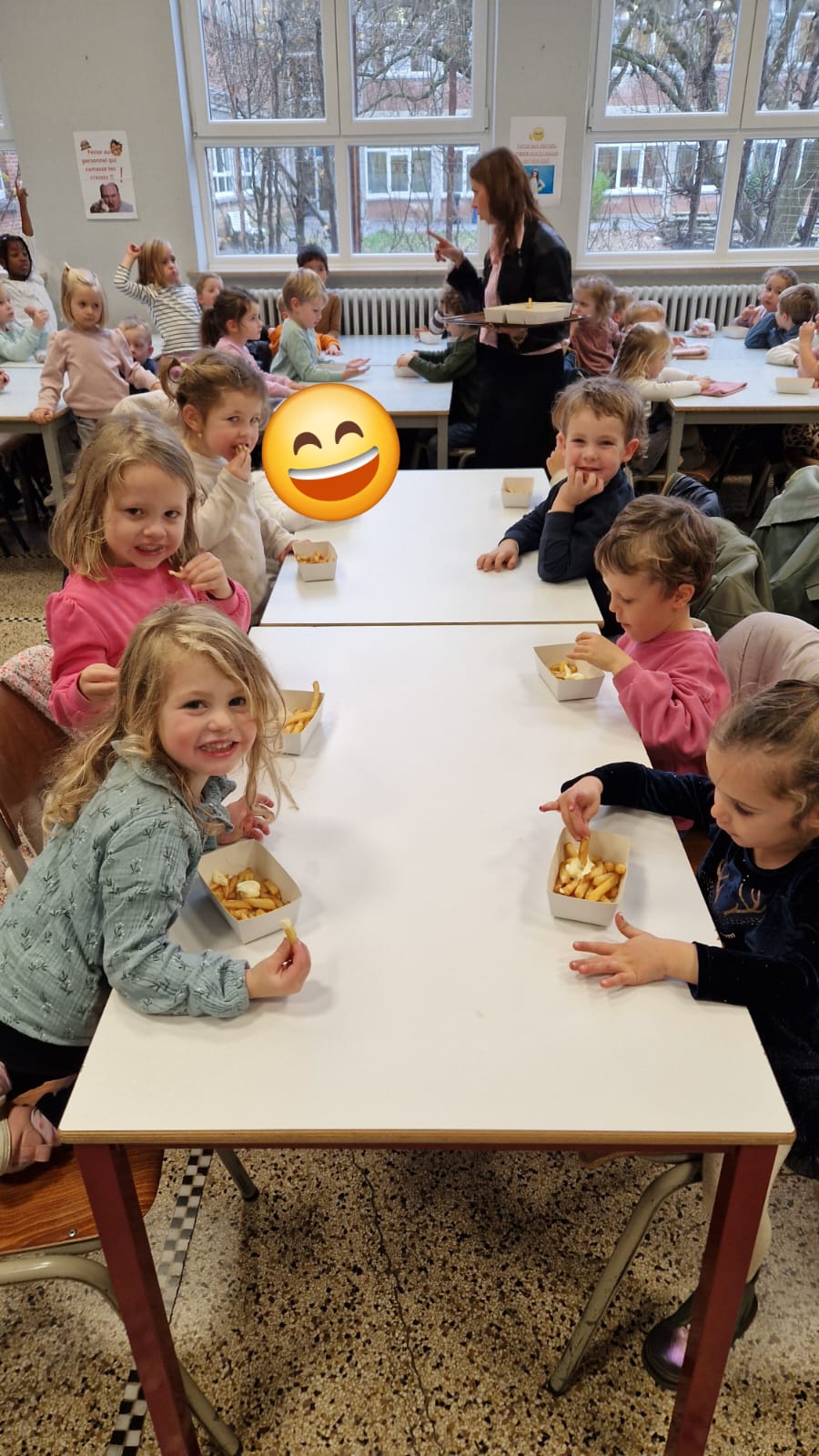 2) pour célébrer la fête de notre roi Philippe, nous nous sommes rendus au collège pour manger un plat typiquement belge...Des frites 1 fois ...!