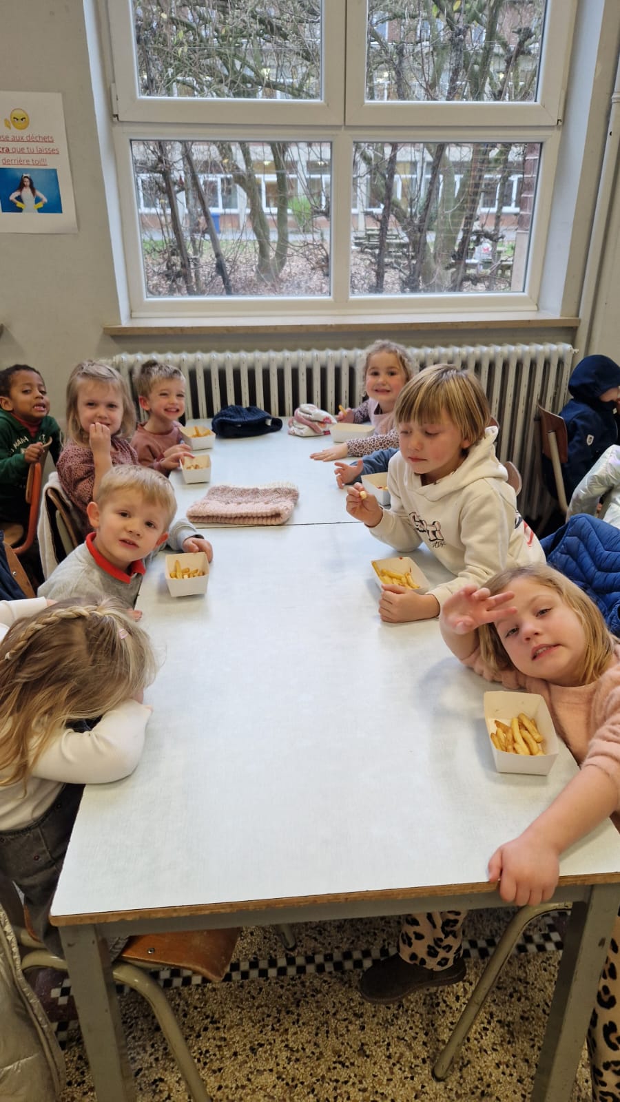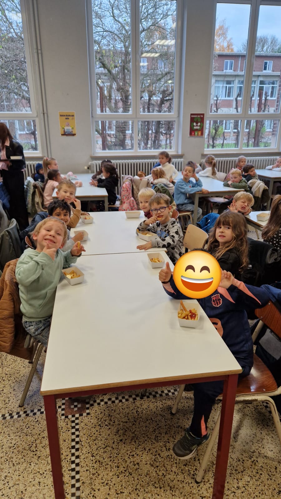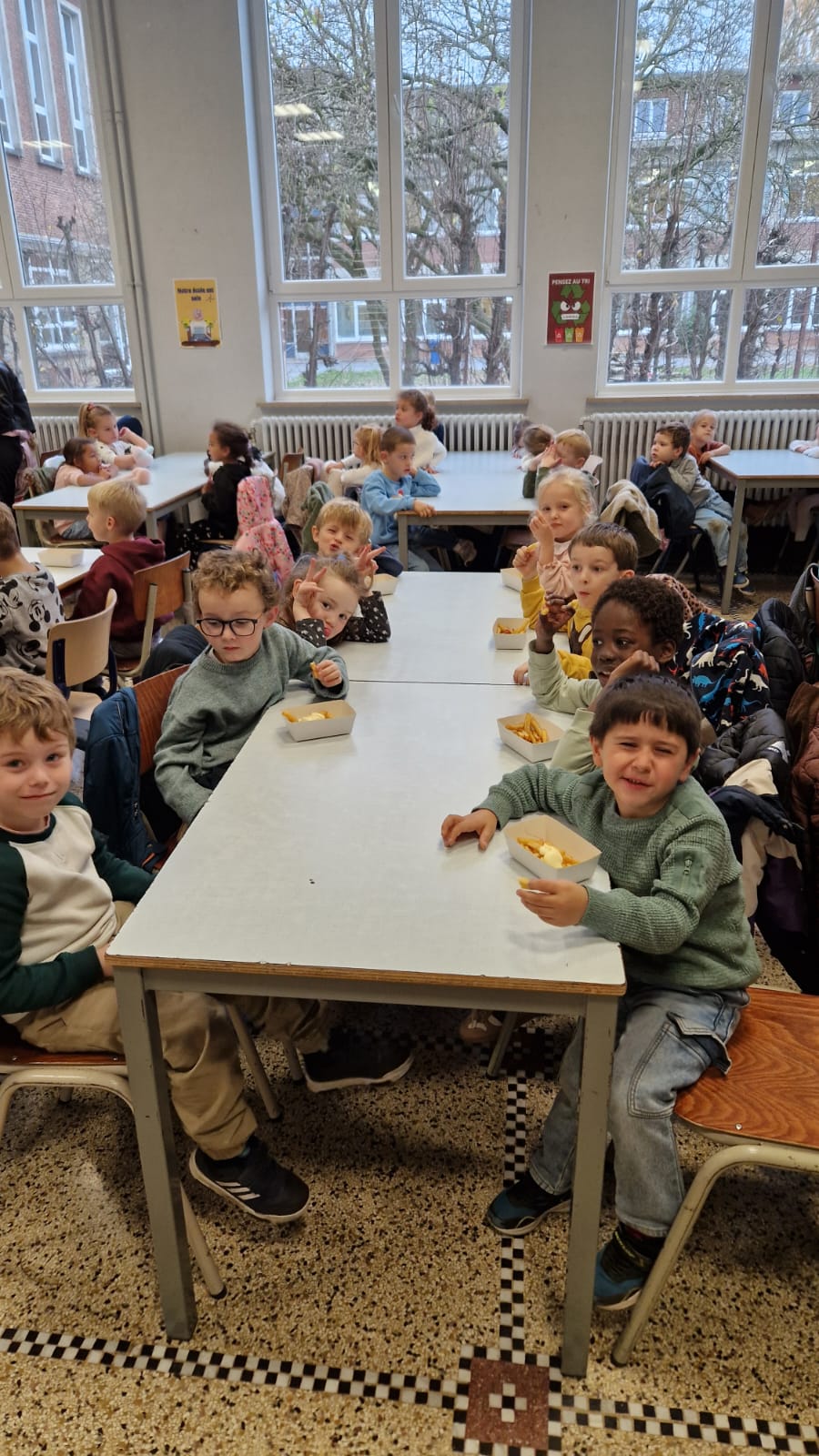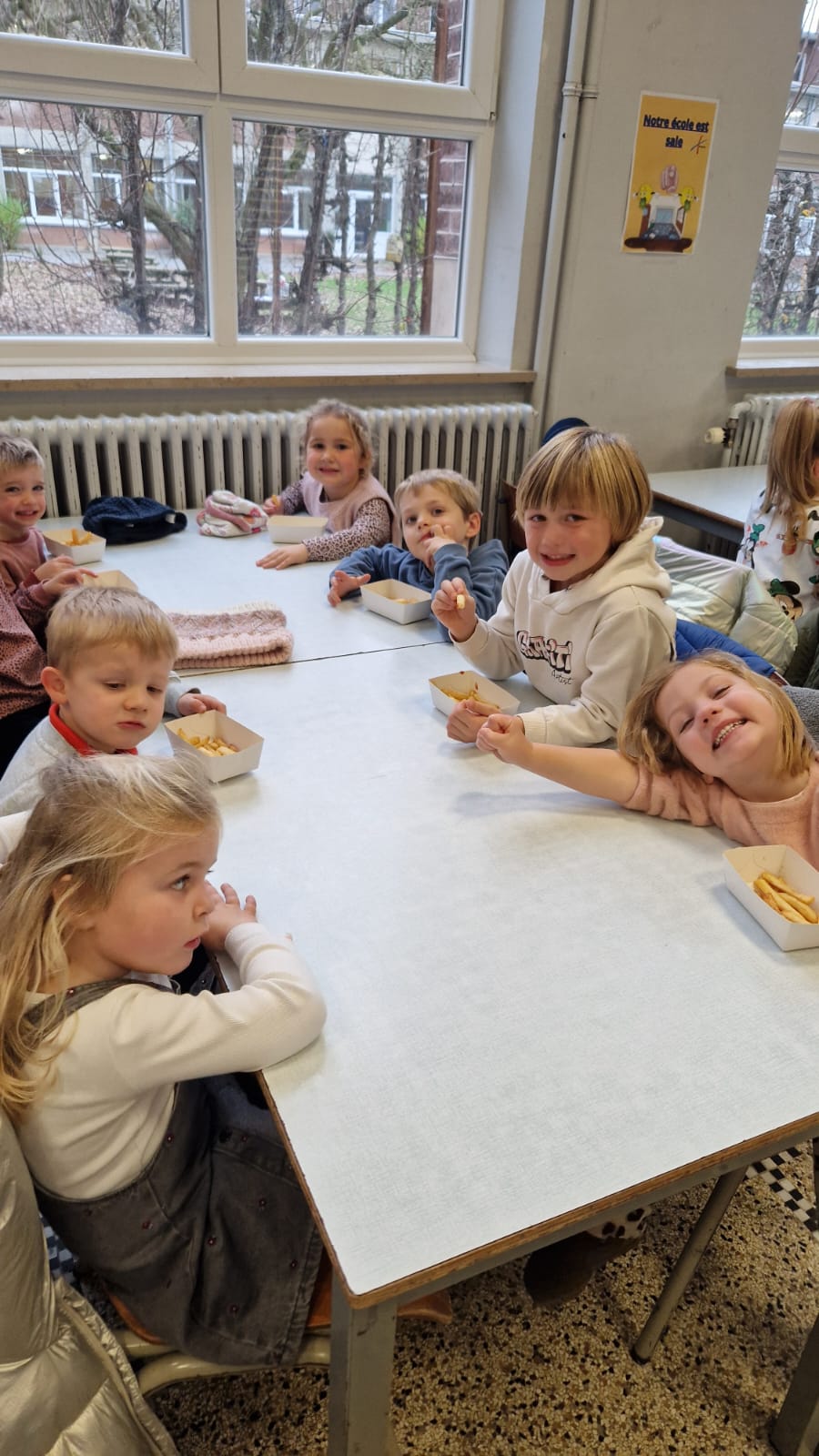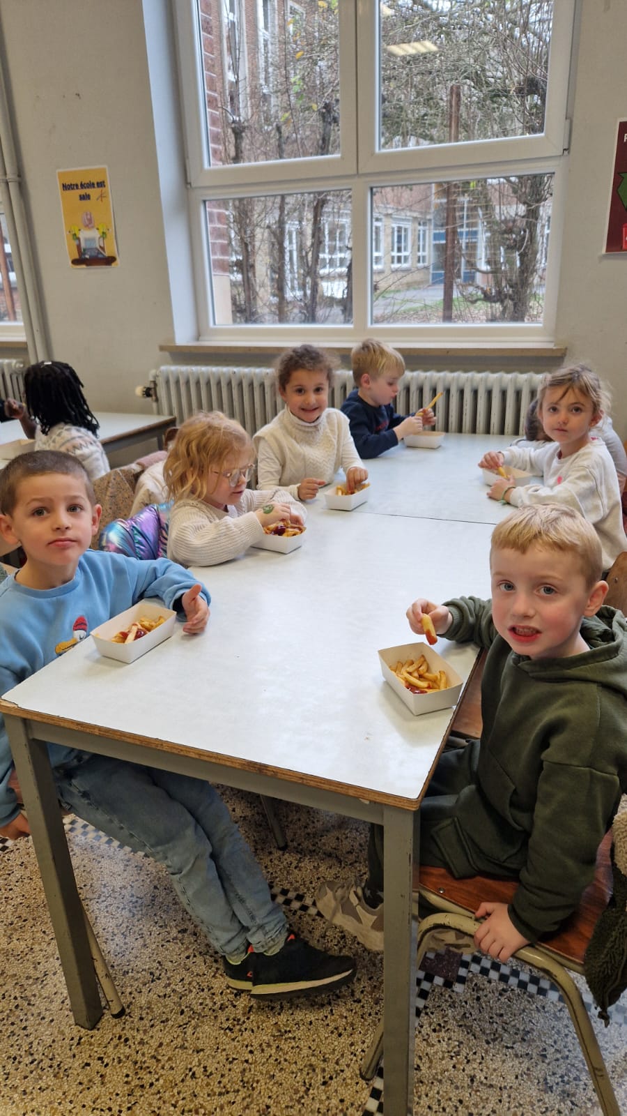 2) pour célébrer la fête de notre roi Philippe, nous nous sommes rendus au collège pour manger un plat typiquement belge...Des frites 1 fois ...!
