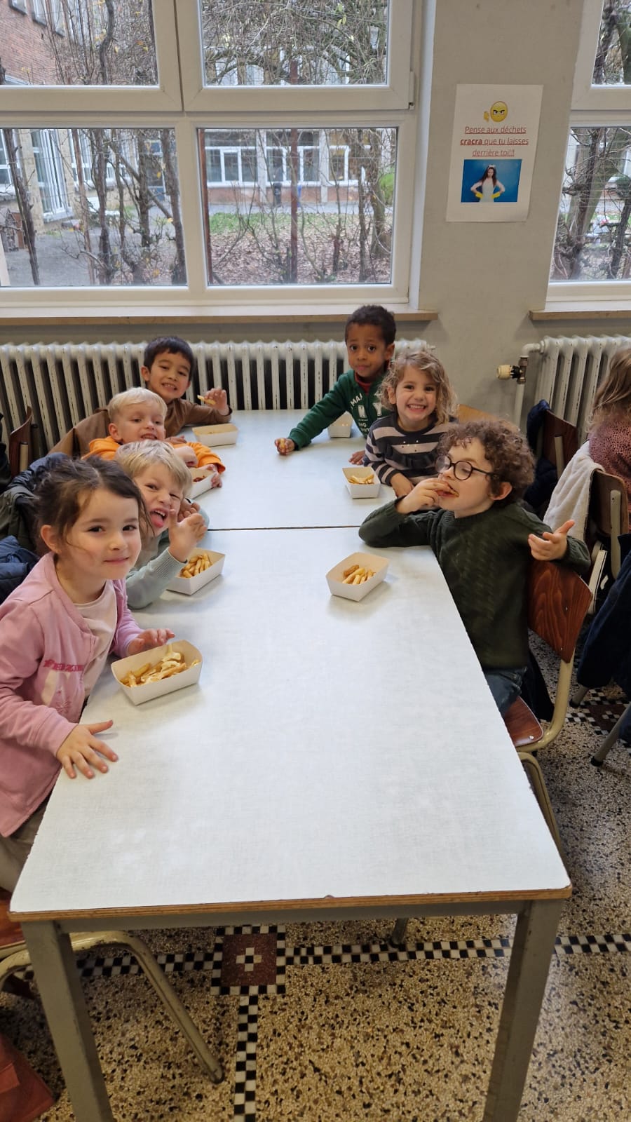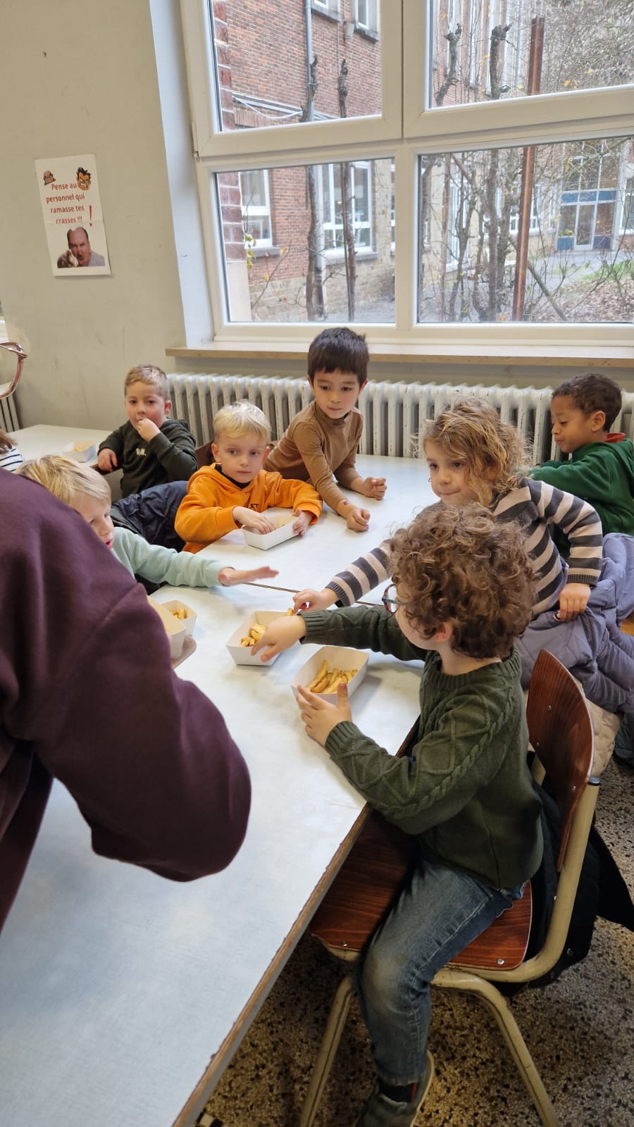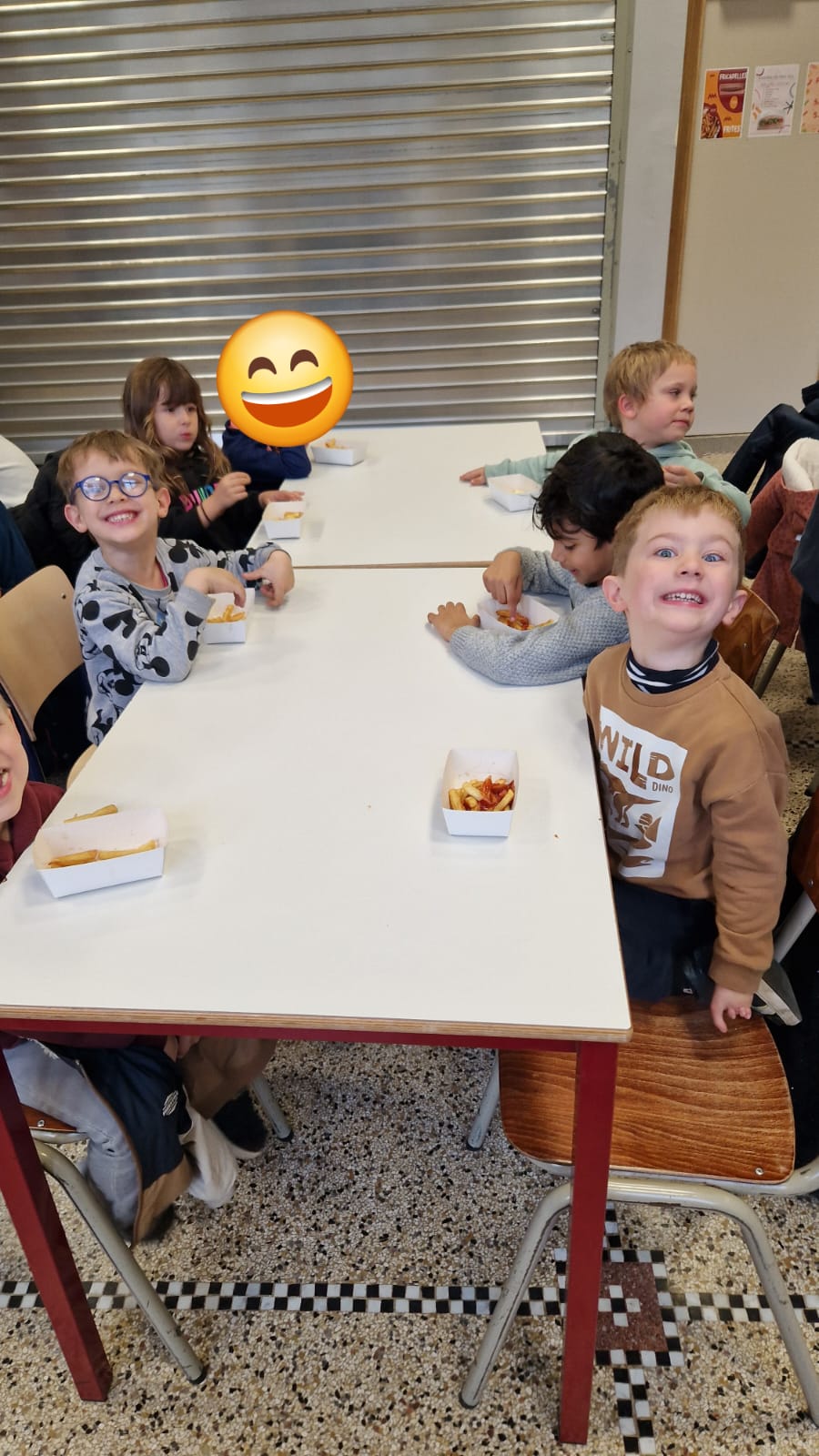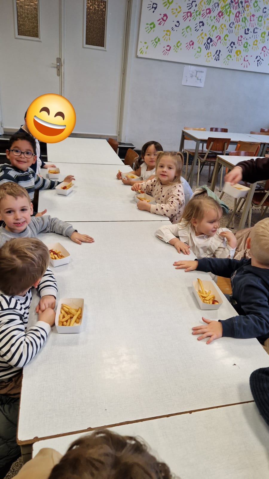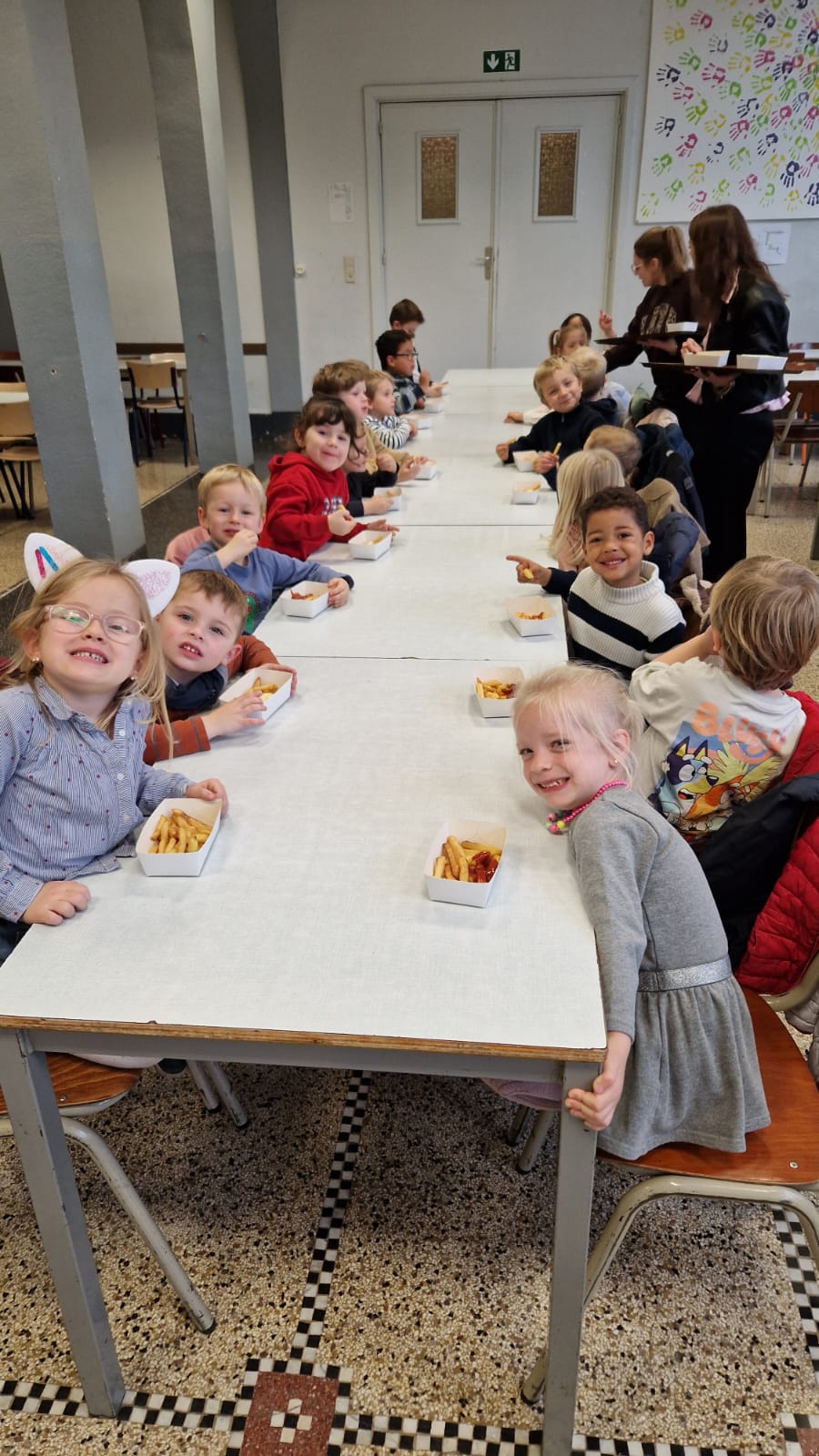 2) pour célébrer la fête de notre roi Philippe, nous nous sommes rendus au collège pour manger un plat typiquement belge...Des frites 1 fois ...!