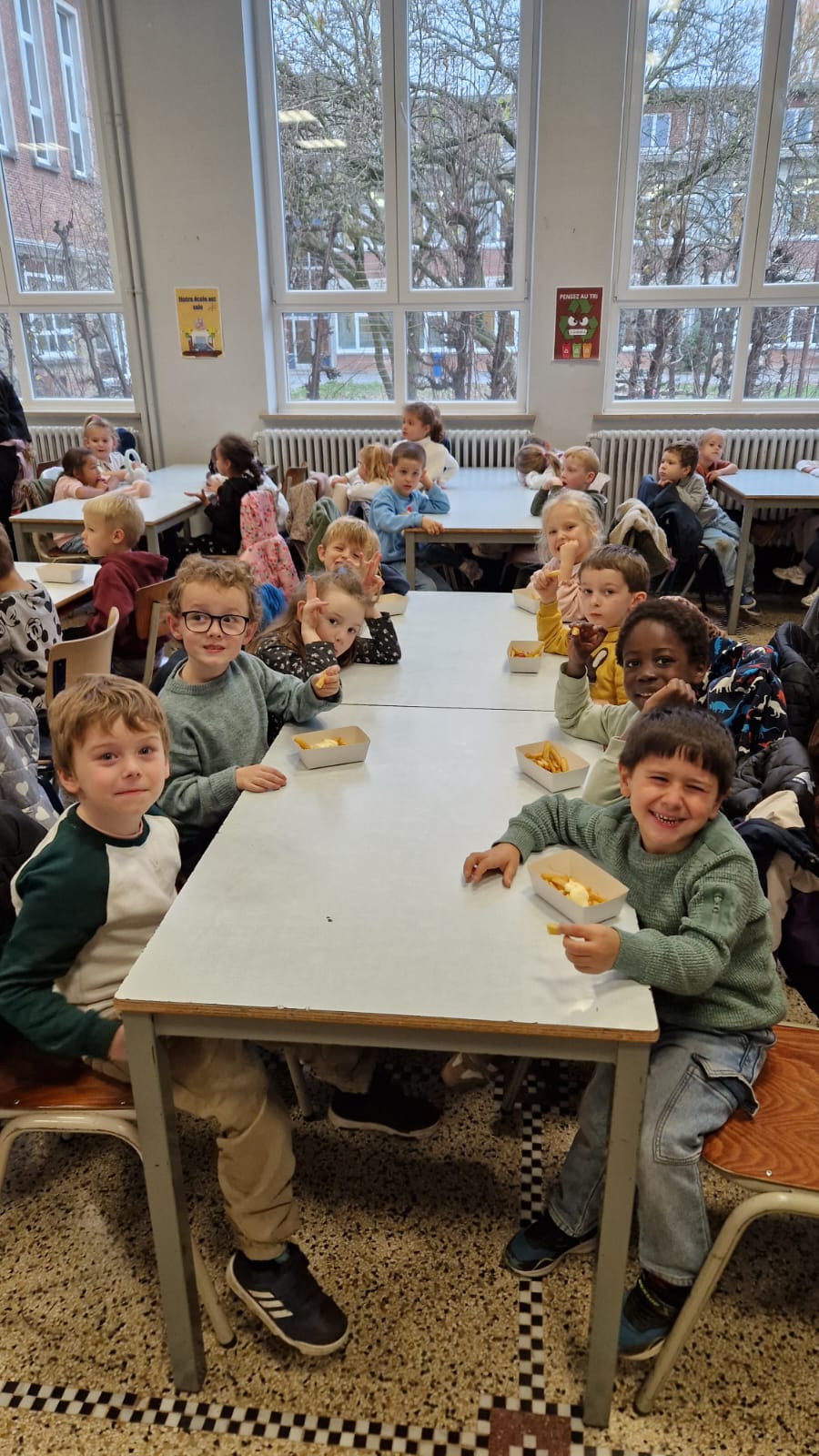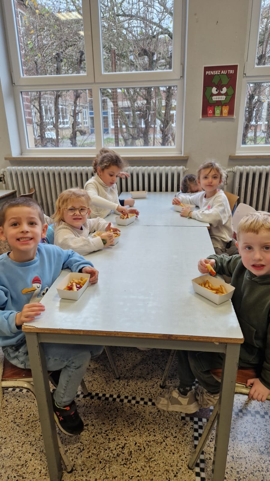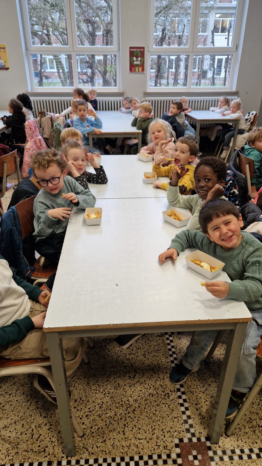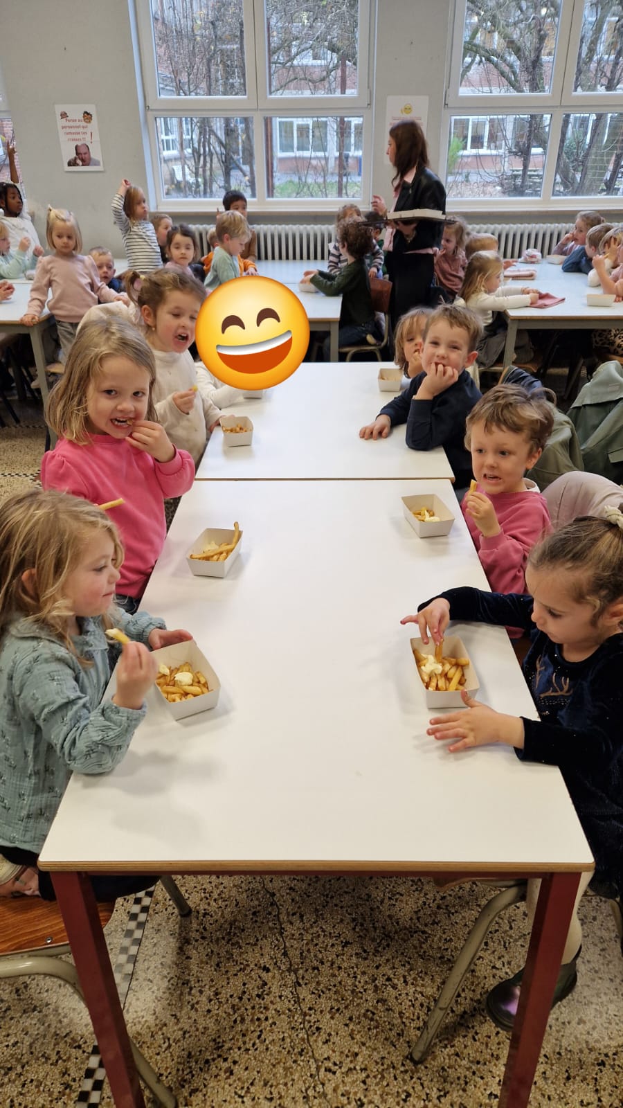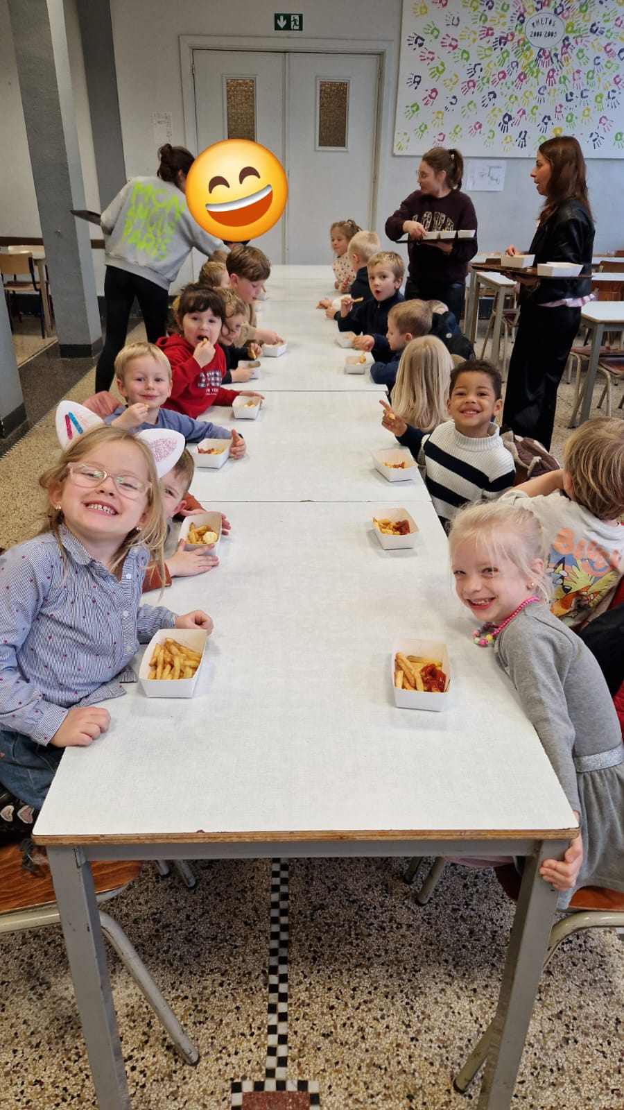 2) pour célébrer la fête de notre roi Philippe, nous nous sommes rendus au collège pour manger un plat typiquement belge...Des frites 1 fois ...!