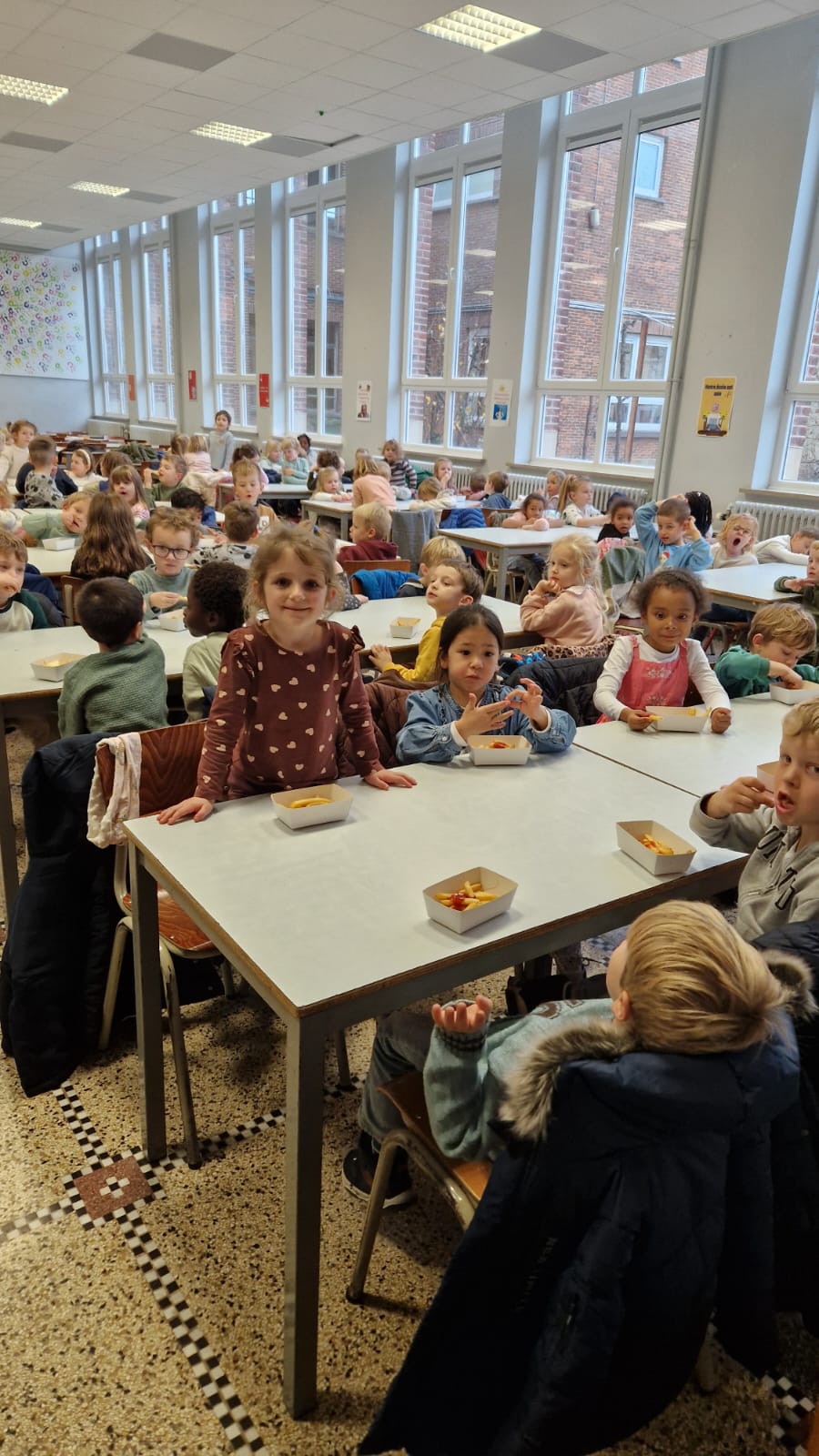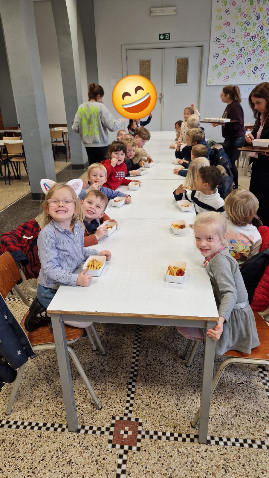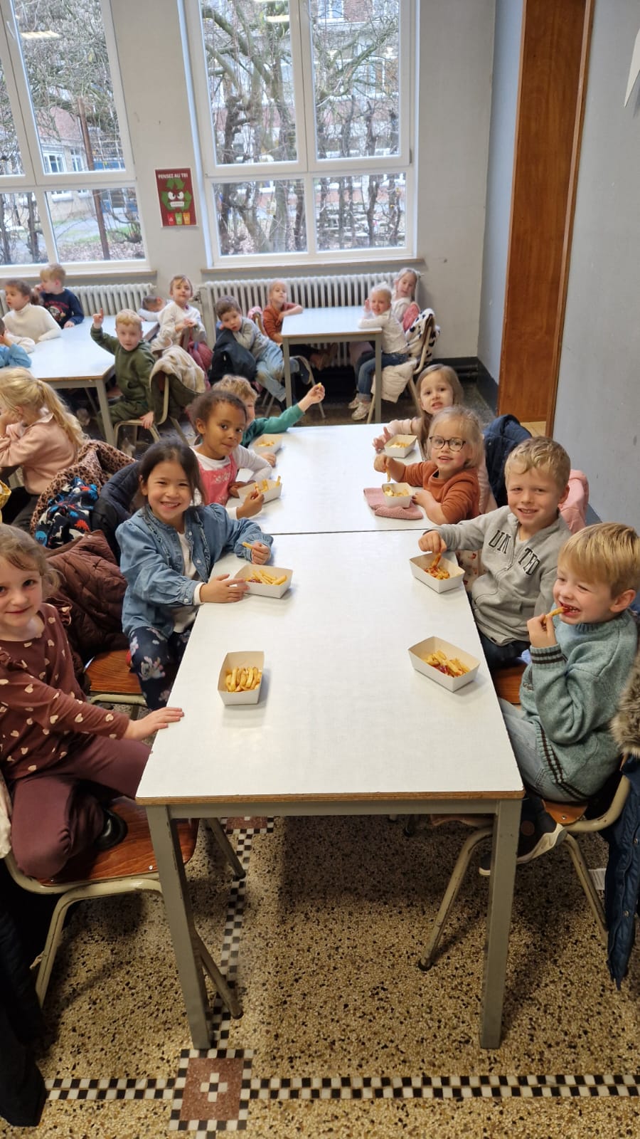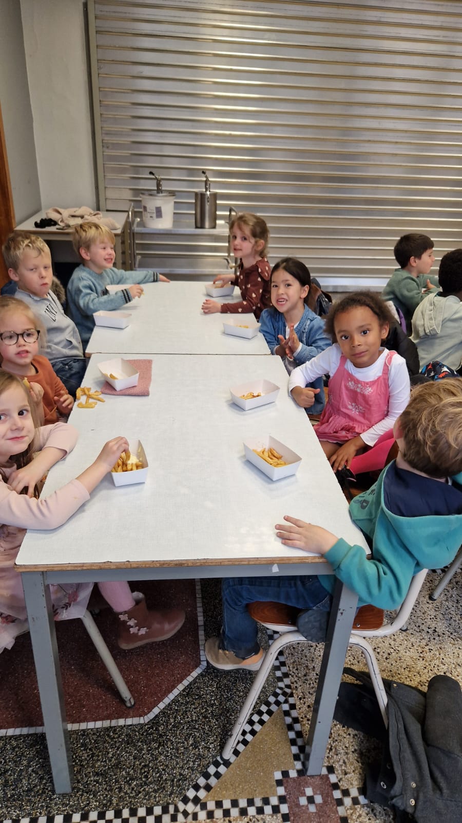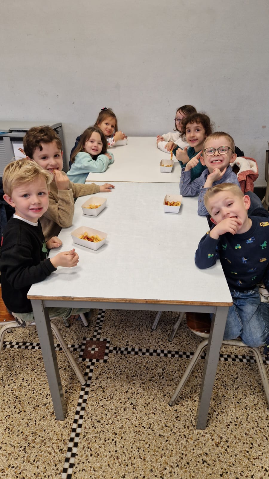 2) pour célébrer la fête de notre roi Philippe, nous nous sommes rendus au collège pour manger un plat typiquement belge...Des frites 1 fois ...!