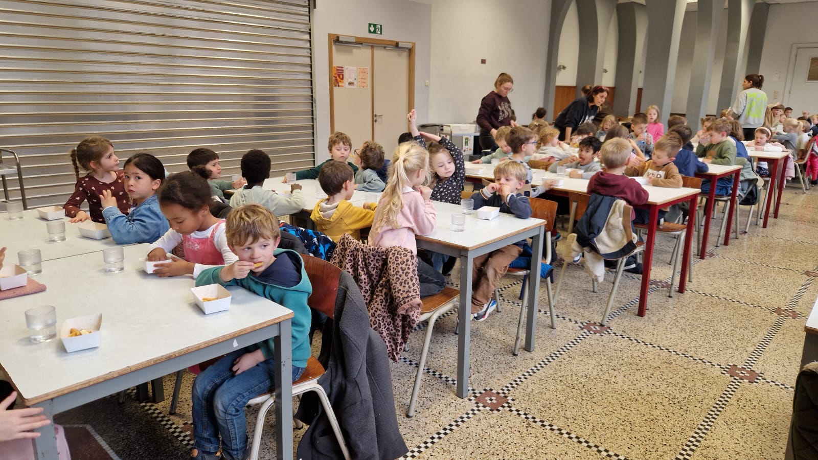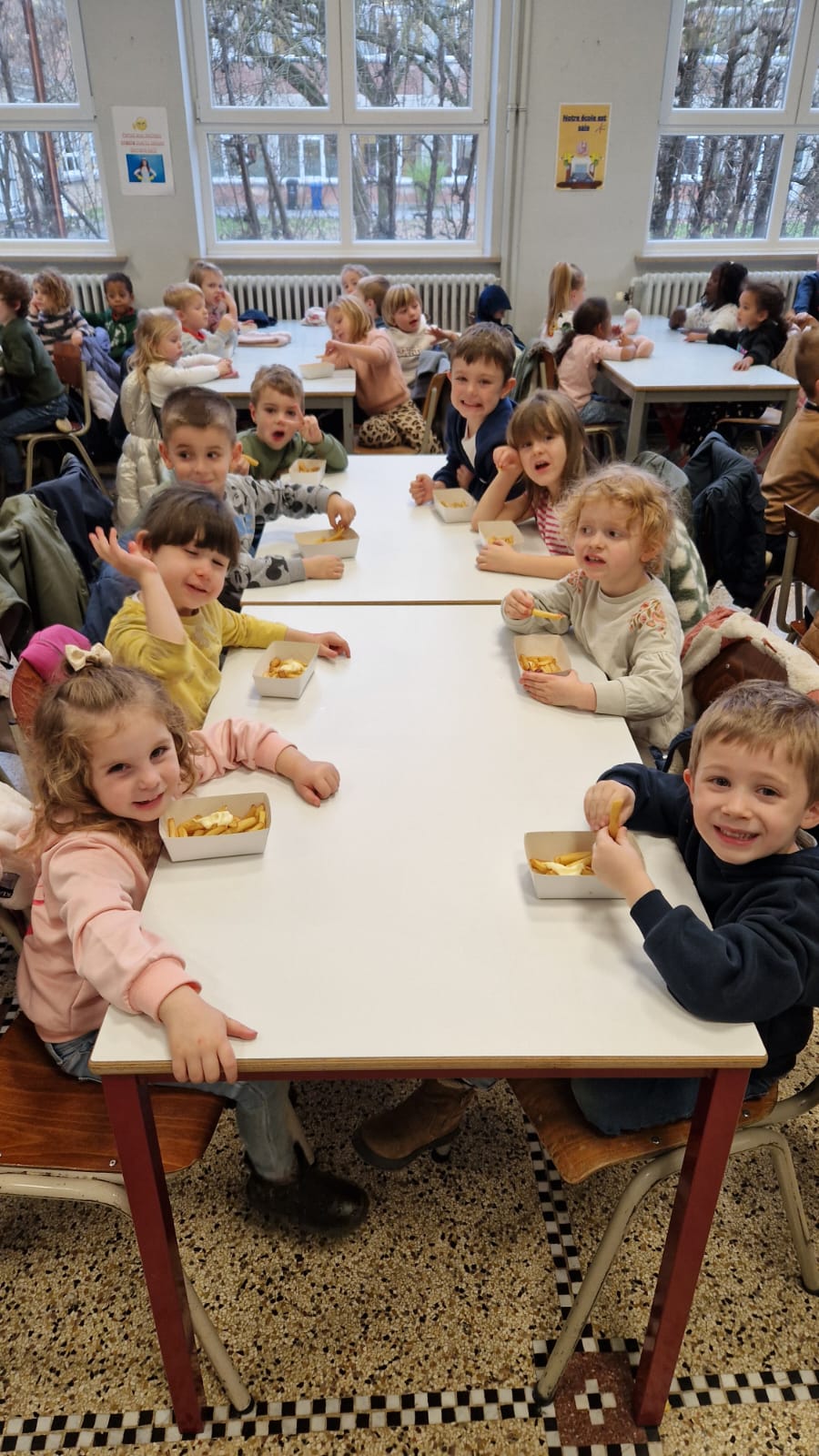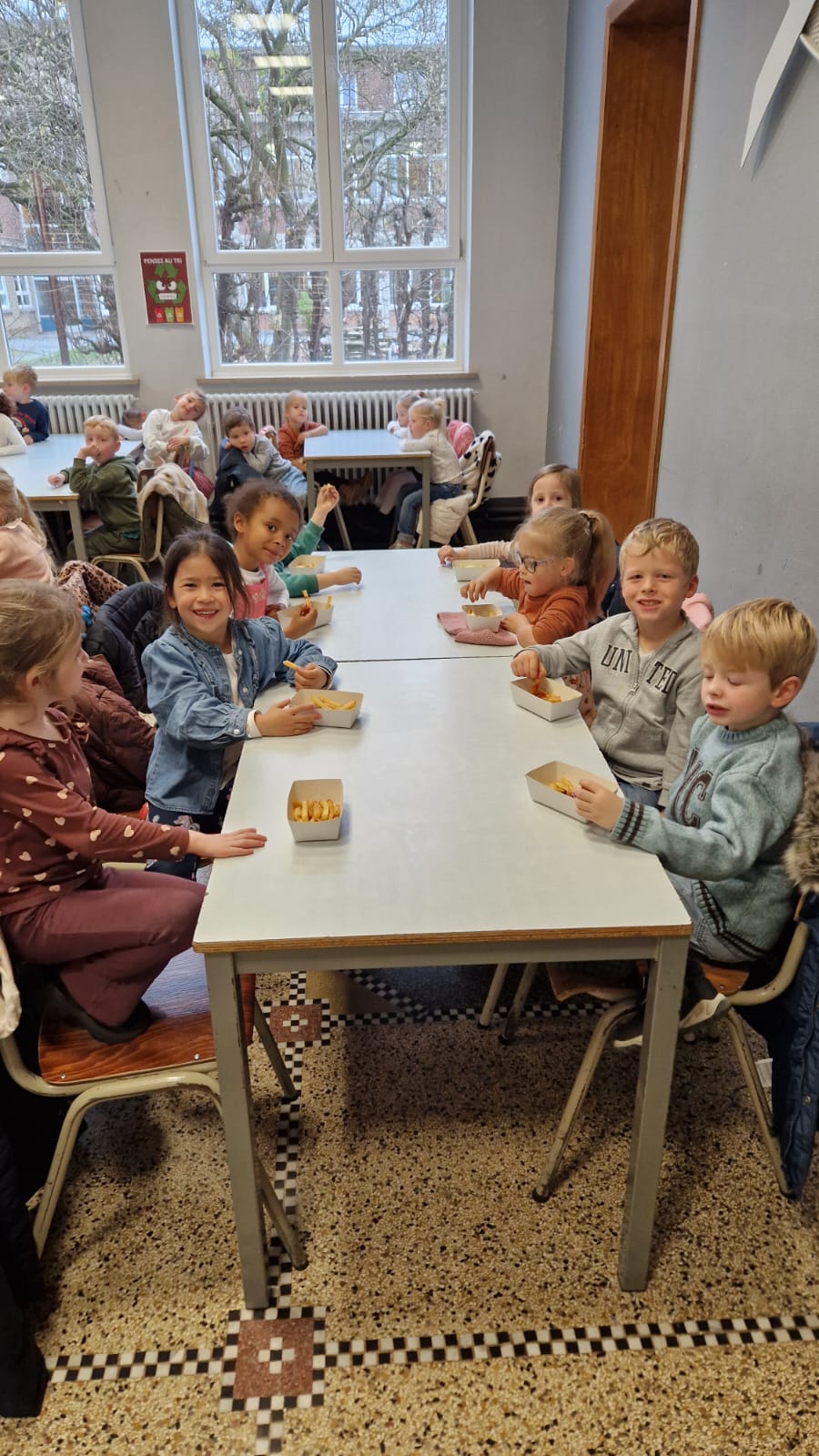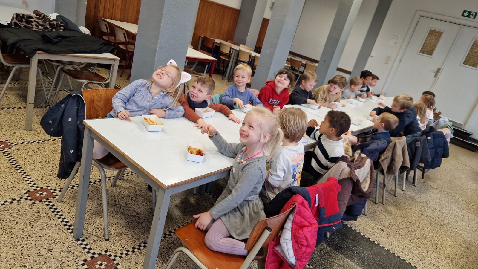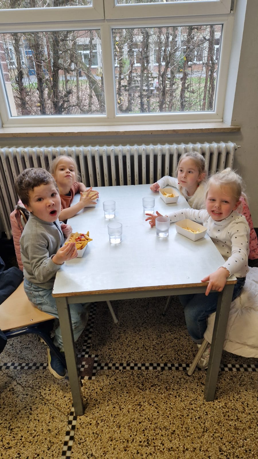 2) pour célébrer la fête de notre roi Philippe, nous nous sommes rendus au collège pour manger un plat typiquement belge...Des frites 1 fois ...!