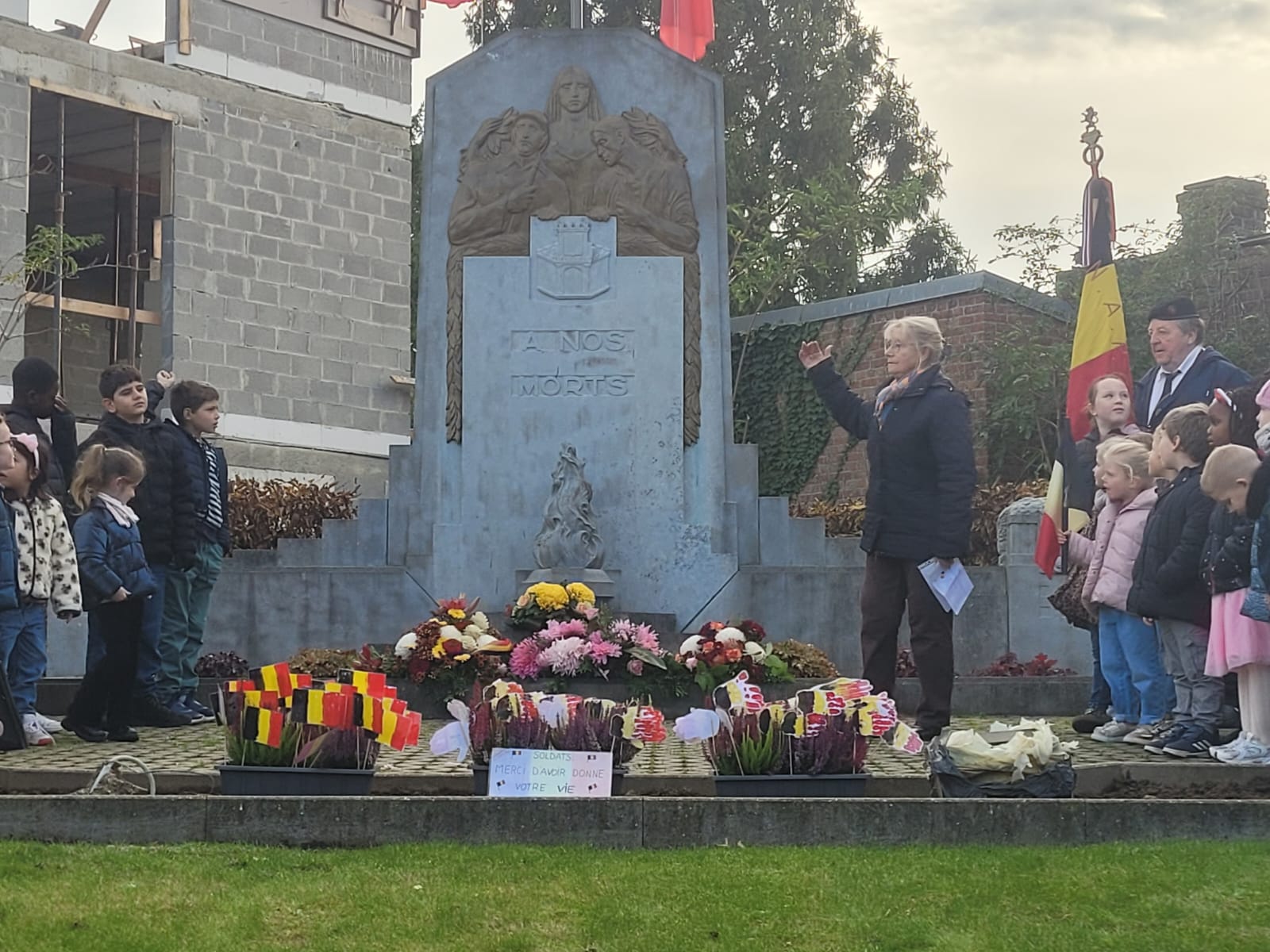 1) A l'occasion de l'armistice, les grands se sont rendus aux monuments du soldat inconnu de Hannut, escortés par les représentants des anciens combattants. Ils ont chanté avec ferveur, la Brabançonne. Moment assez solennel apprécié par les enfants.