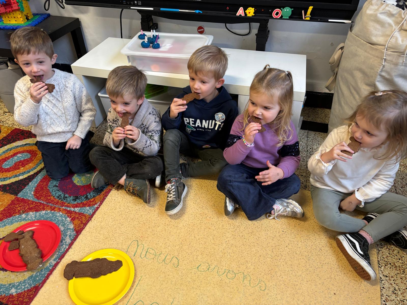 Pour l’anniversaire de Garance , Basile , Harry, Augustin et Léna , nous avons préparé de délicieux spéculoos