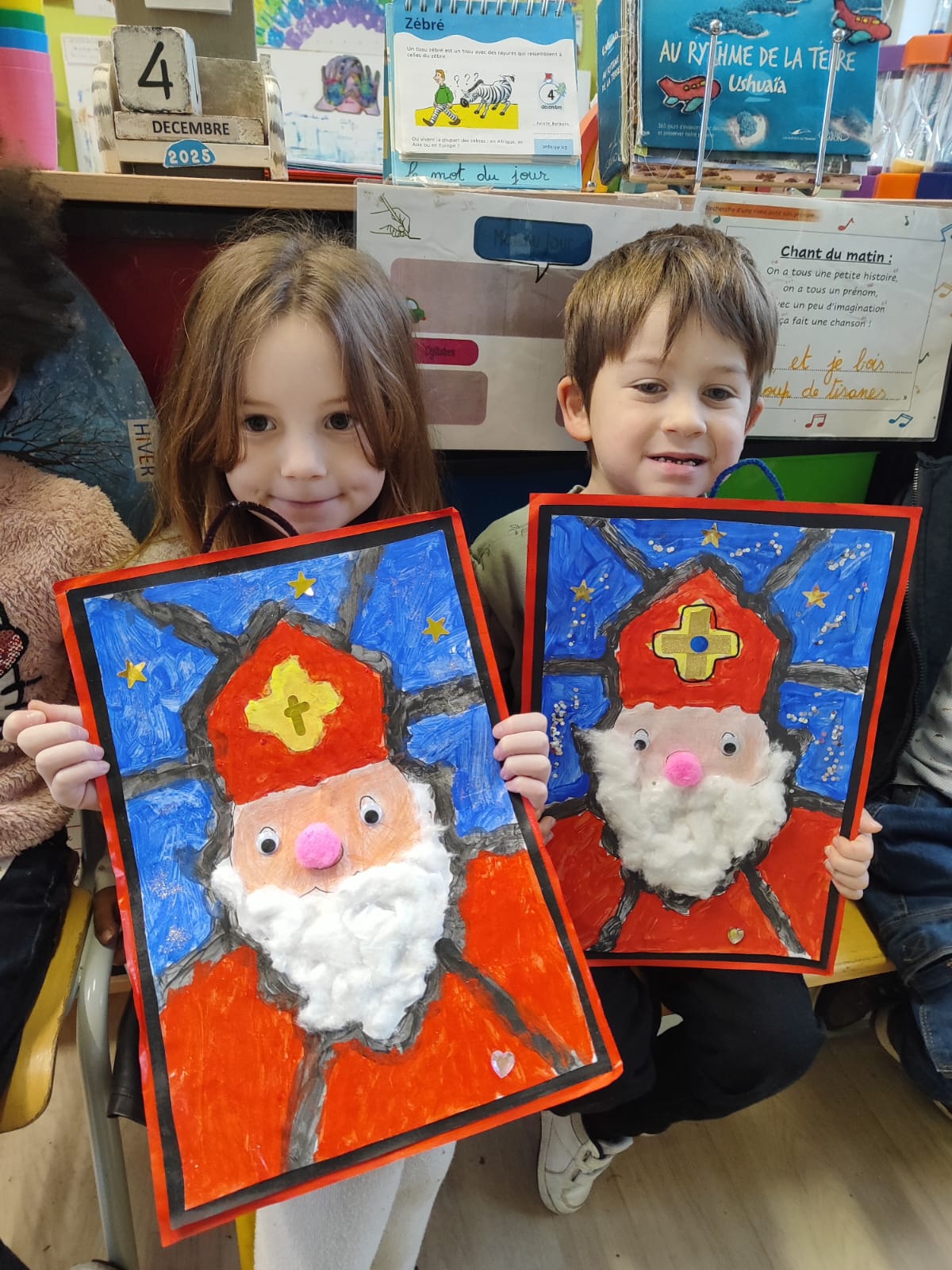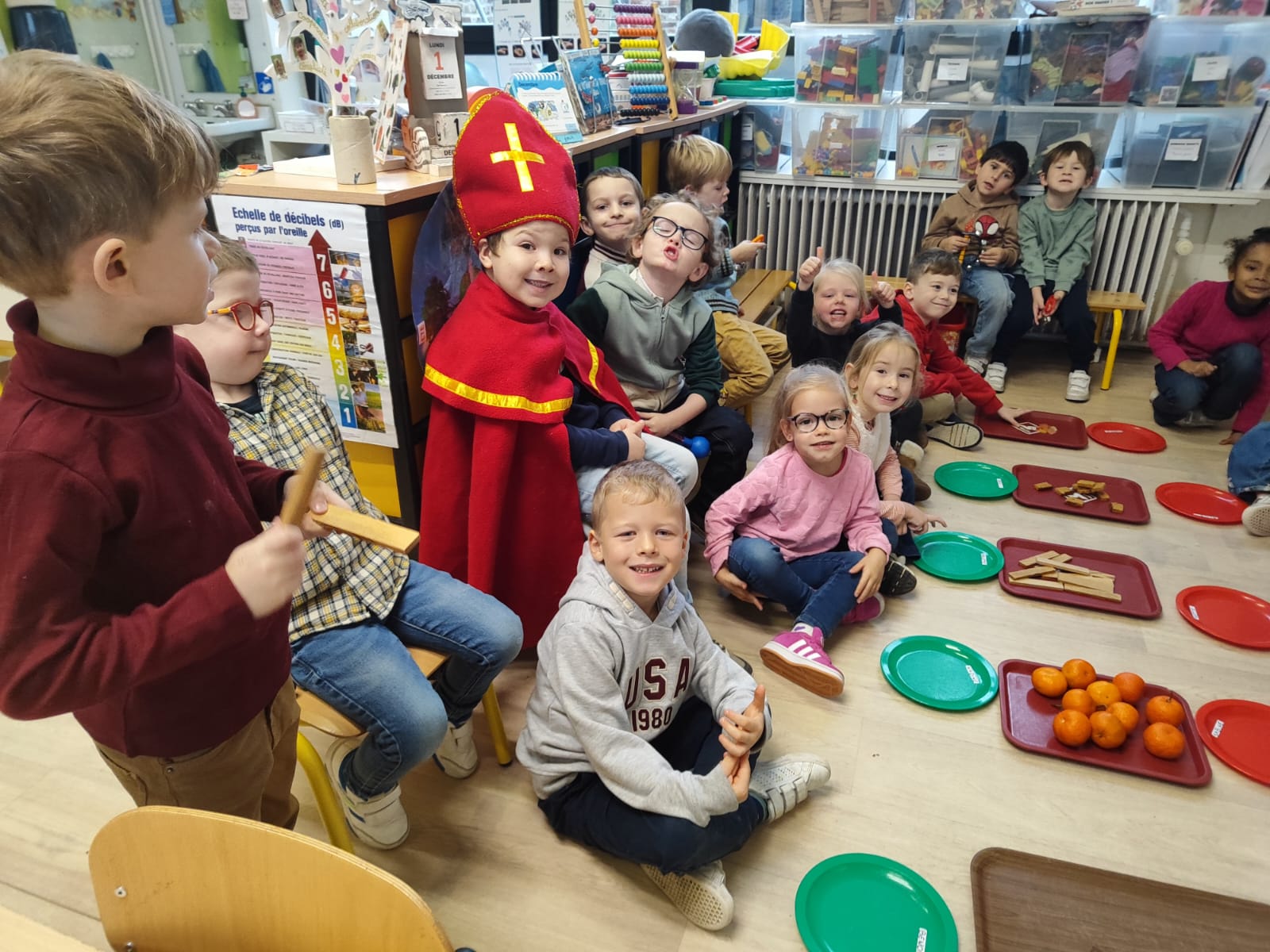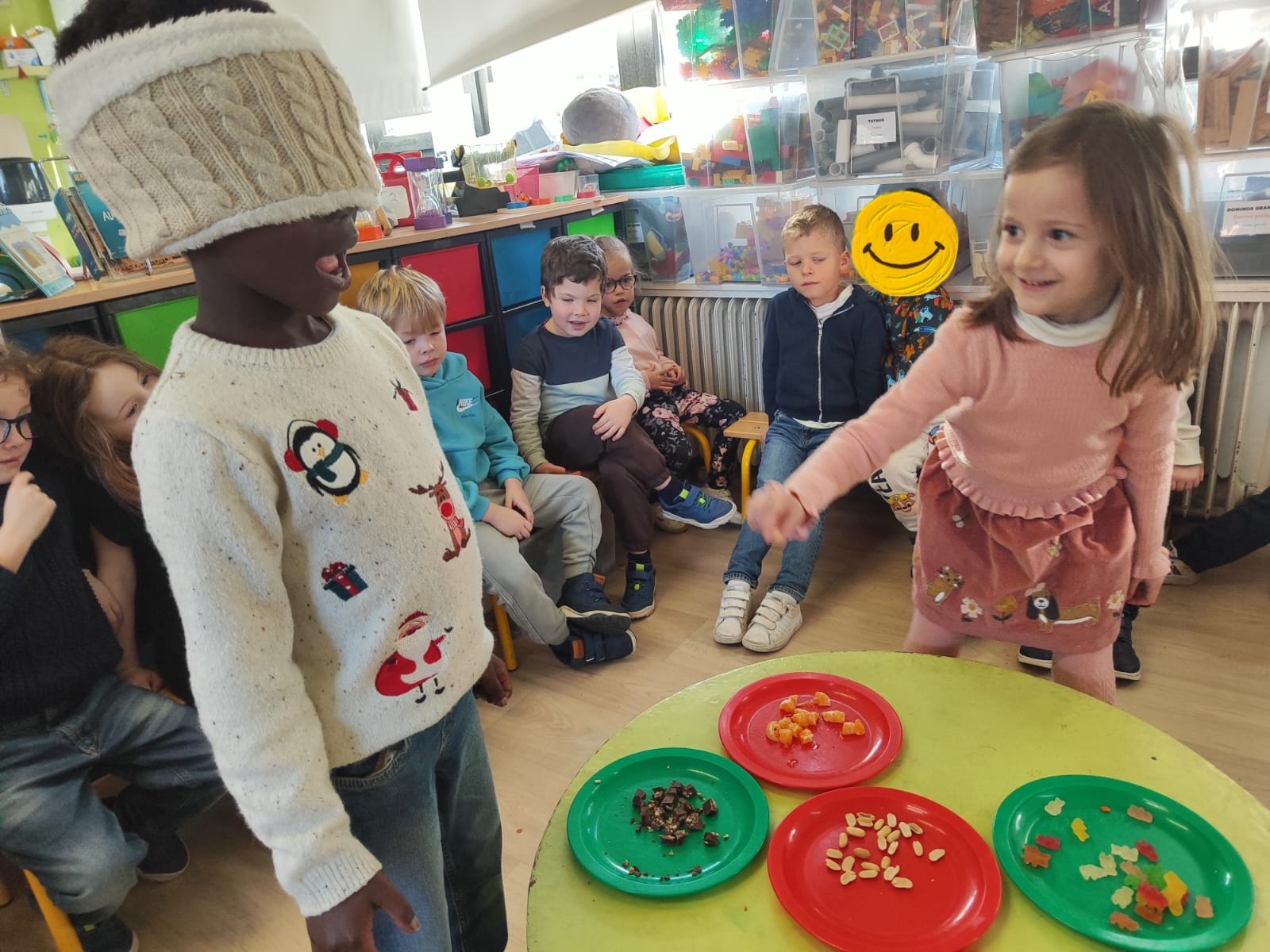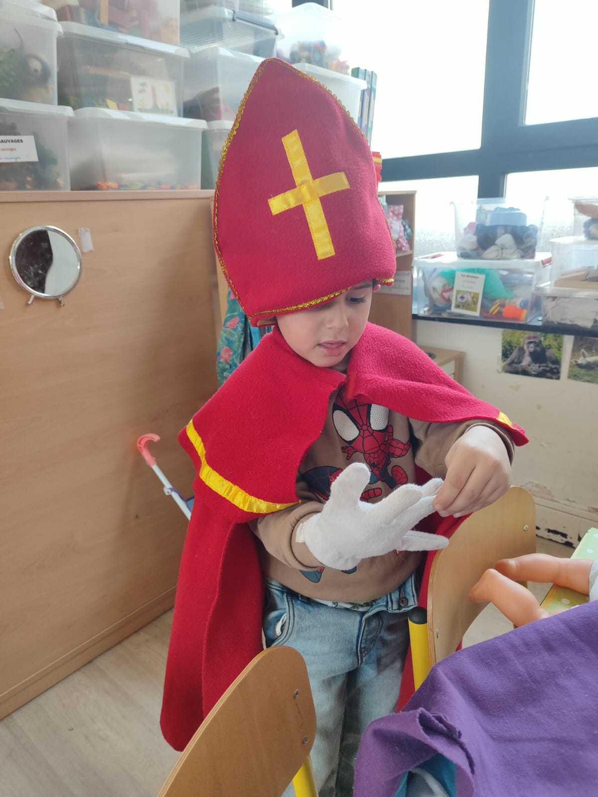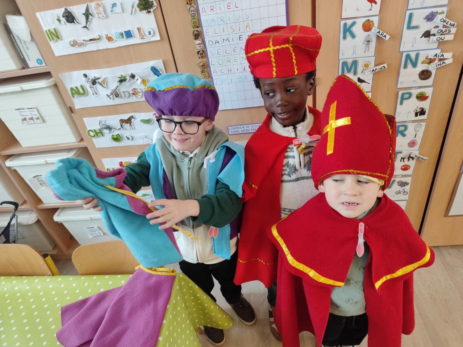 Nous répétons notre chanson en l'honneur de St Nicolas. Nous avons bcp de plaisir à la chanter et en même temps, nous travaillons notre mémoire, nous faisons du rythme, du Français avec les rimes et des mathématiques : décomposition du nbre 10.
