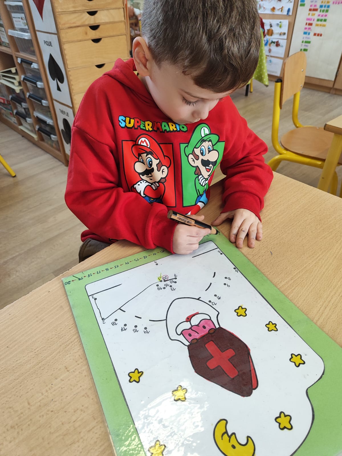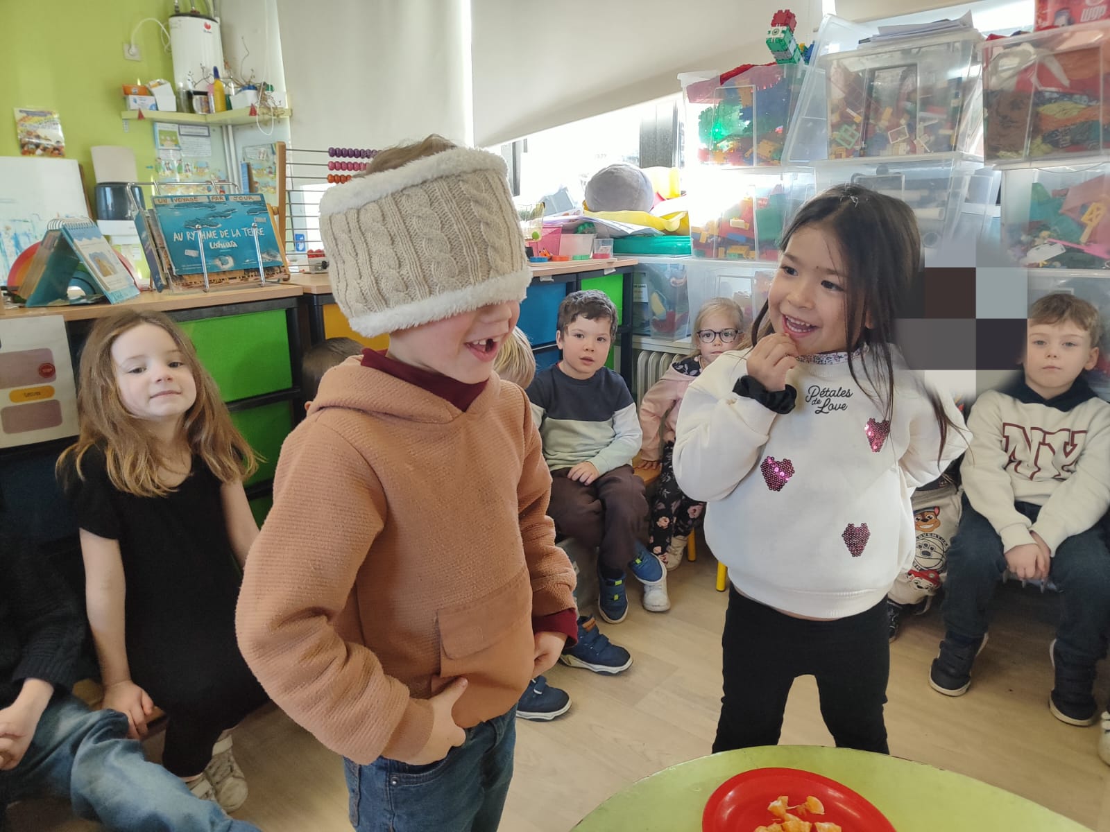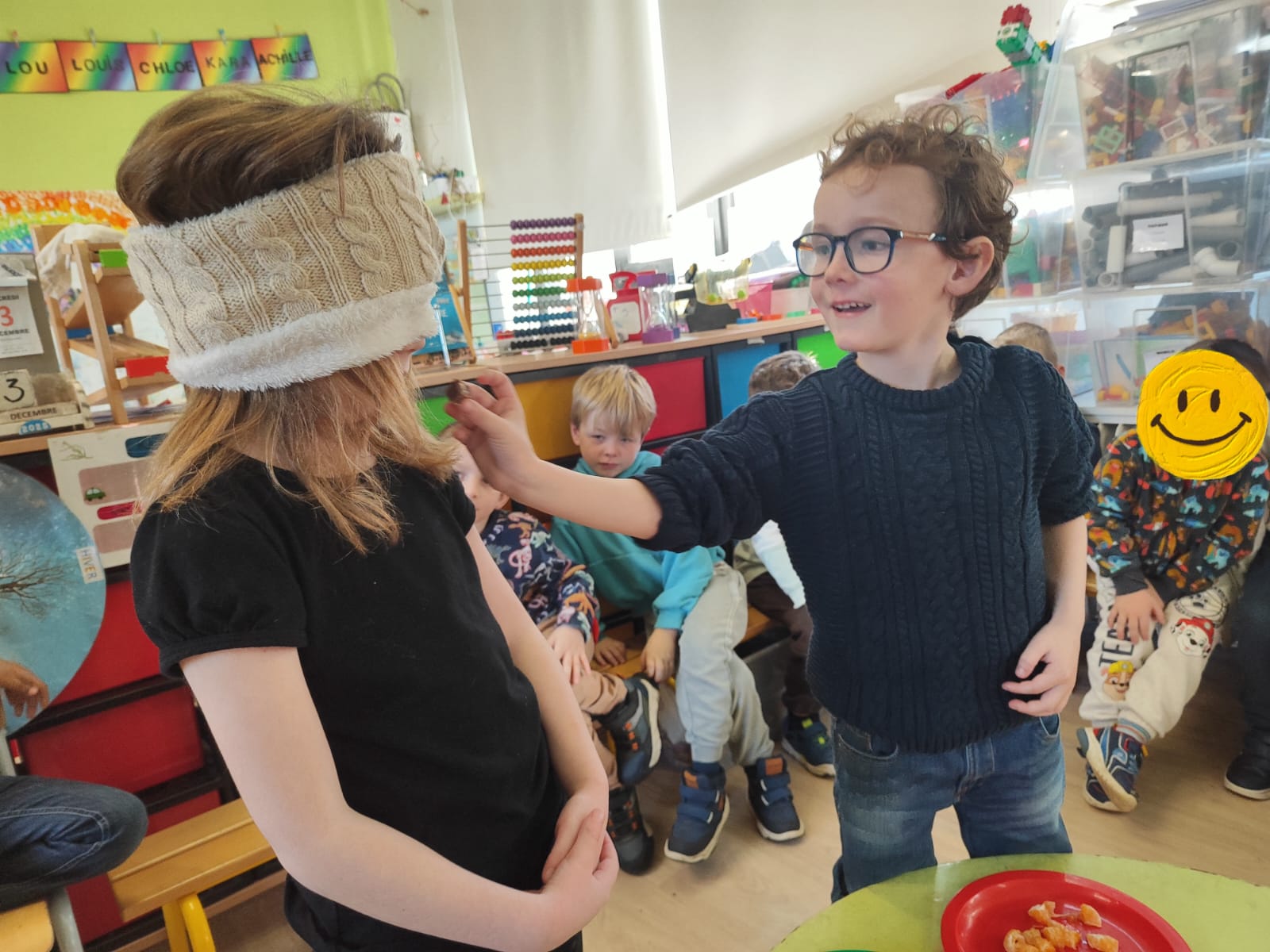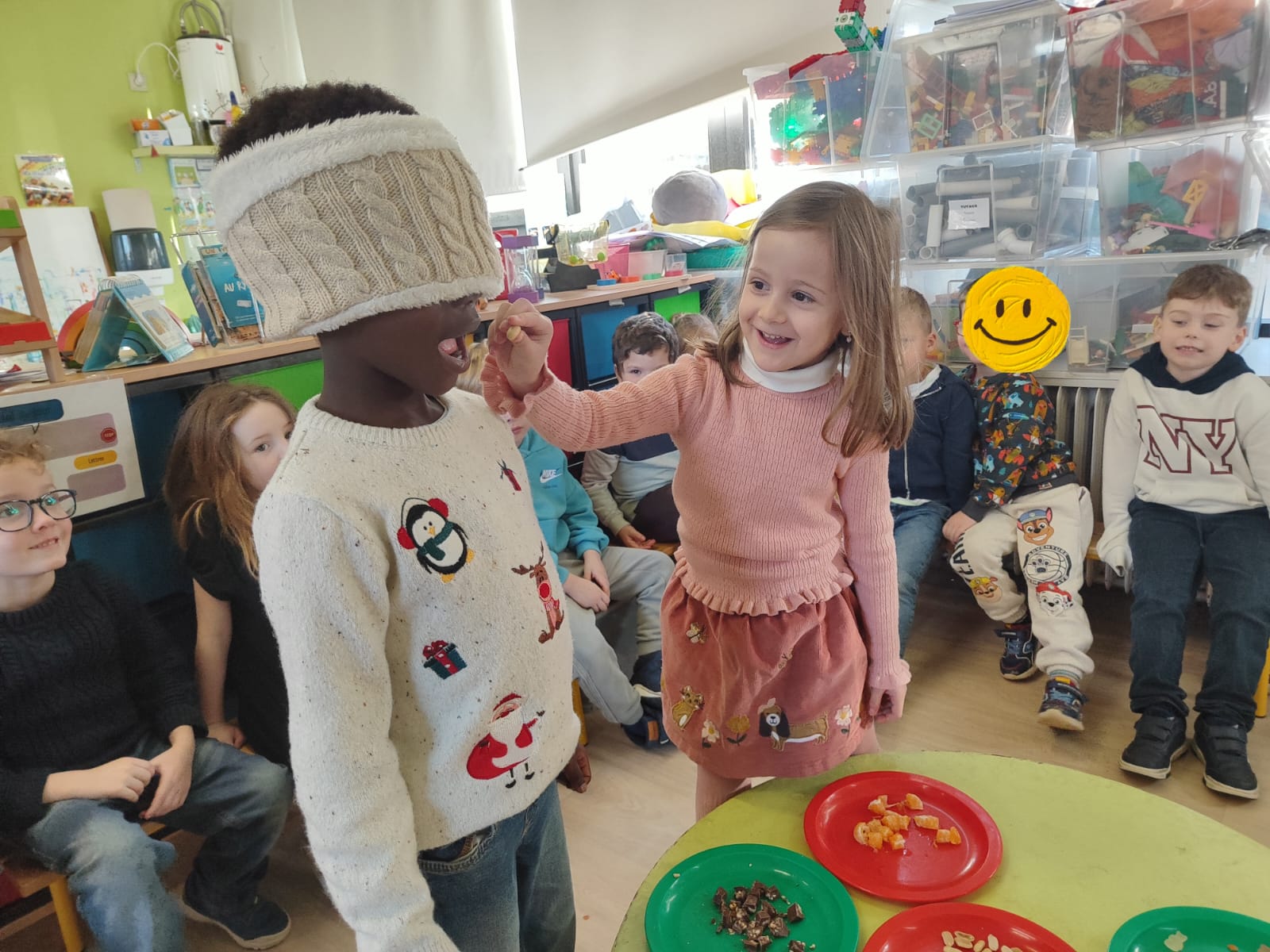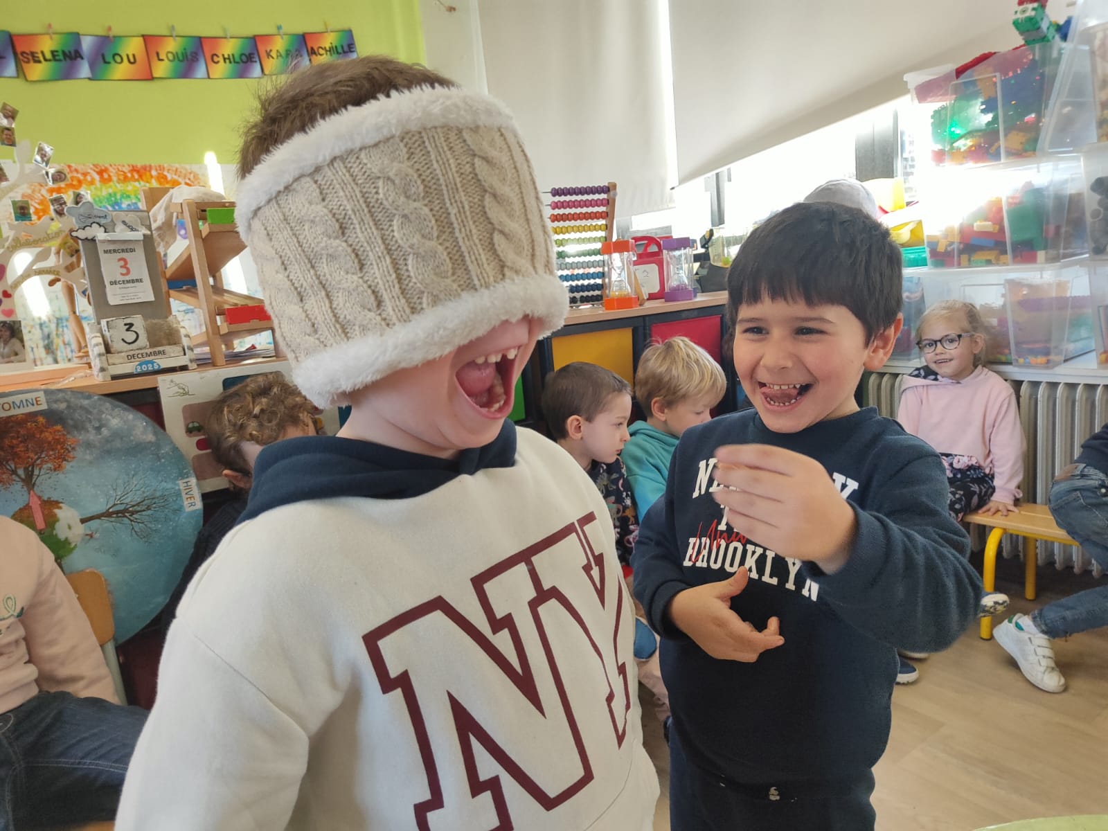 Nous répétons notre chanson en l'honneur de St Nicolas. Nous avons bcp de plaisir à la chanter et en même temps, nous travaillons notre mémoire, nous faisons du rythme, du Français avec les rimes et des mathématiques : décomposition du nbre 10.