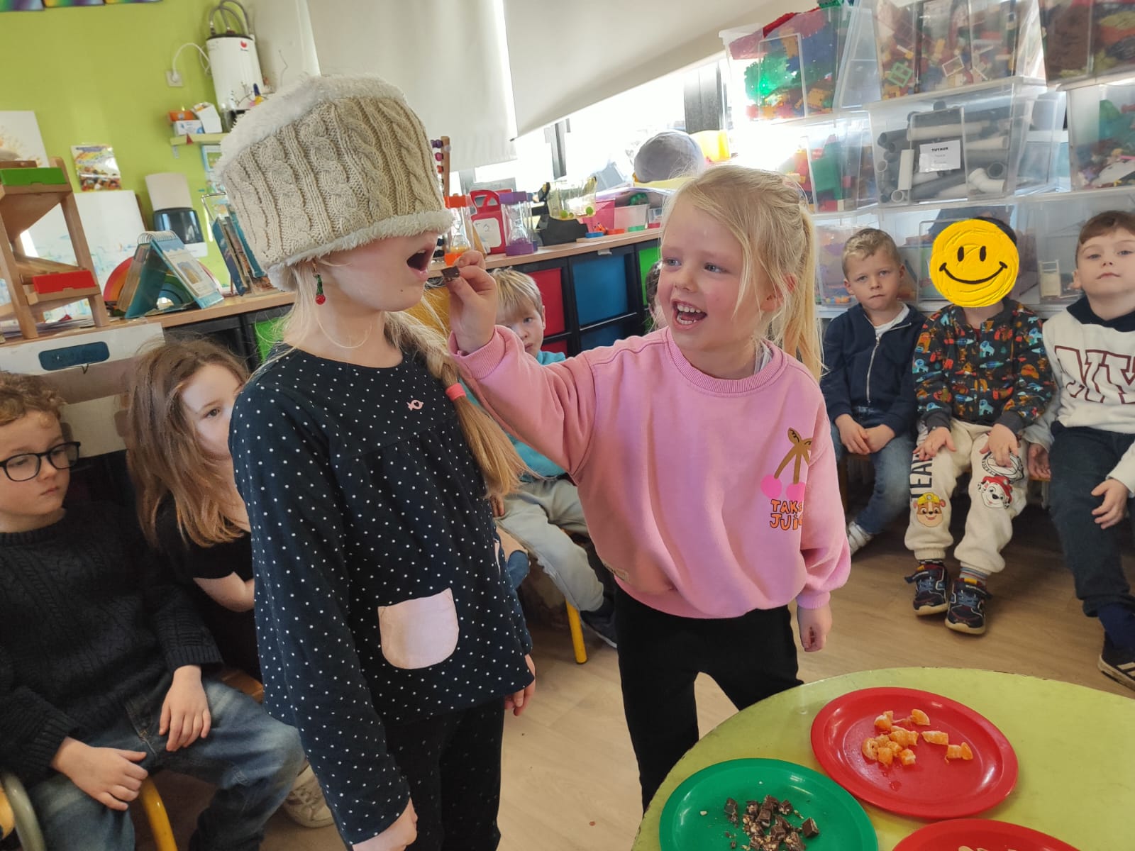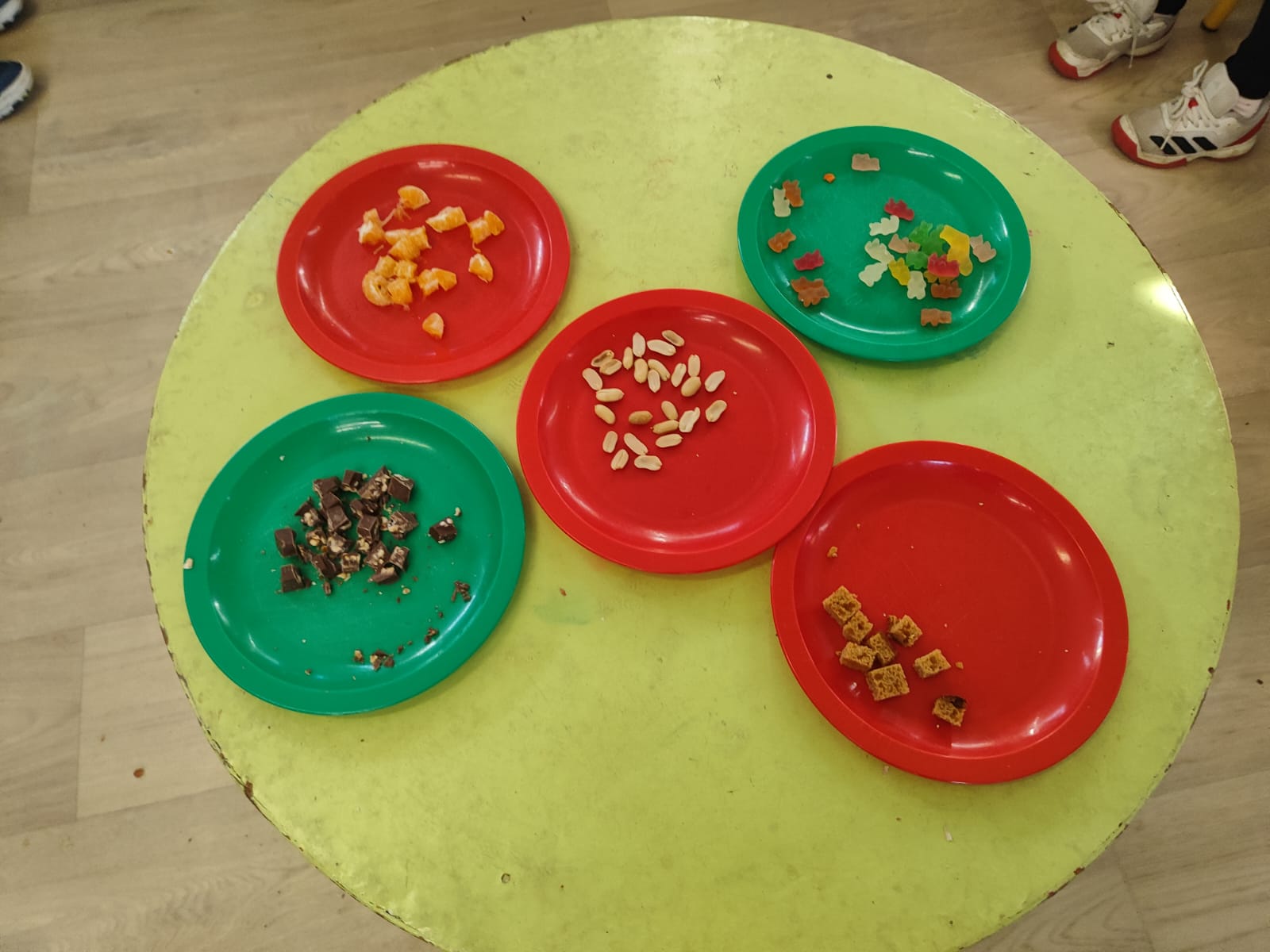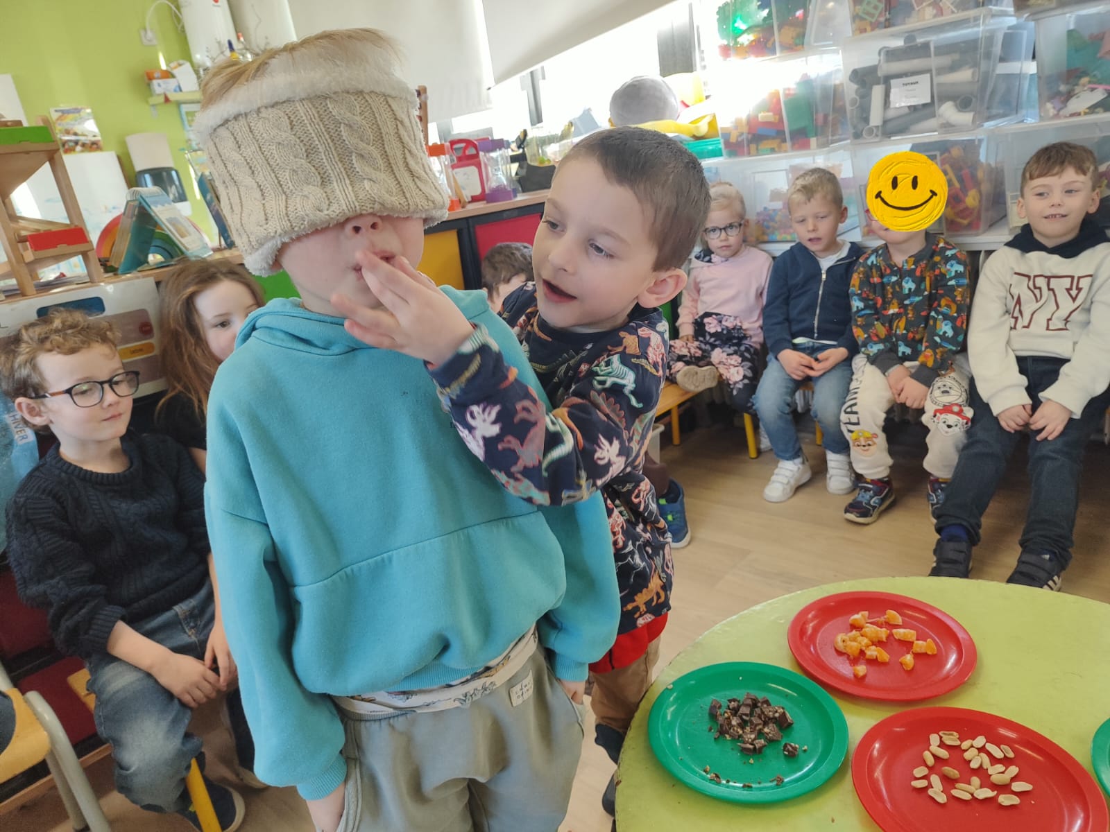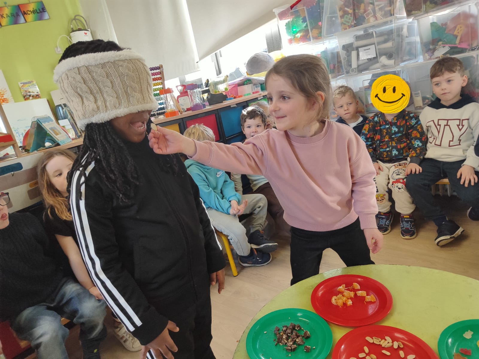 Nous testons à l'aveugle, les ingrédients cités dans la chanson et essayons de les reconnaître. (jeu du Kim goût)