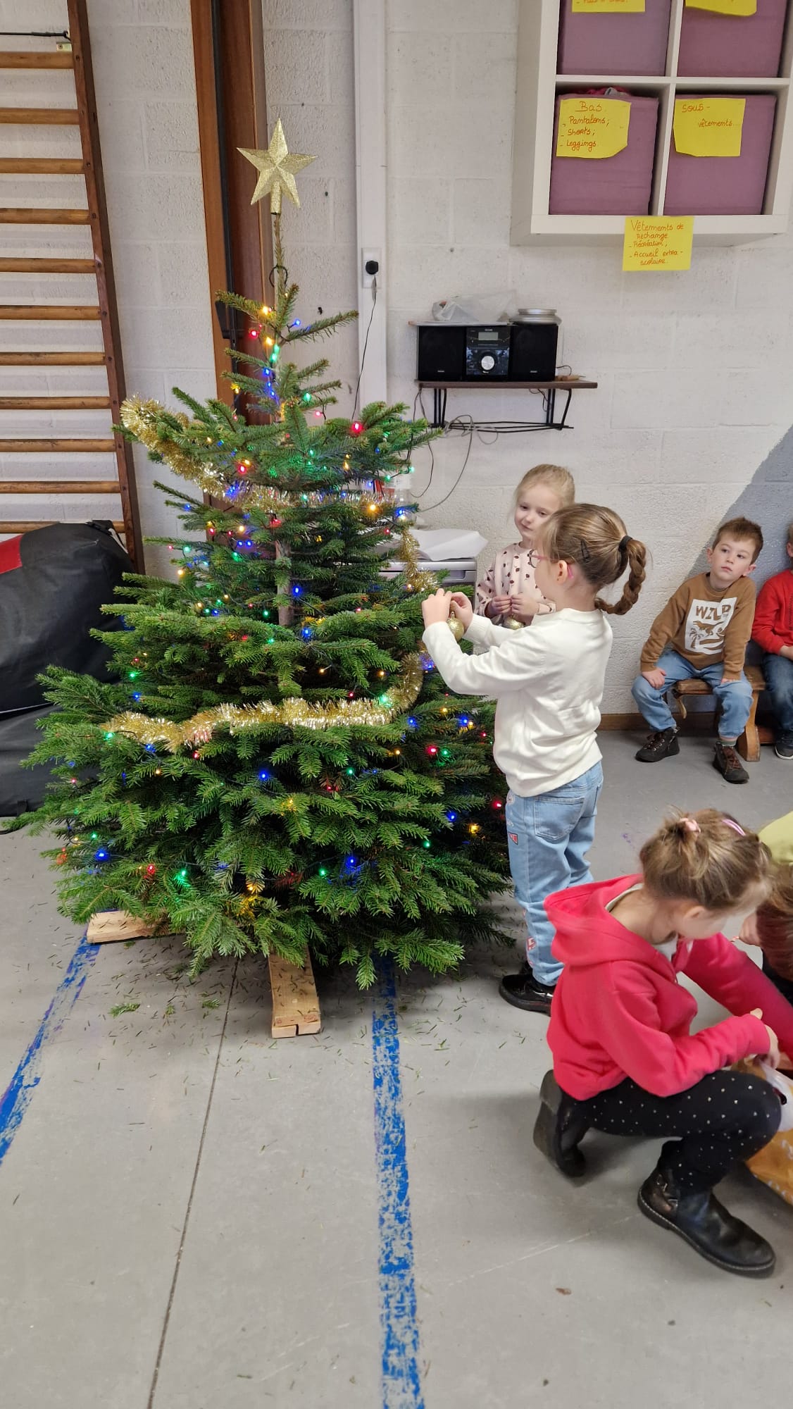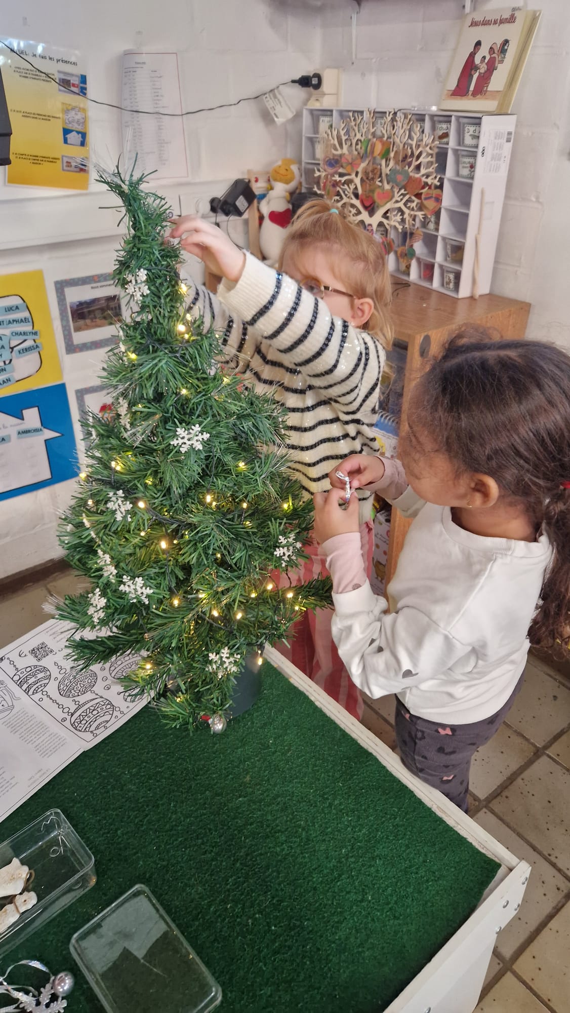 Noël approche à grands pas... décoration de notre classe et du sapin de la salle de psychomotricité