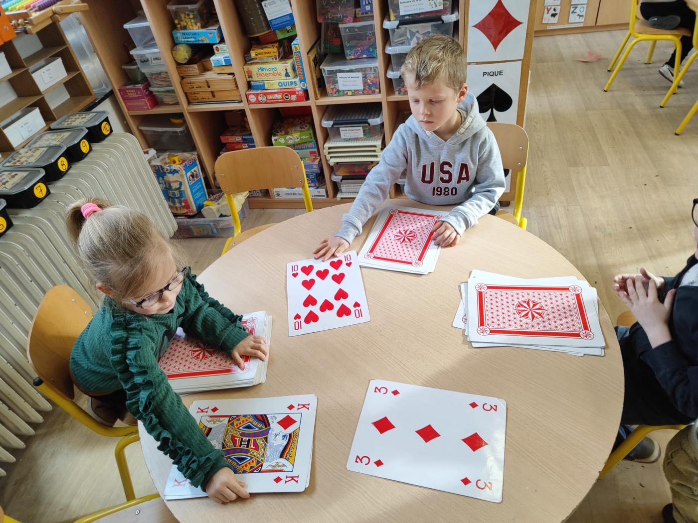Apprentissage de différents jeux avec les cartes :