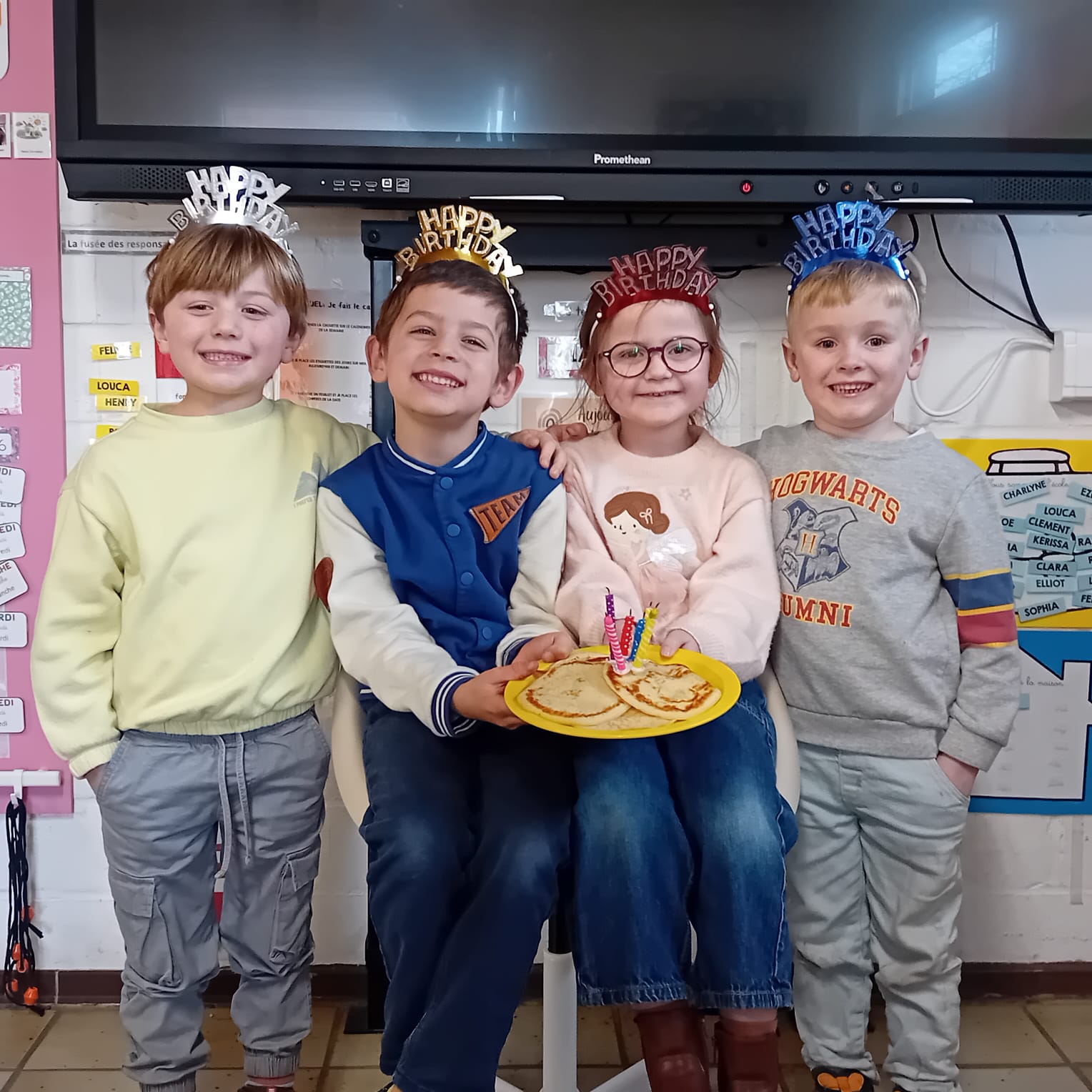 Ce lundi 2 février nous avons fait des crêpes pour la chandeleur et nous en avons profité pour fêter les anniversaires du mois de janvier. Joyeux anniversaire Clément, Henry, Sophia et Liam