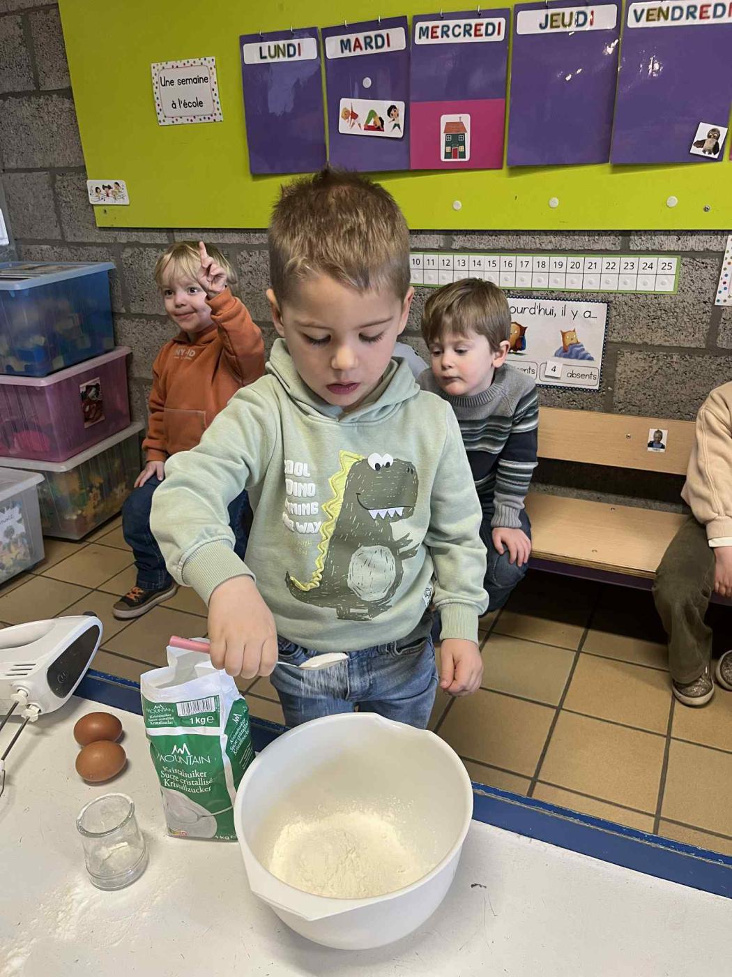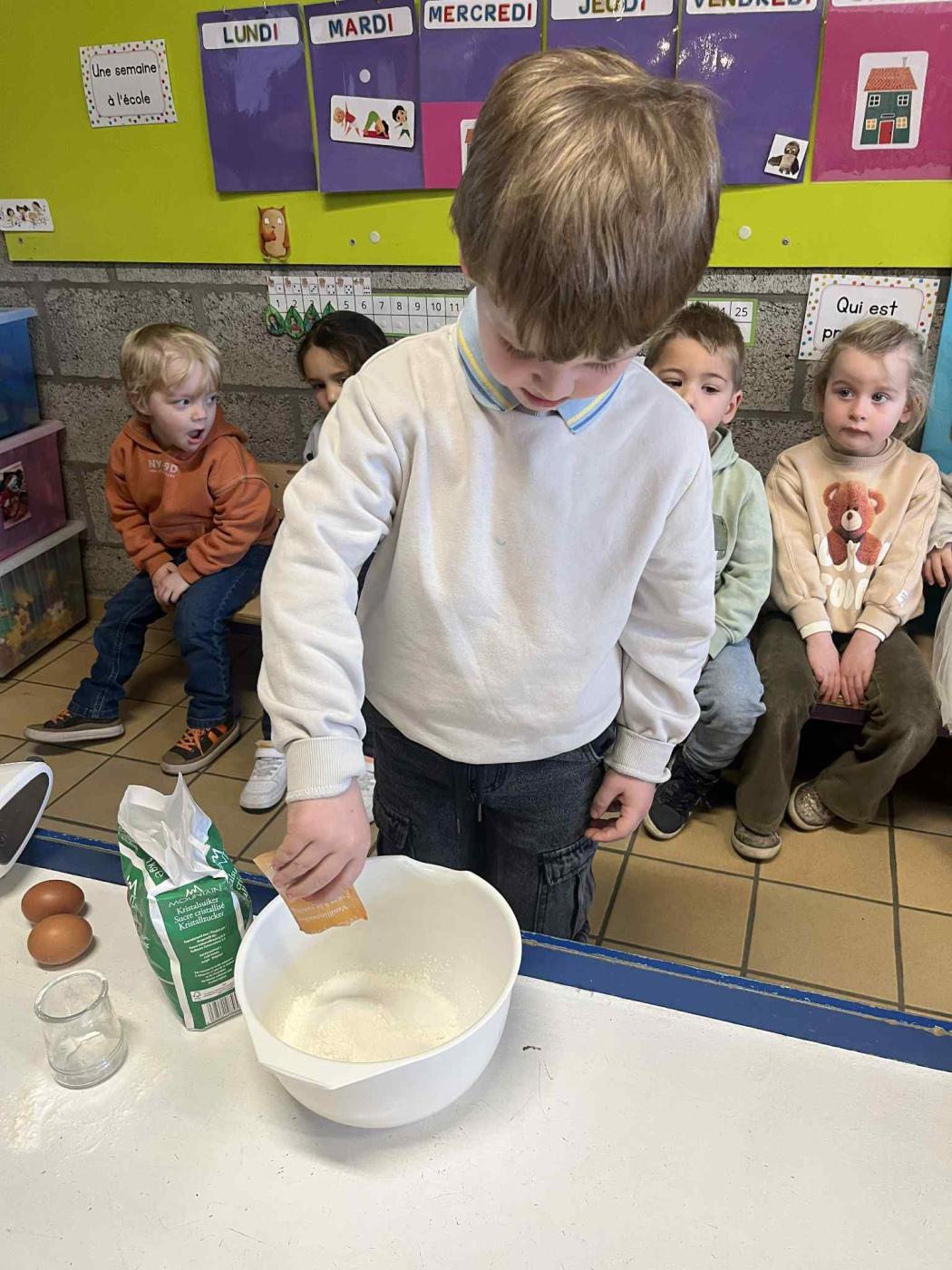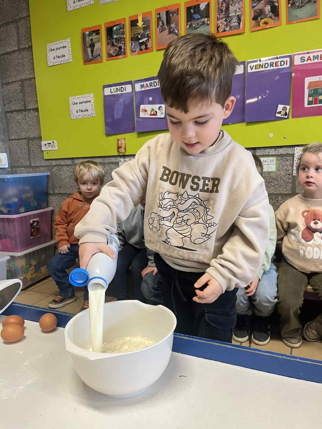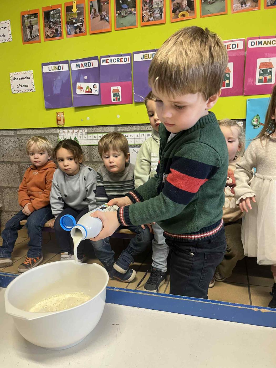 Les enfants ont également travaillé la chronologie de la recette, avec laquelle ils sont repartis à la maison, afin de cuisiner de bonnes crêpes avec papa et maman.