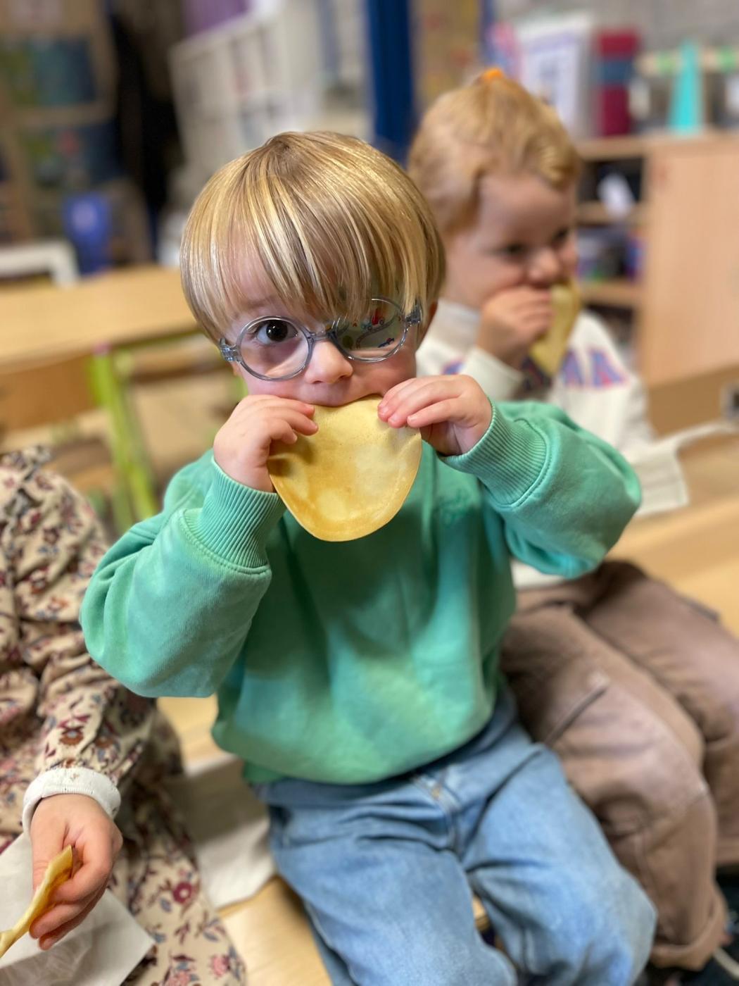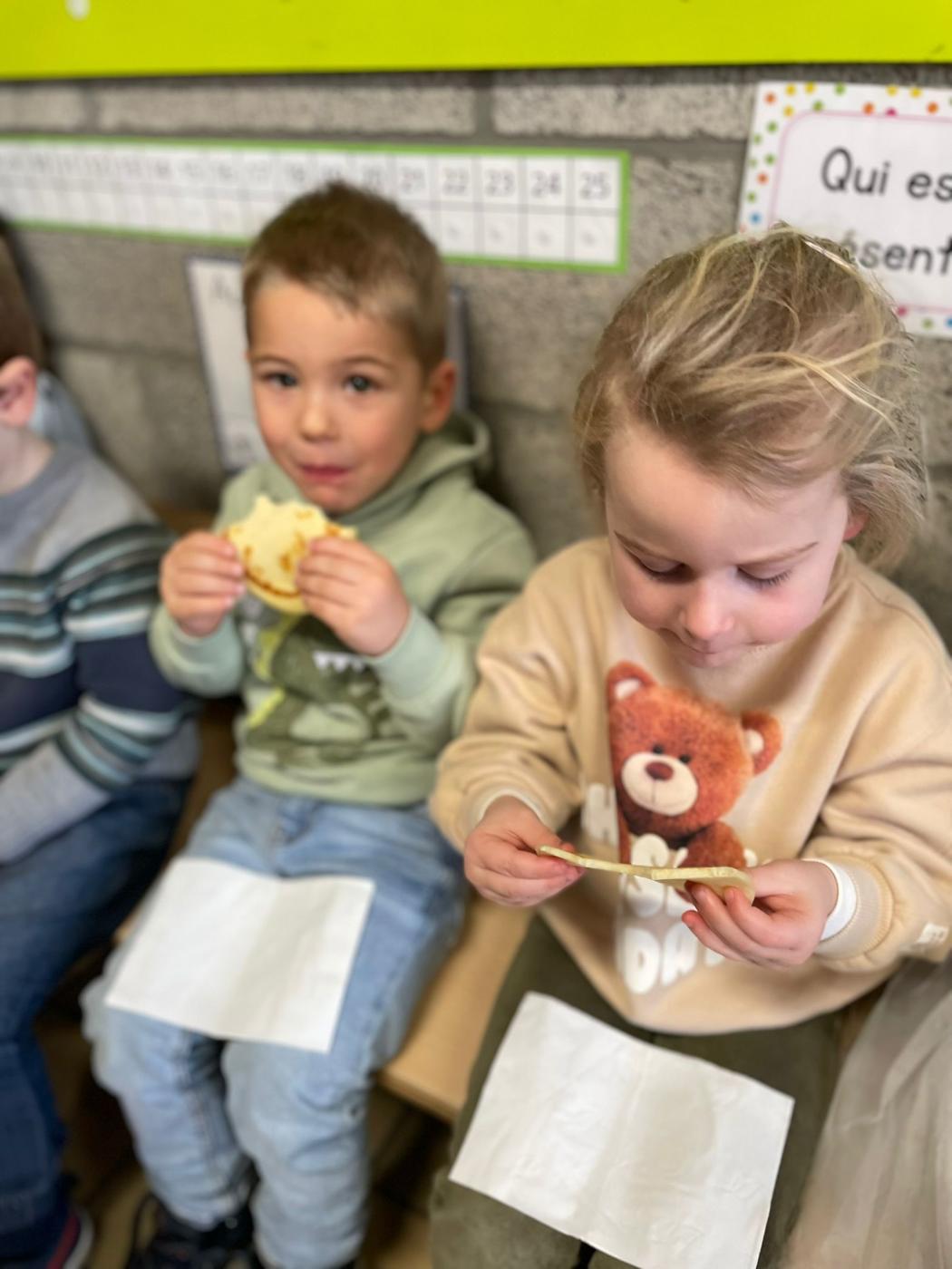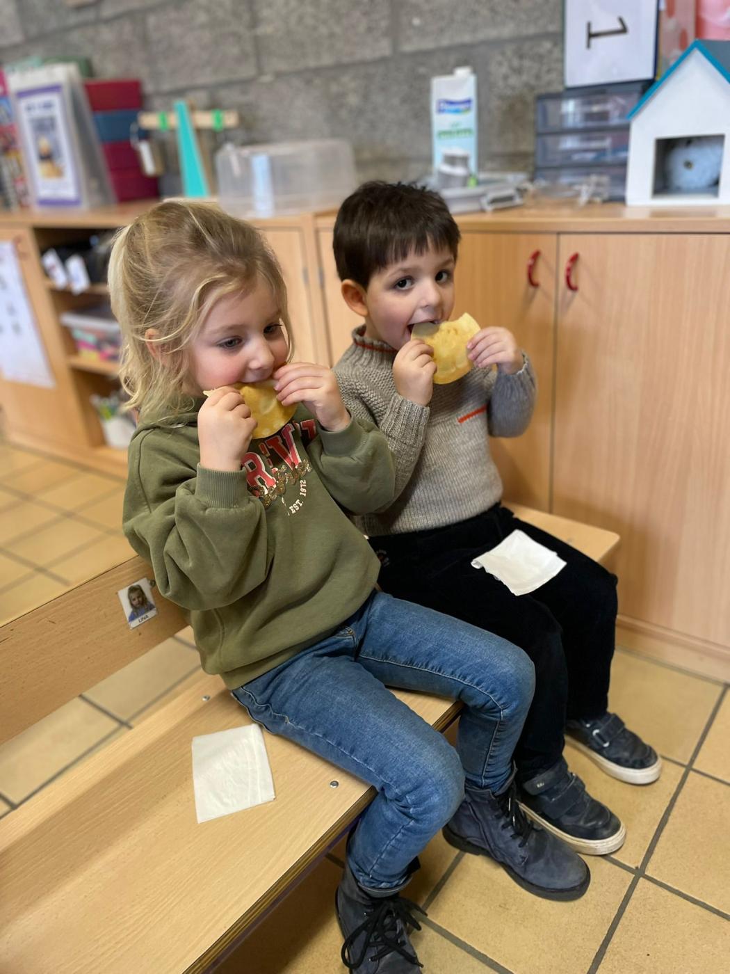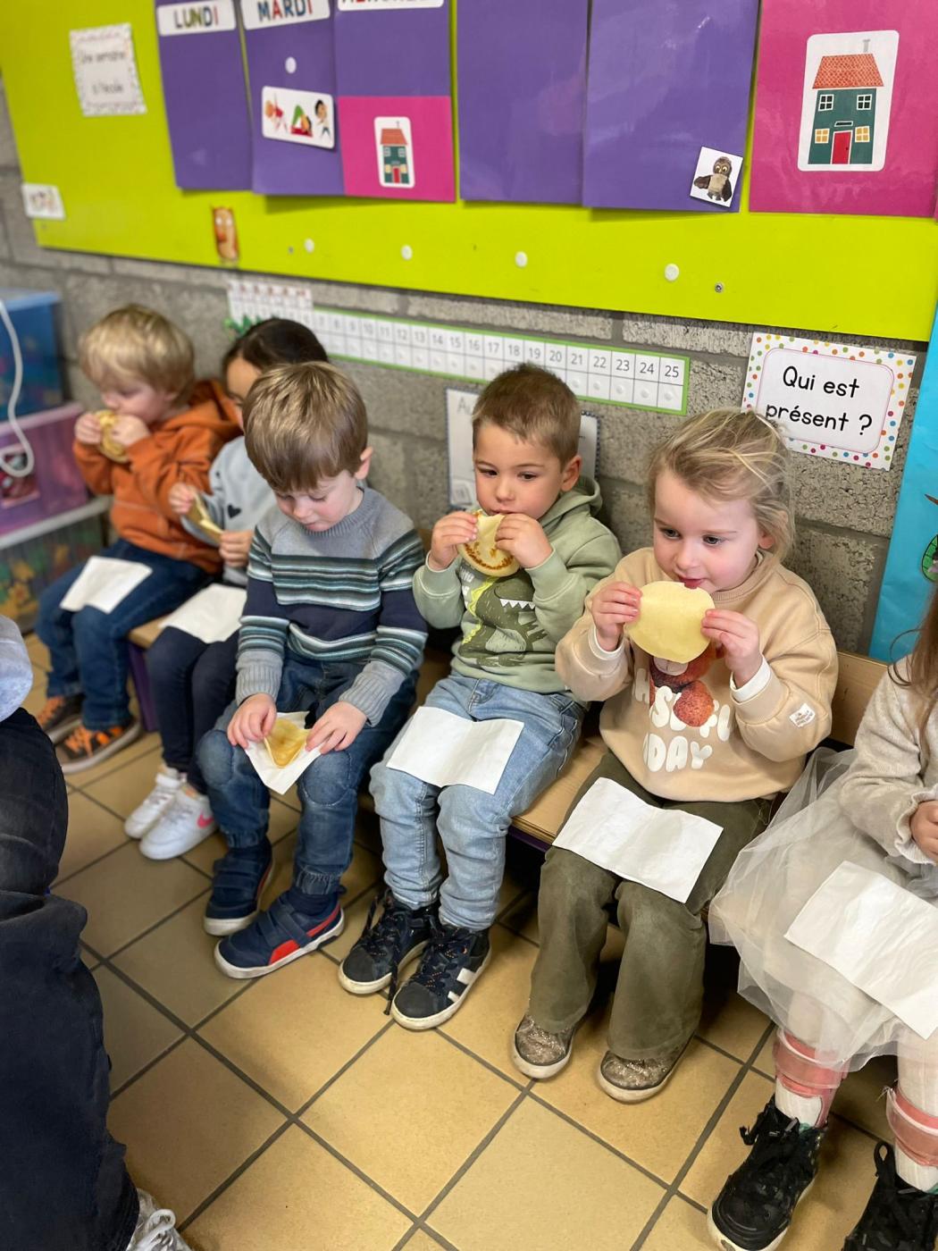 Les enfants de 1ère maternelle de Mme Valentine et Mme Manon, ont réalisé de délicieuses crêpes à l’occasion de la Chandeleur