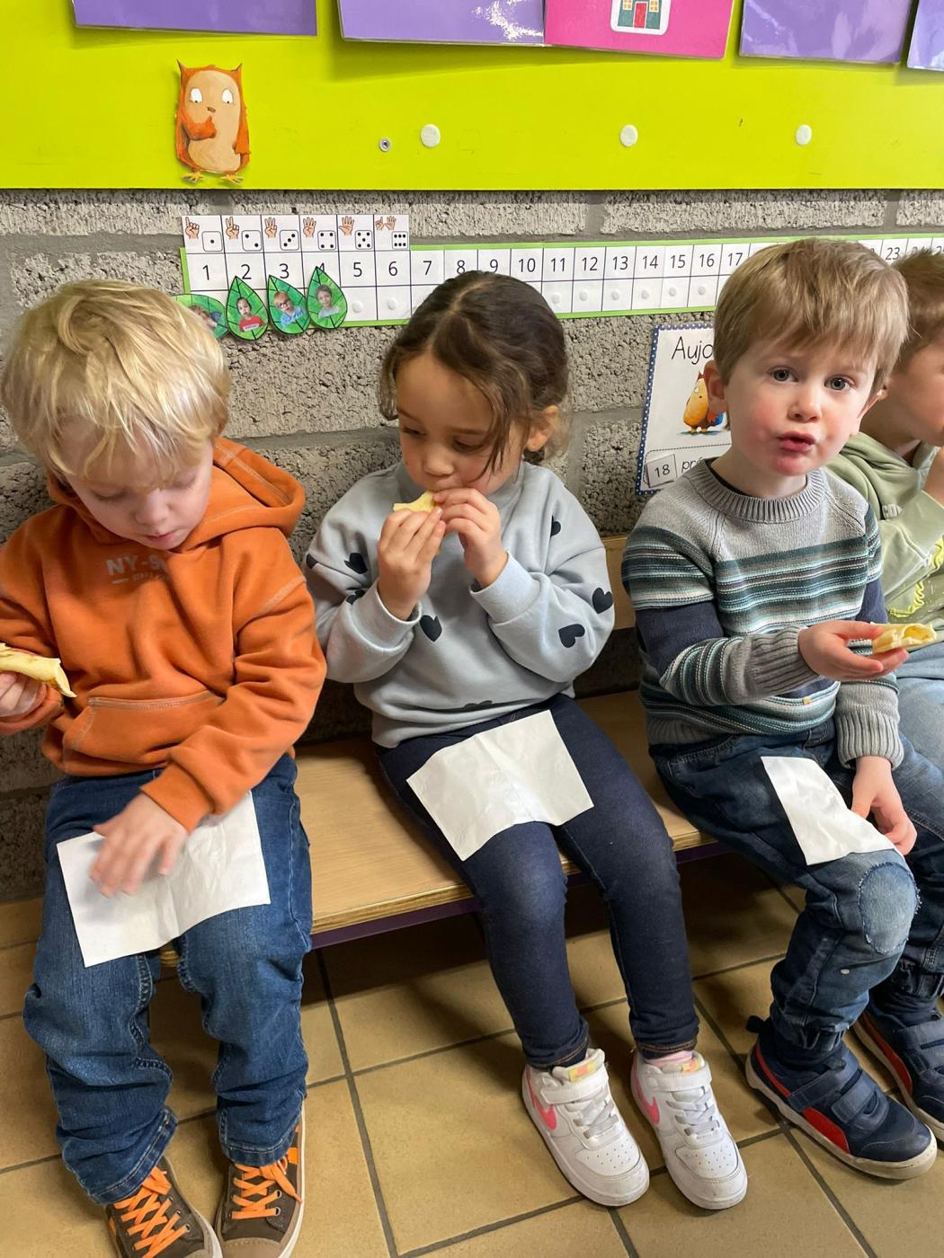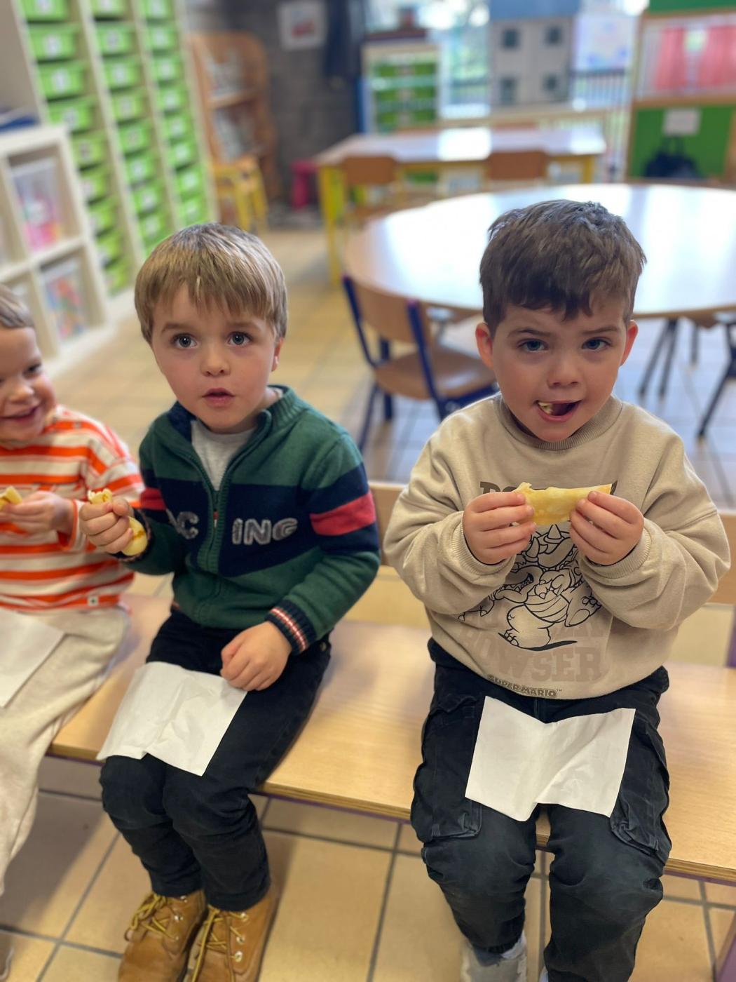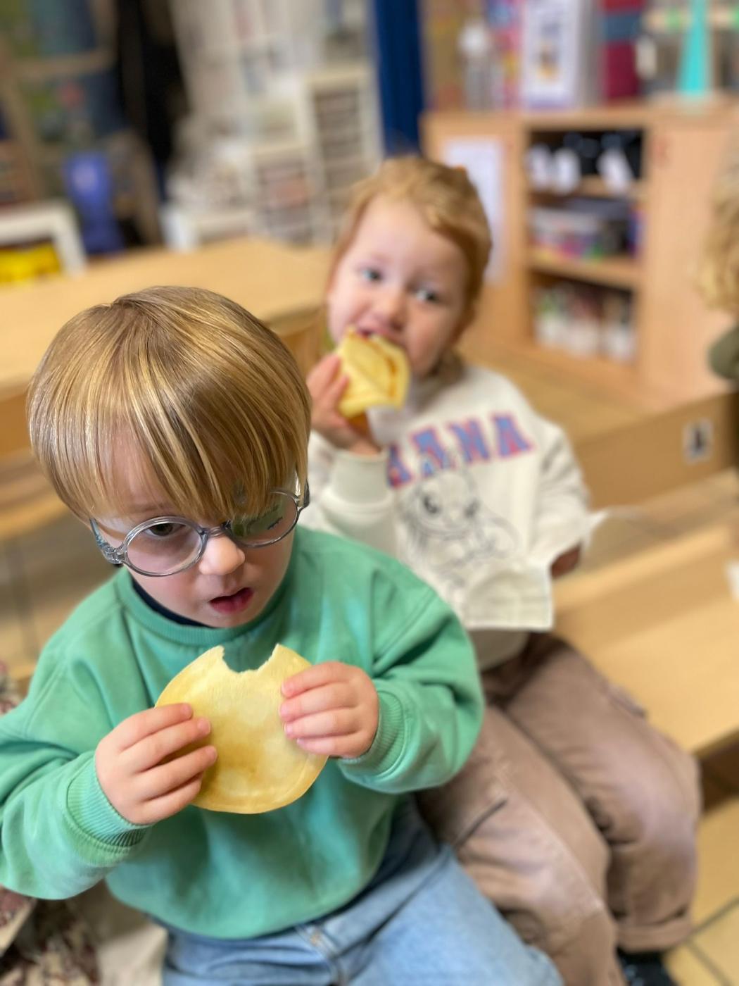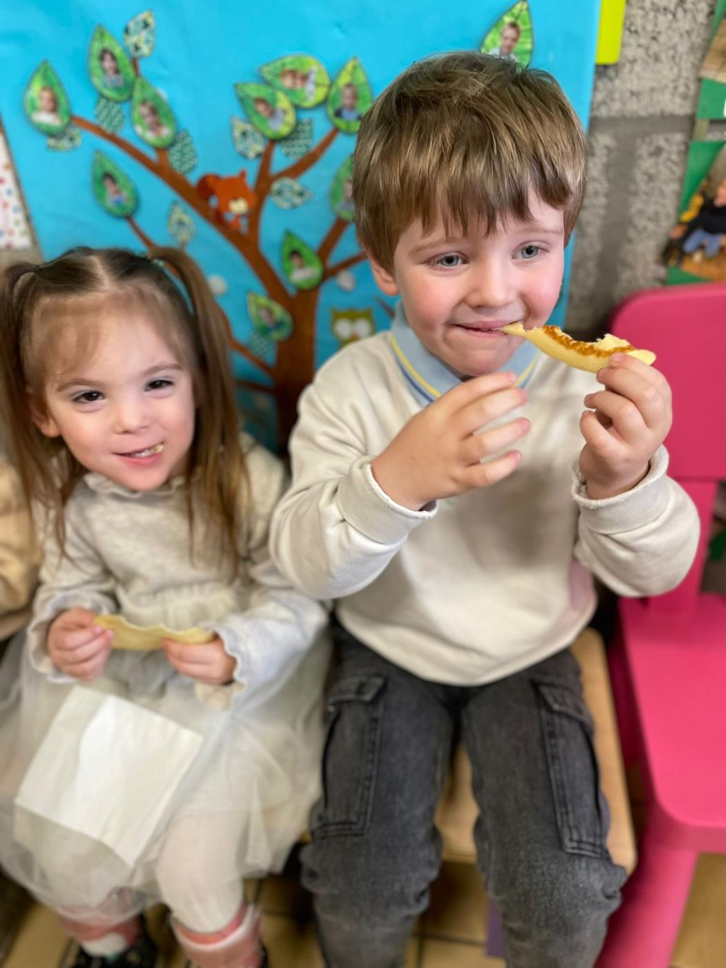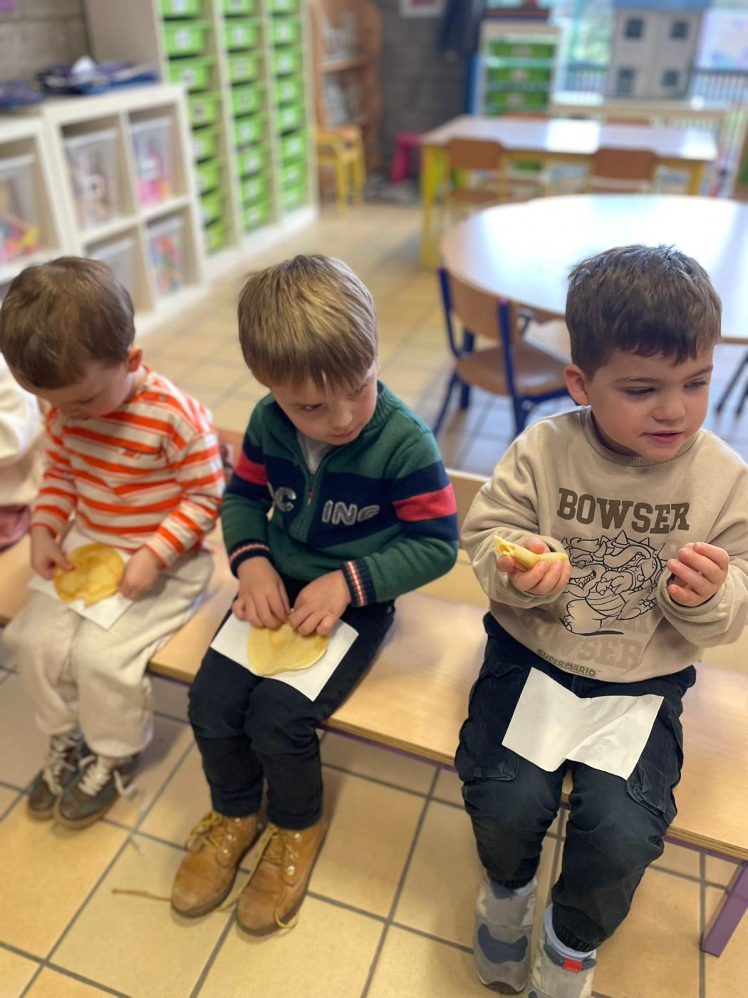 Les enfants de 1ère maternelle de Mme Valentine et Mme Manon, ont réalisé de délicieuses crêpes à l’occasion de la Chandeleur