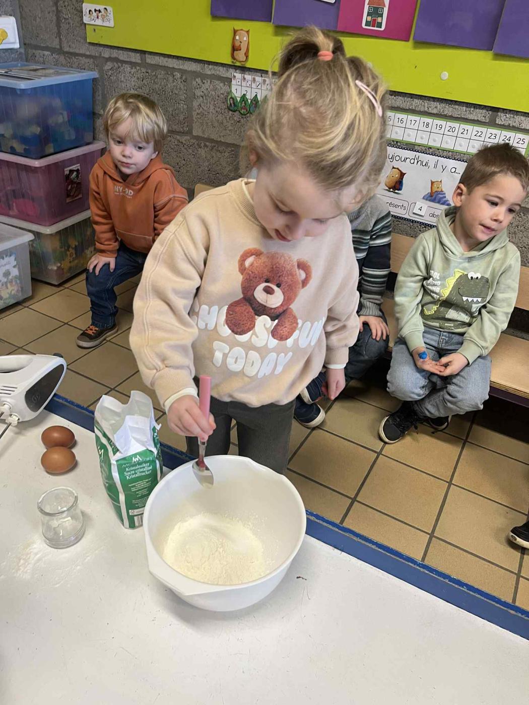 Après avoir découvert les ingrédients, ils ont suivi pas à pas la recette avec beaucoup d’enthousiasme.