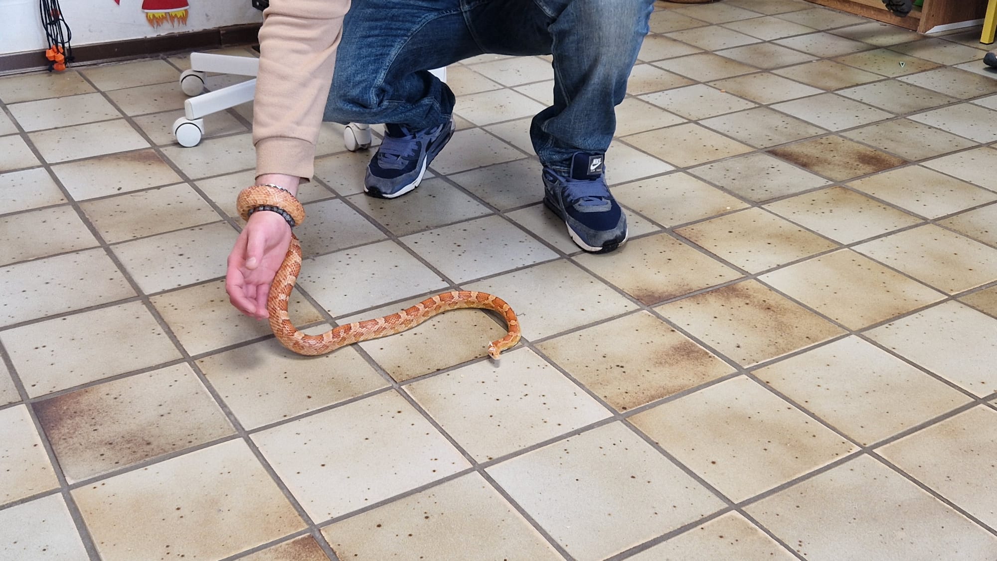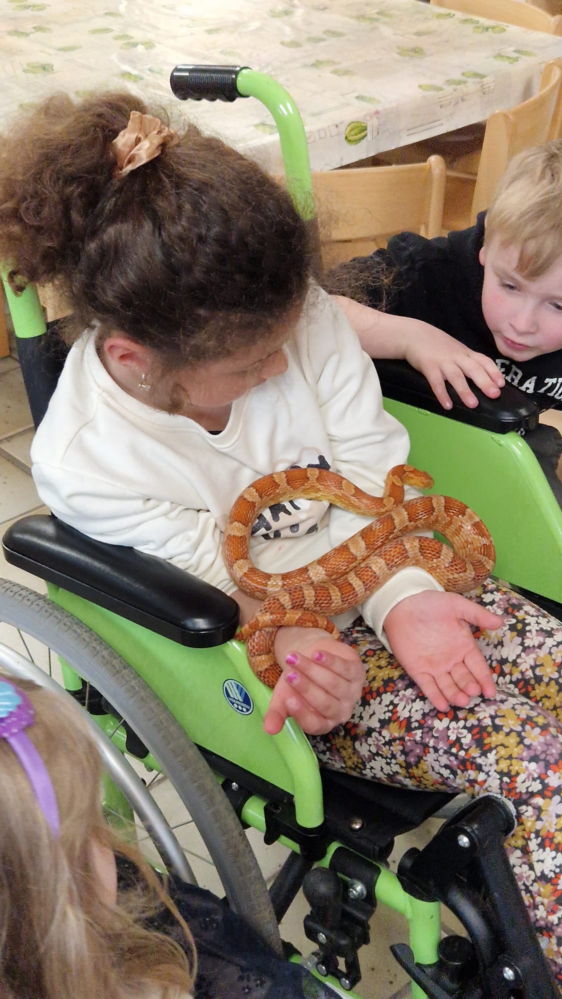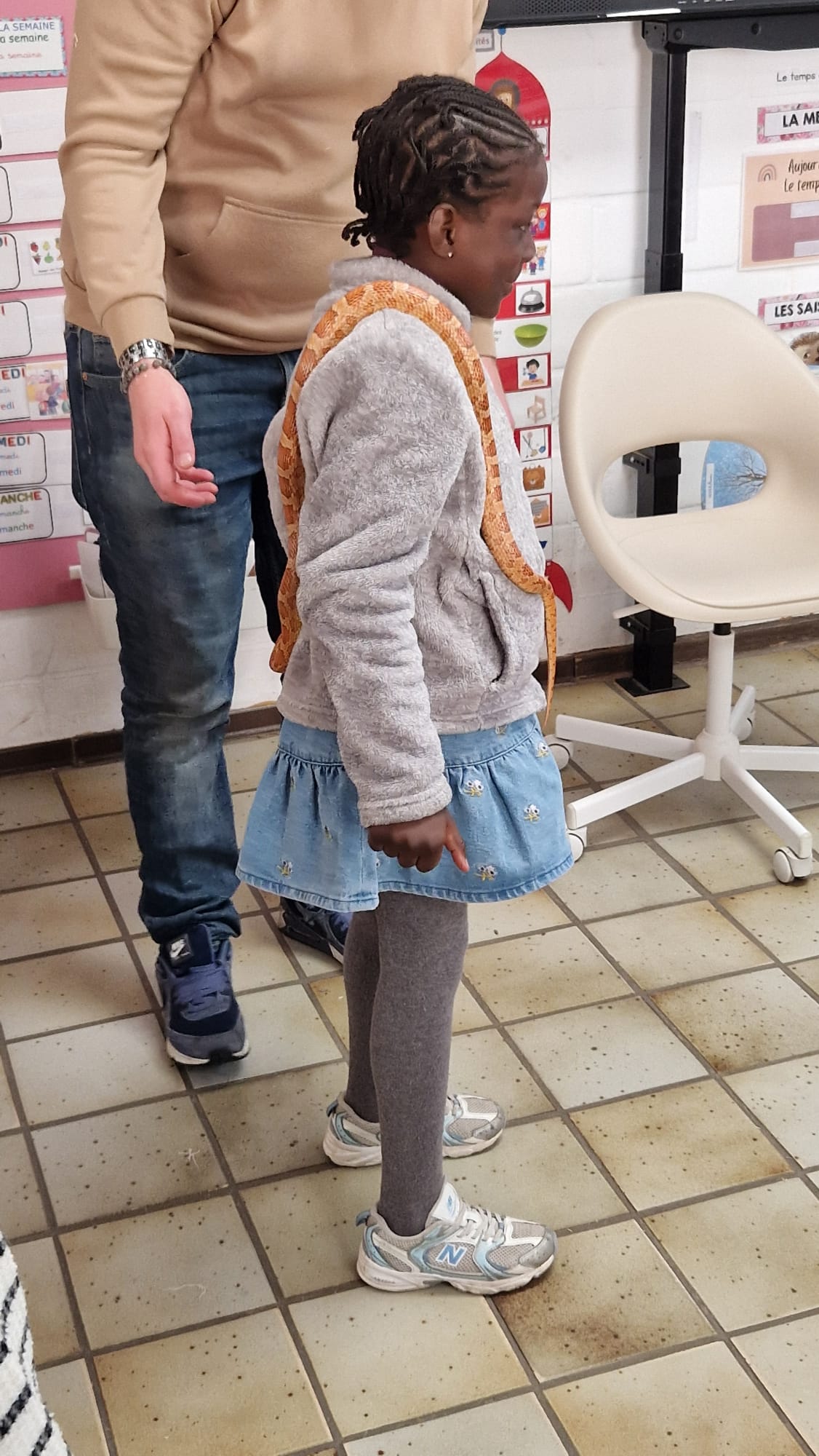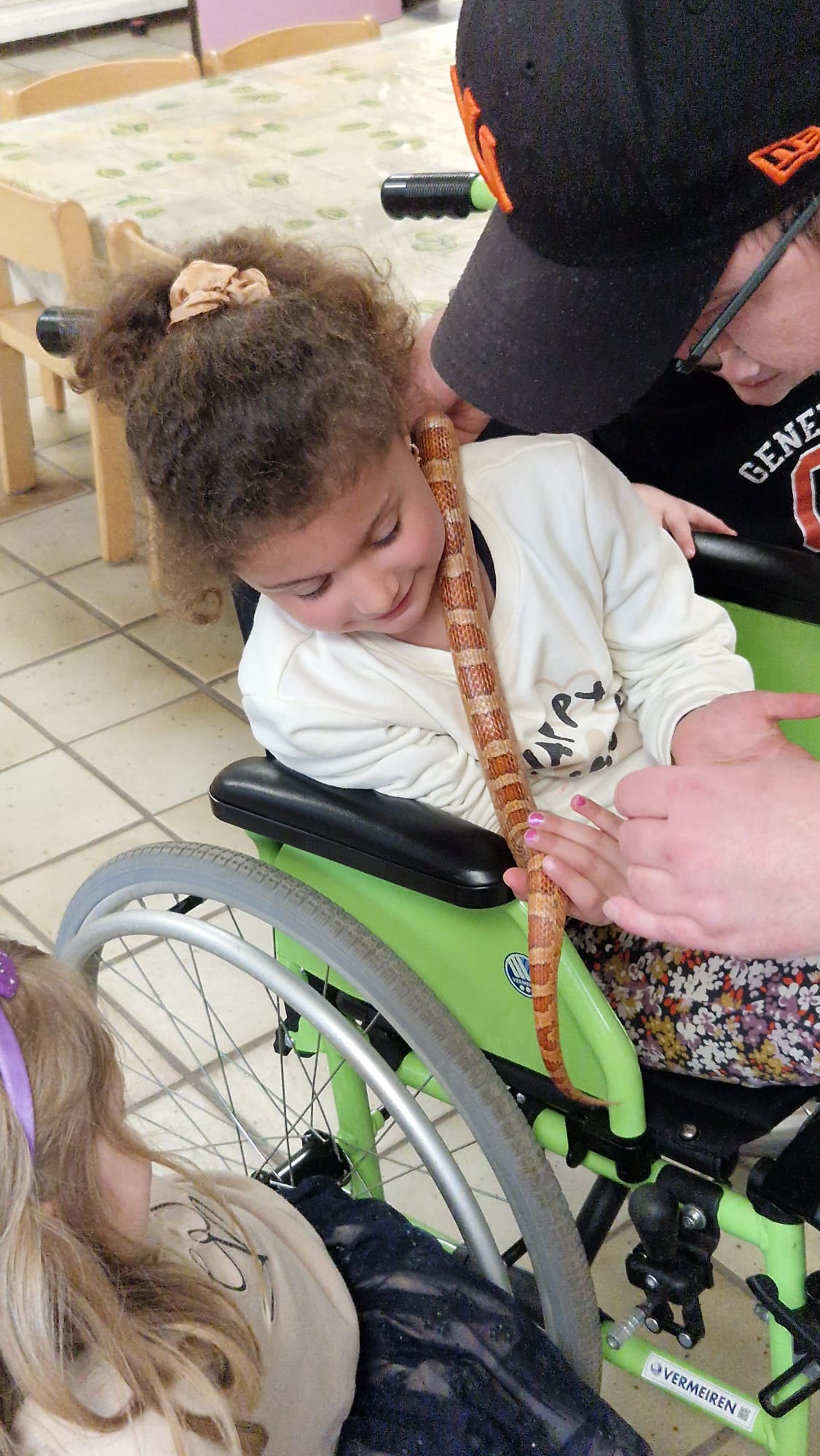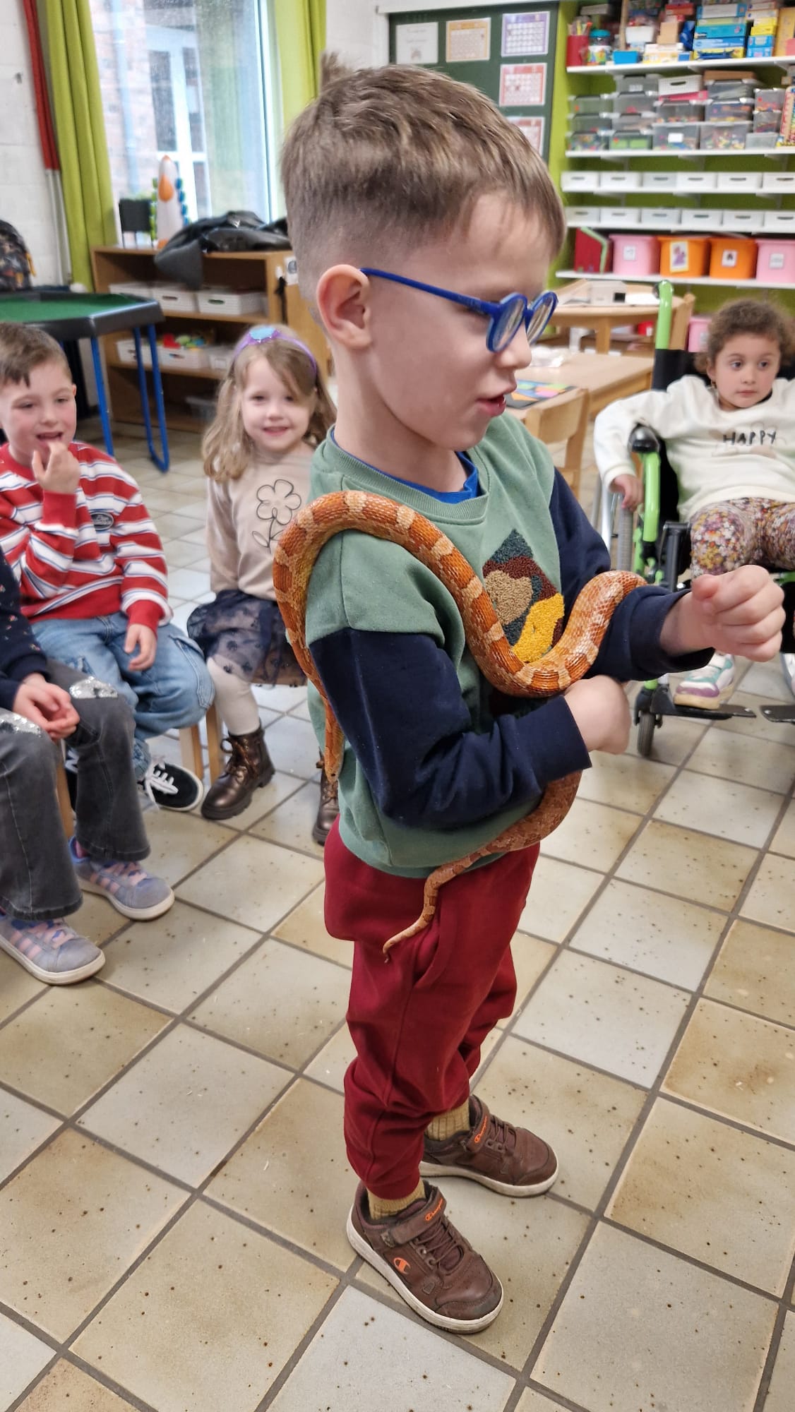 Ce mercredi 25 mars, nous avons reçu la visite de Ginou, le serpent de Kerissa. Son papa Damien nous a permis de découvrir cet animal extraordinaire et surtout de surmonter la peur des enfants. Les plus téméraires ont même pu le porter et le toucher. Quelle belle découverte en éveil scientifique